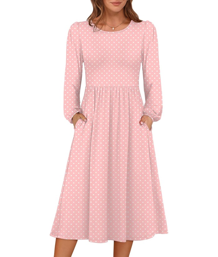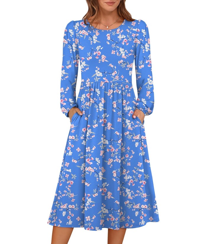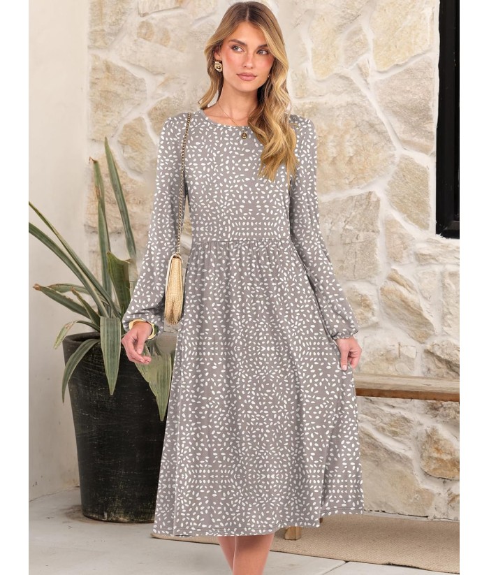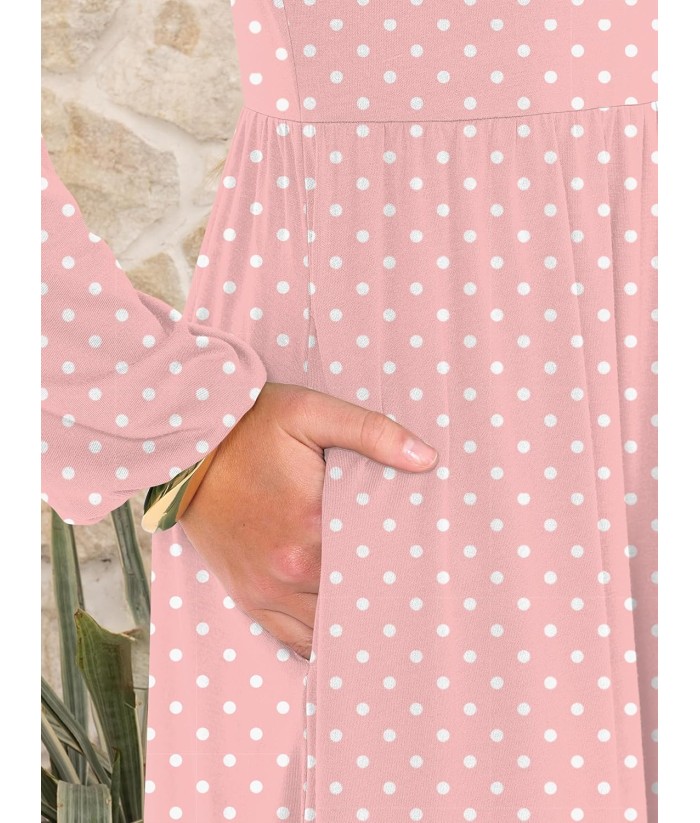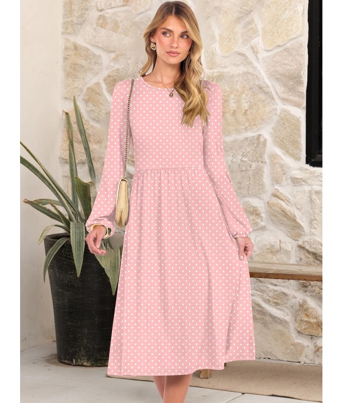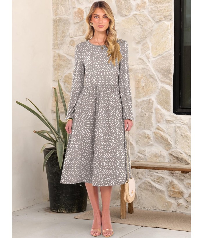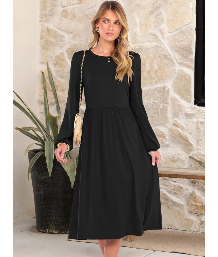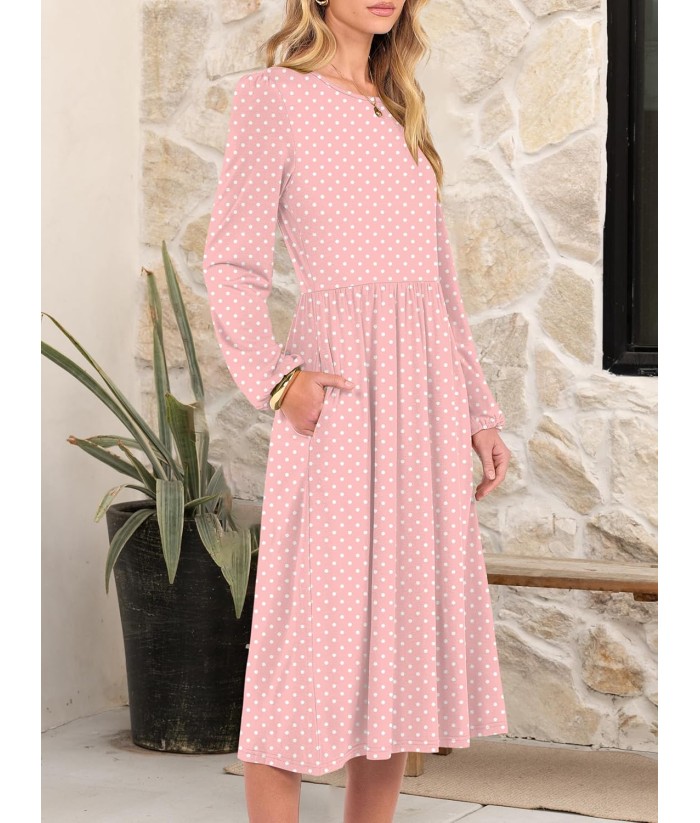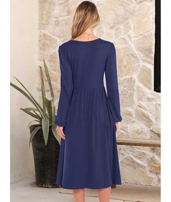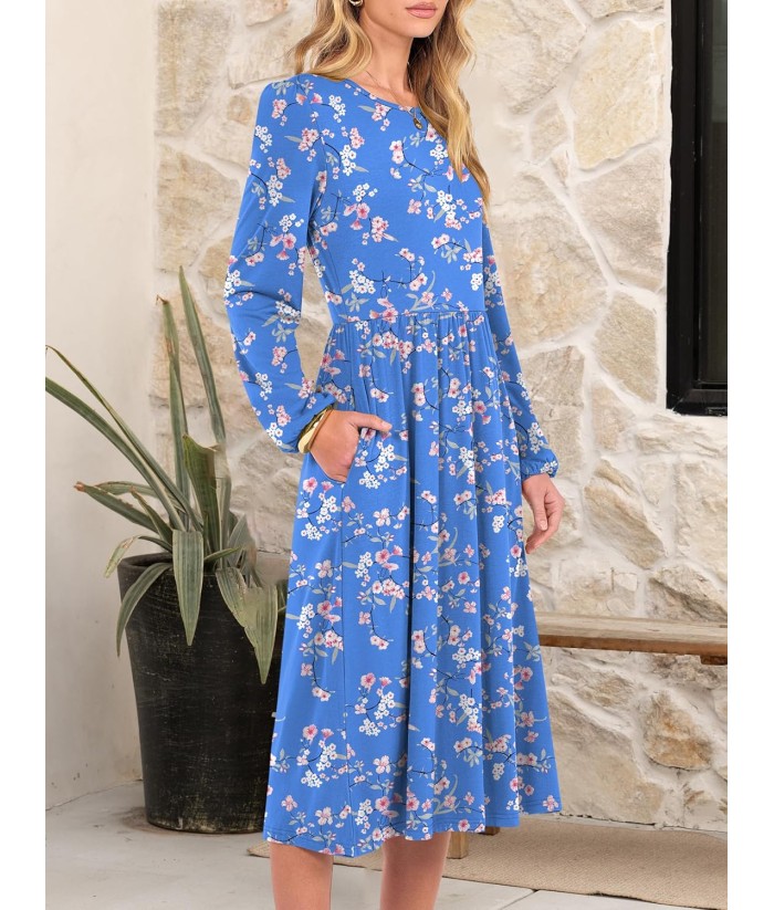 ANRABESS Long Sleeve Dress for Women 2025 Fall Fashion Casual Flowy Loose Midi Dresses Boho Vacation Outfits with Pockets
