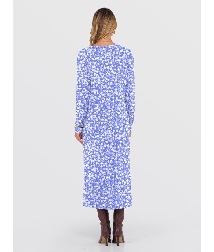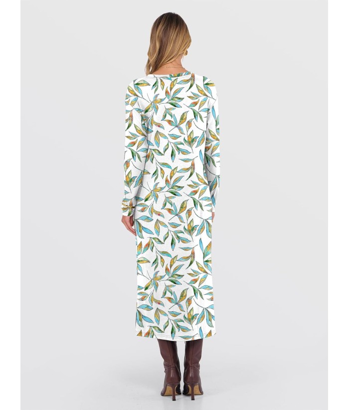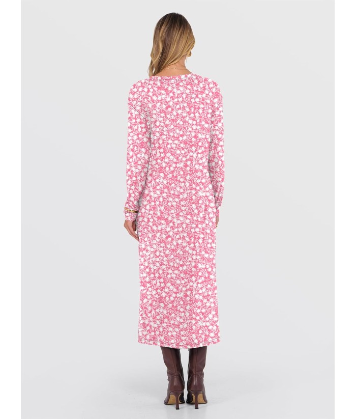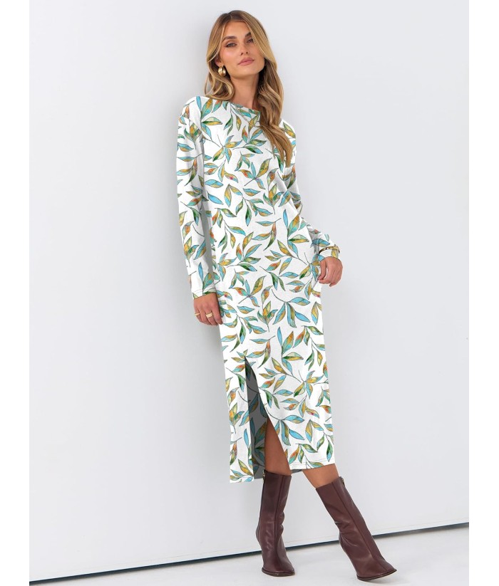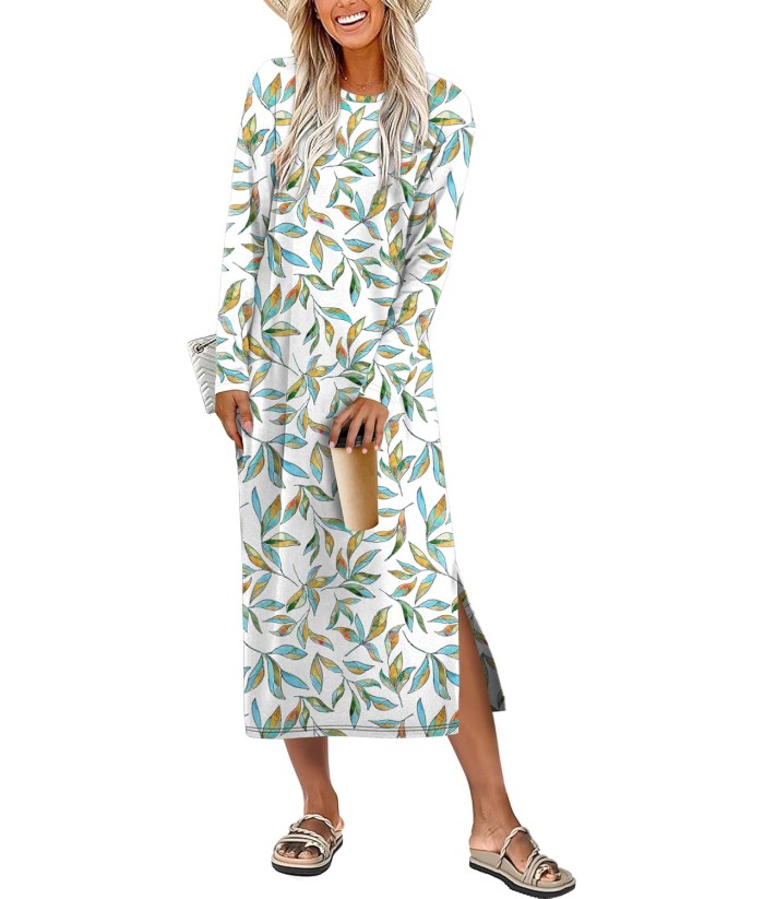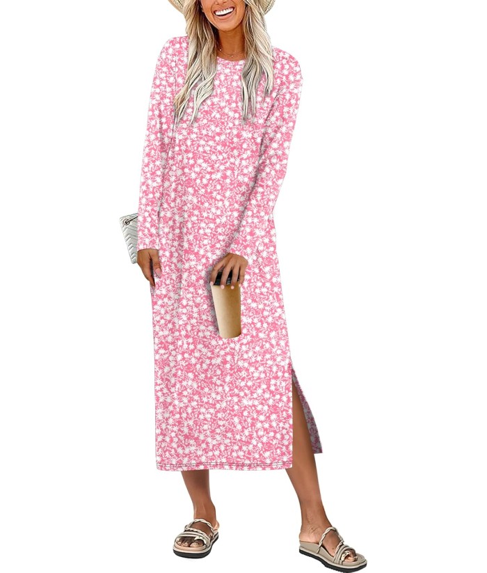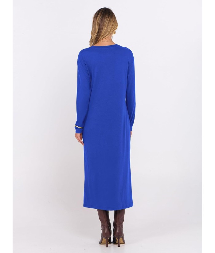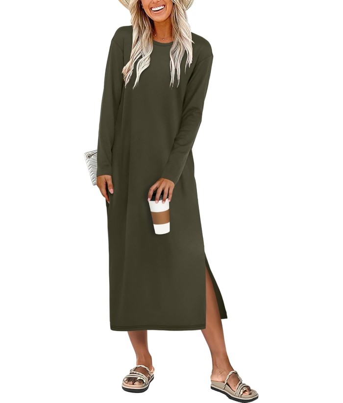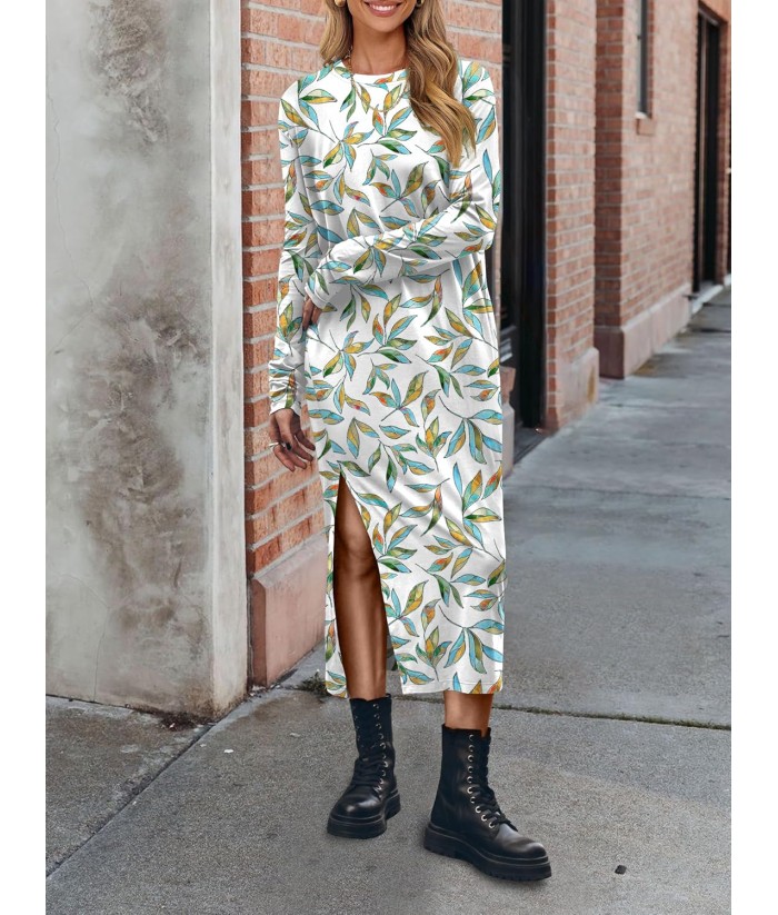 ANRABESS Long Sleeve Midi Dresses for Women Fall Fashion Casual Vacation Crewneck Loose Split Striped Long Tshirts Dress