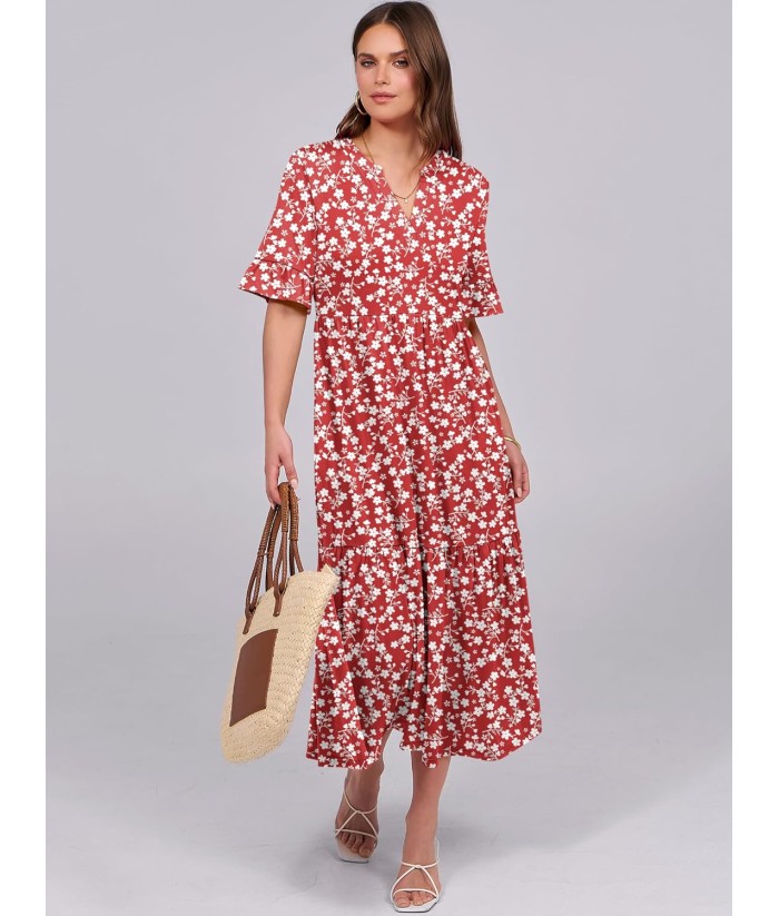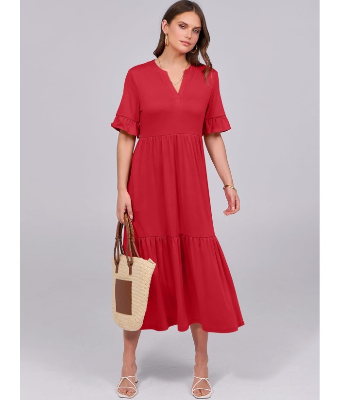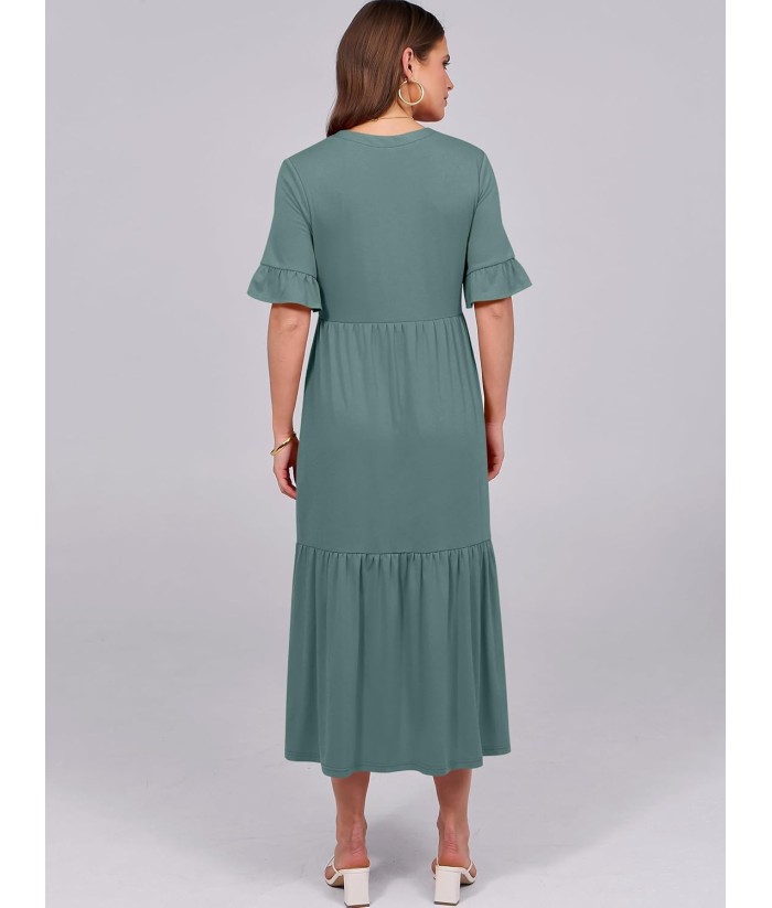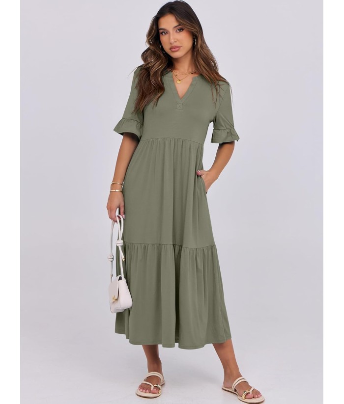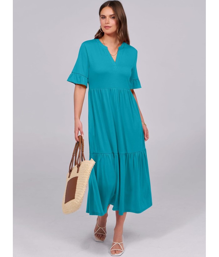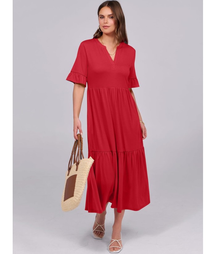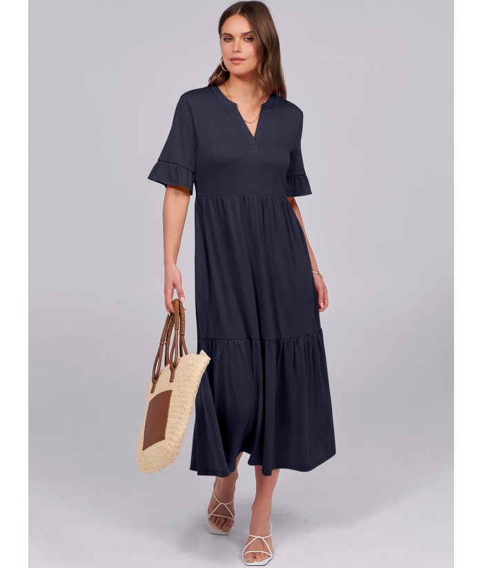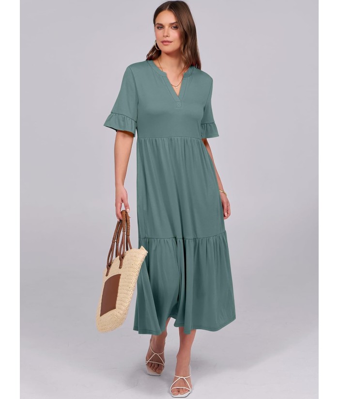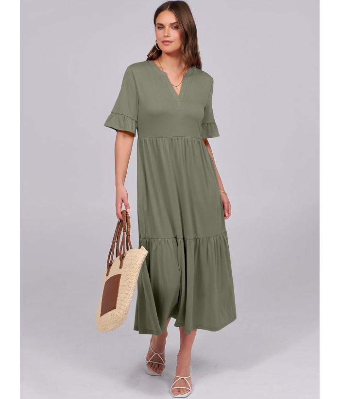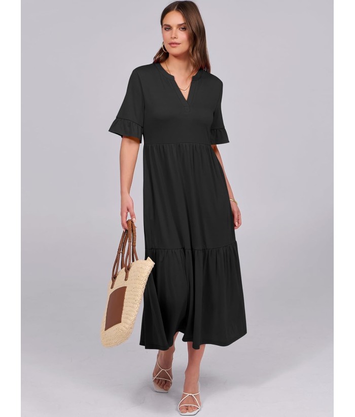 ANRABESS Women's Casual Summer Ruffle Short Sleeve T Shirts Maxi Dress 2025 Fall V Neck Flowy Tiered Boho Beach Dresses