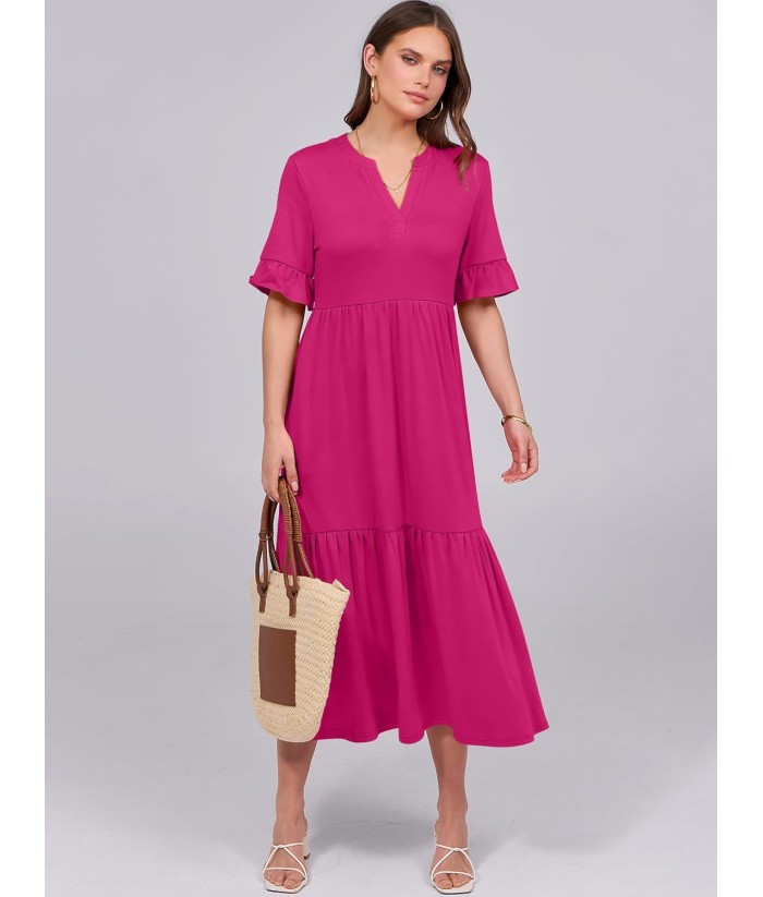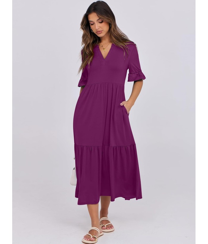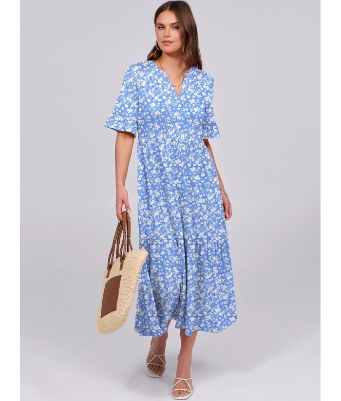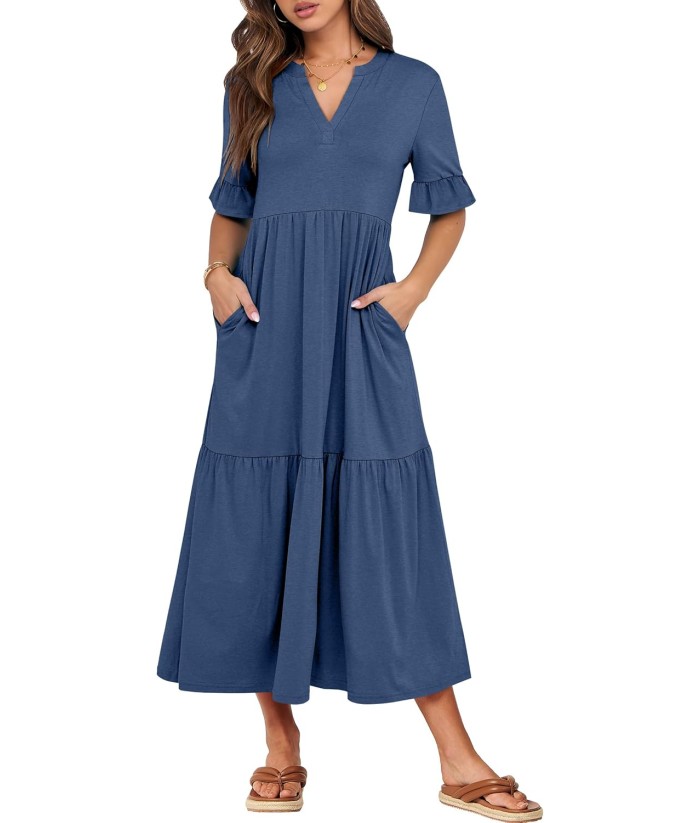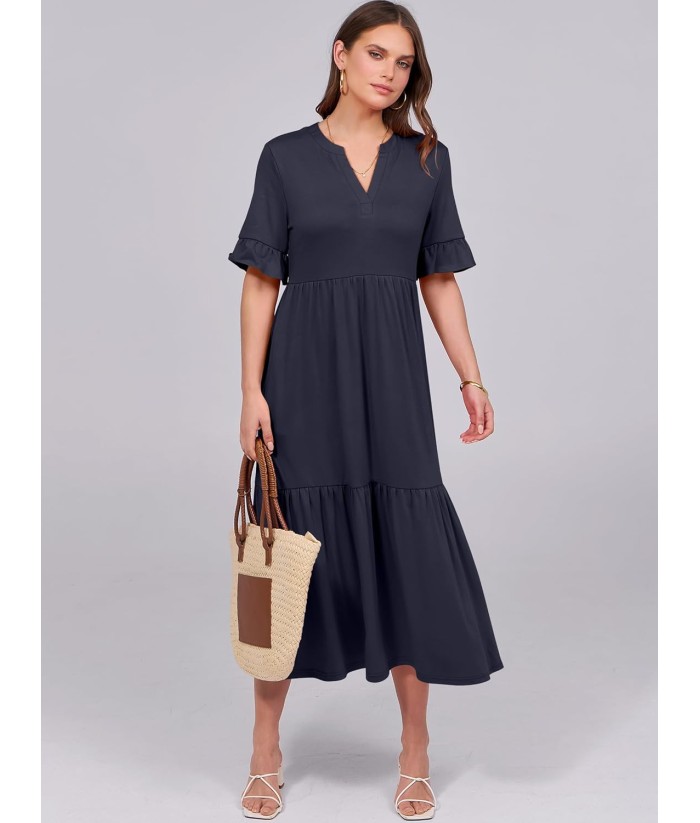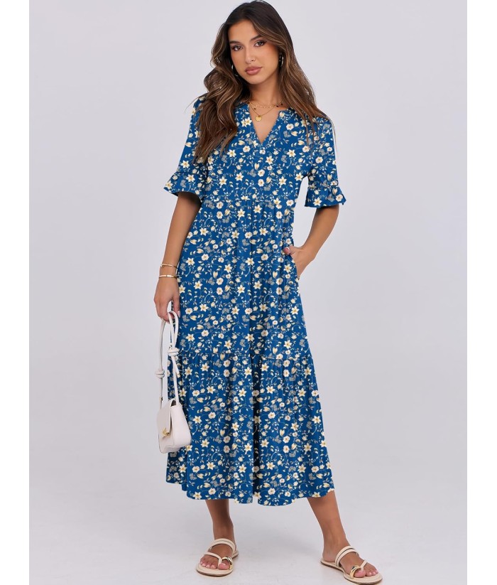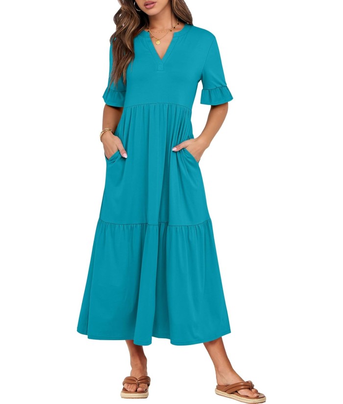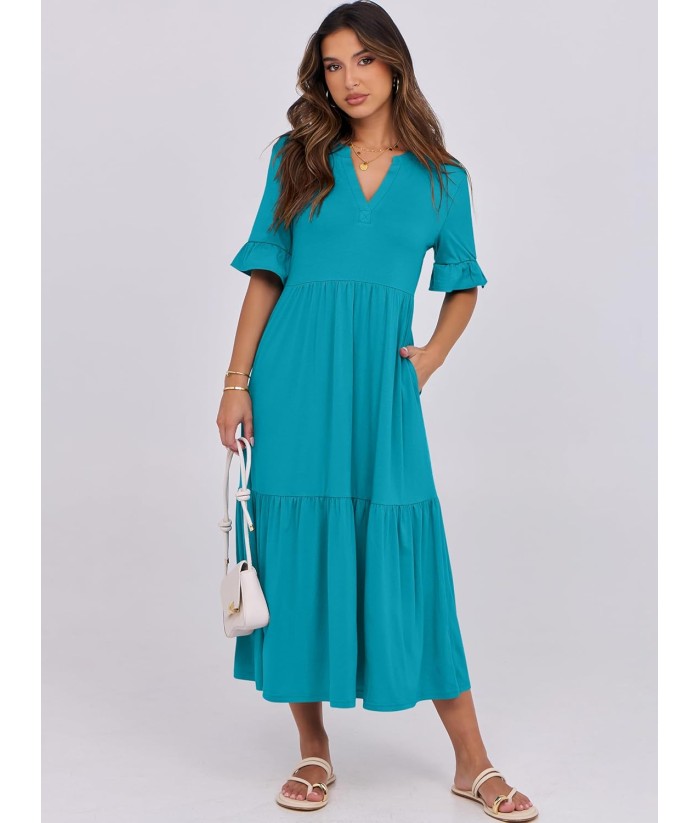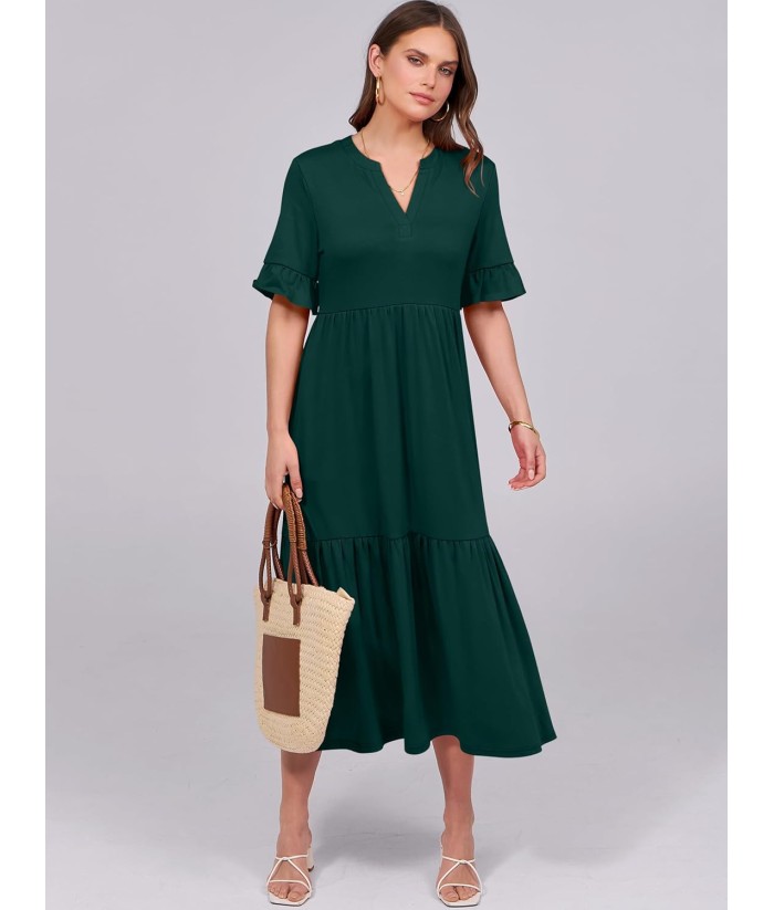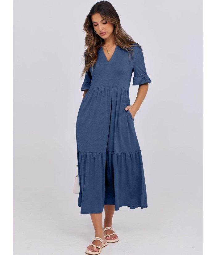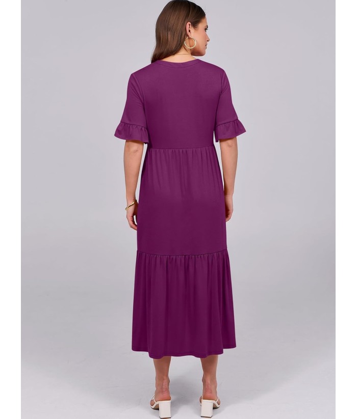 ANRABESS Women's Casual Summer Ruffle Short Sleeve T Shirts Maxi Dress 2025 Fall V Neck Flowy Tiered Boho Beach Dresses