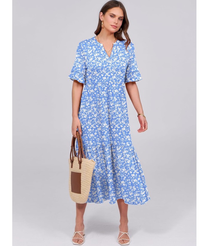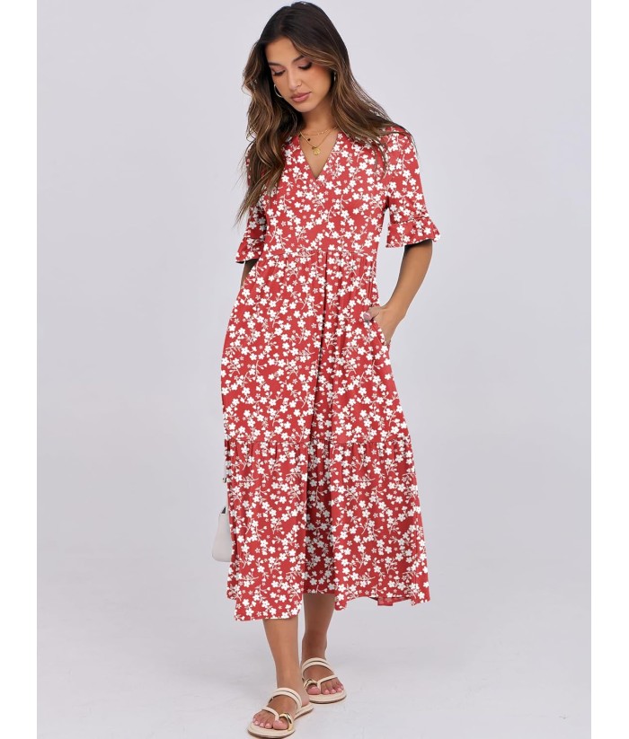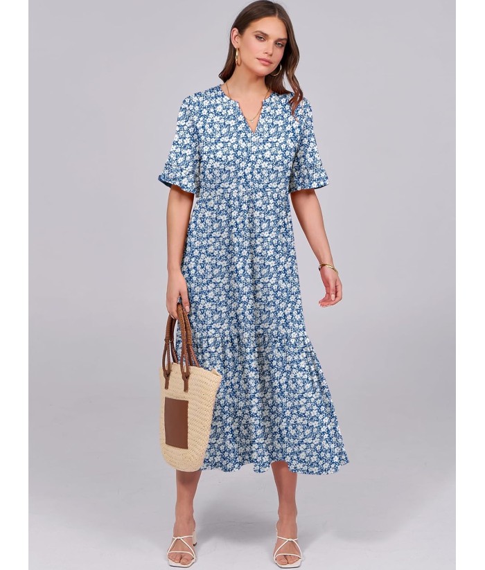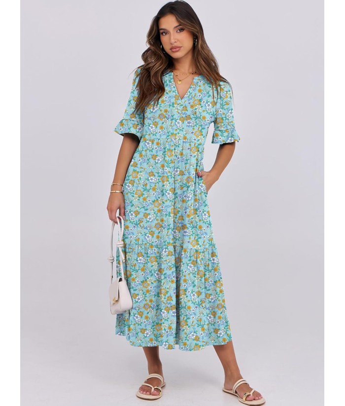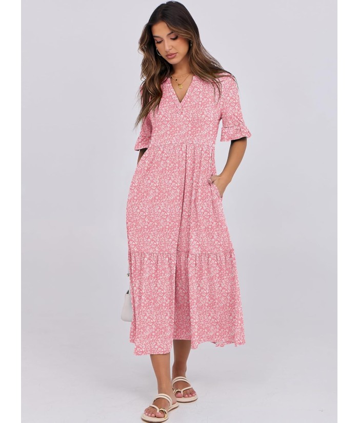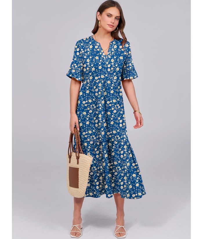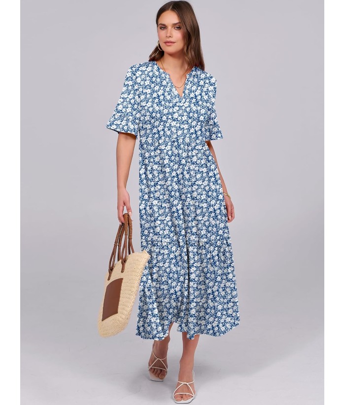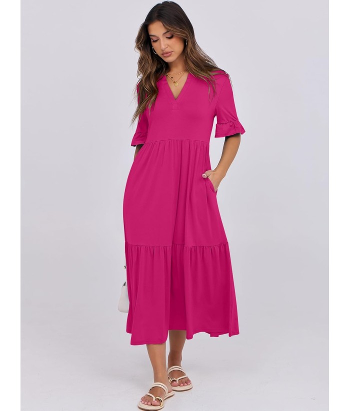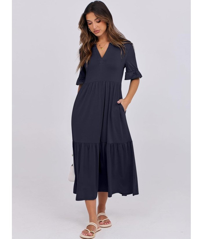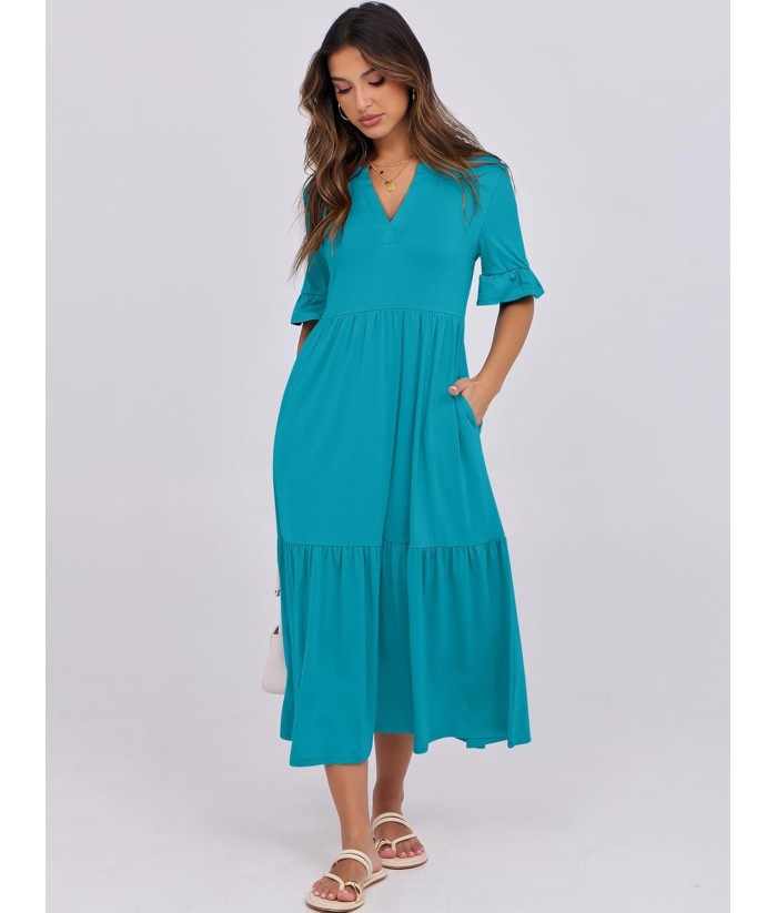 ANRABESS Women's Casual Summer Ruffle Short Sleeve T Shirts Maxi Dress 2025 Fall V Neck Flowy Tiered Boho Beach Dresses