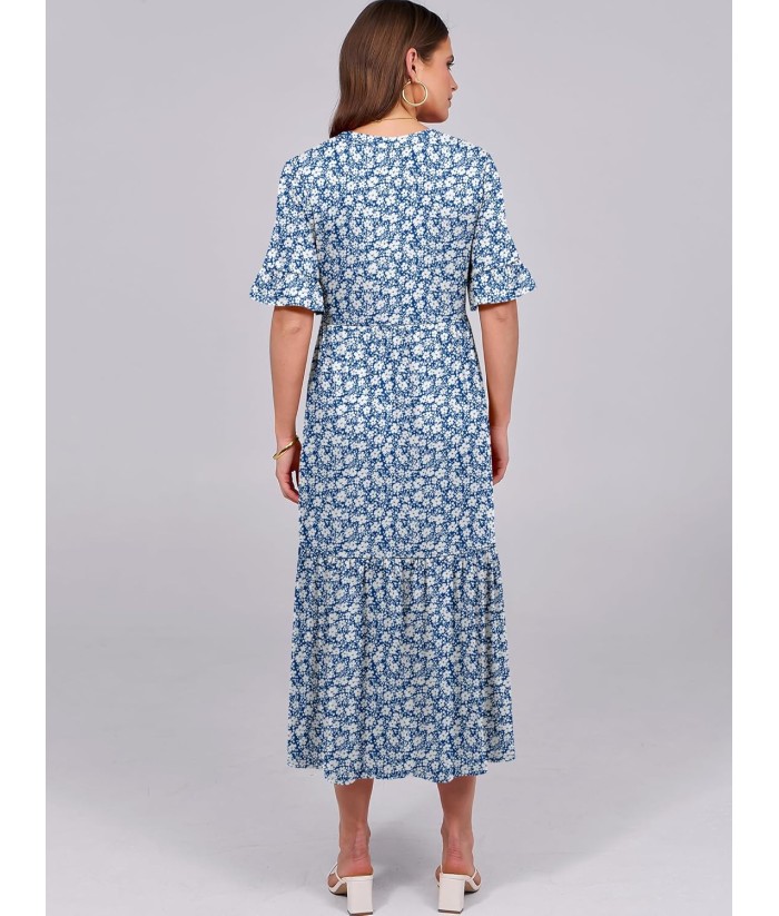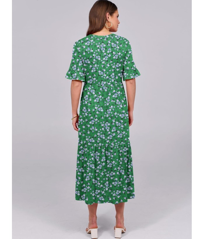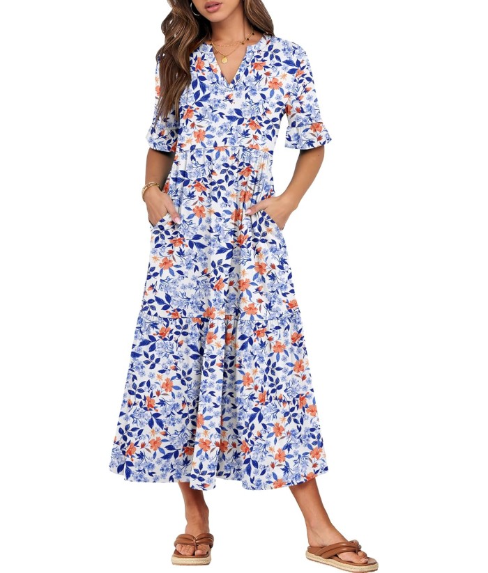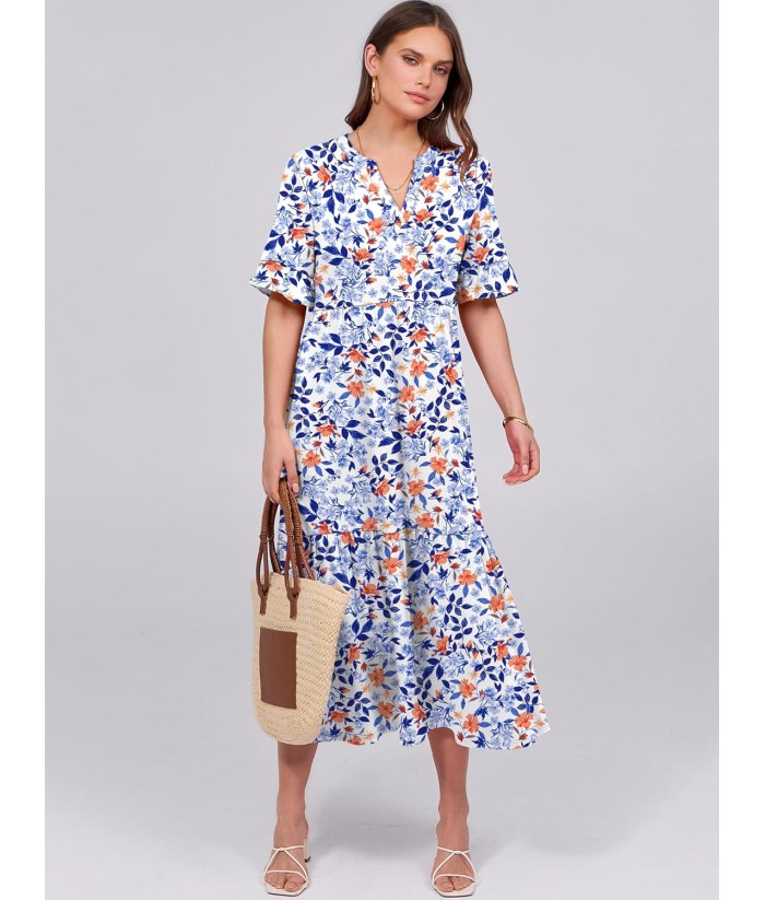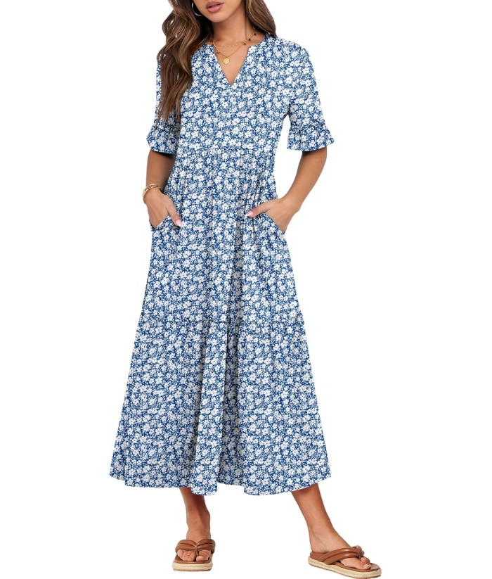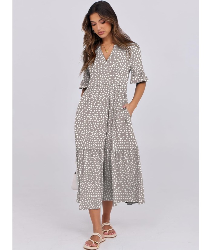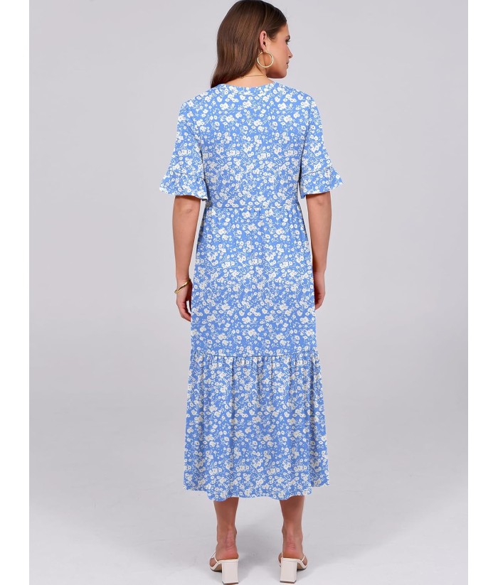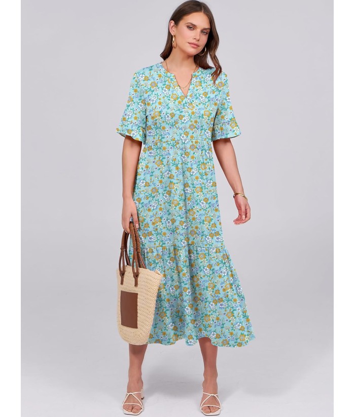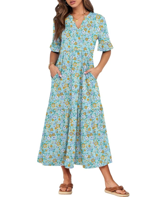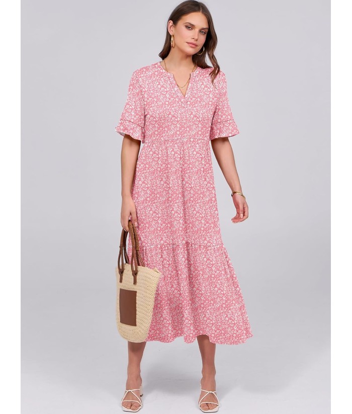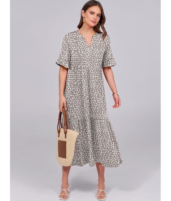 ANRABESS Women's Casual Summer Ruffle Short Sleeve T Shirts Maxi Dress 2025 Fall V Neck Flowy Tiered Boho Beach Dresses