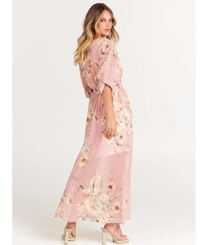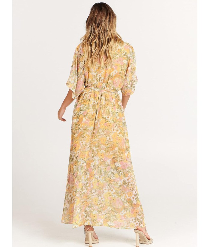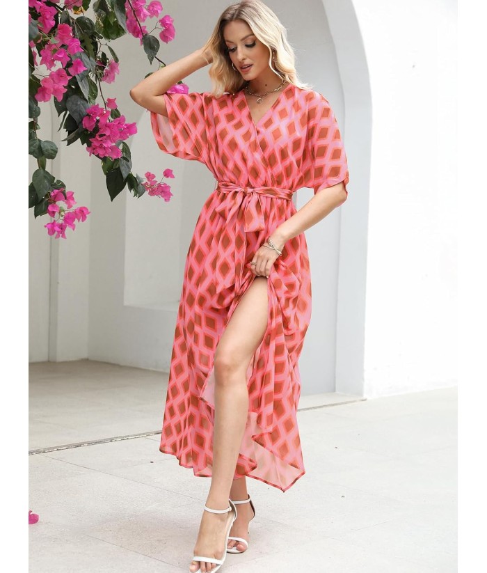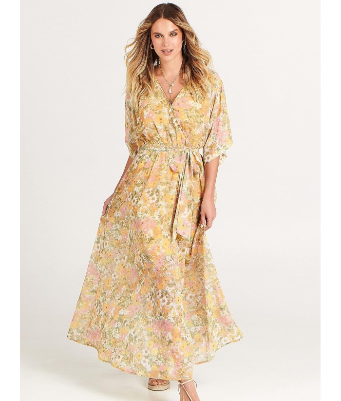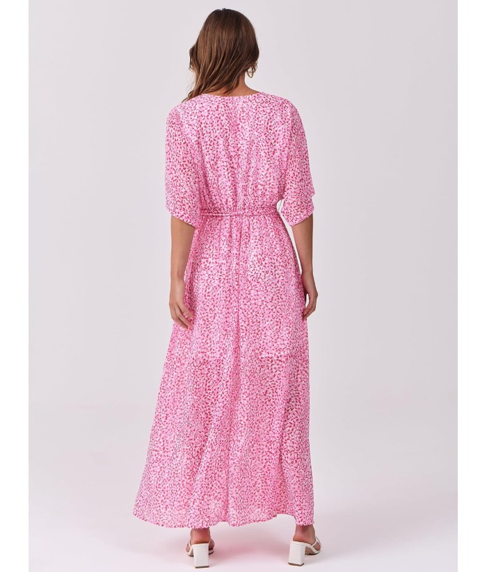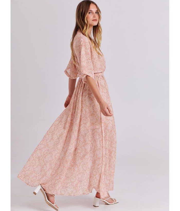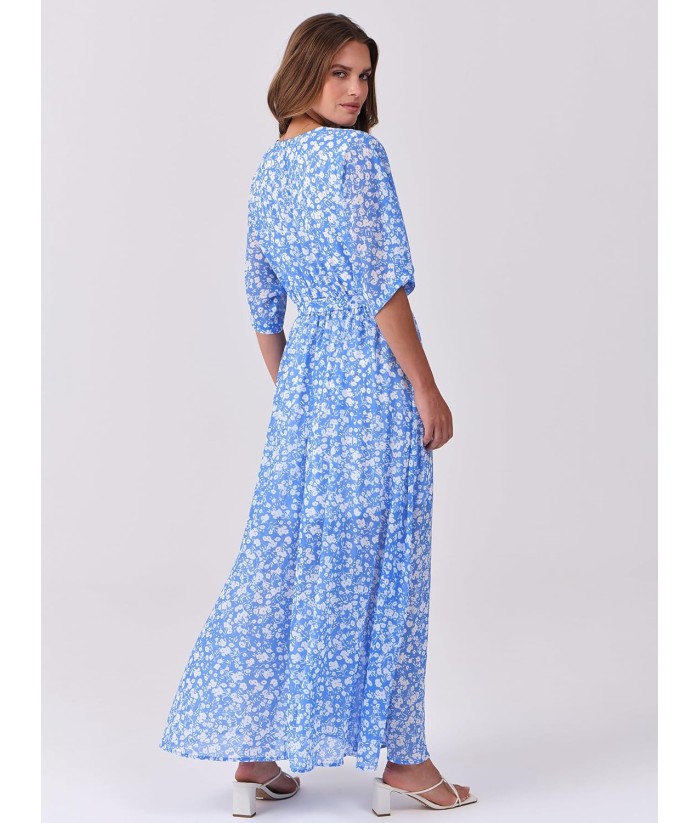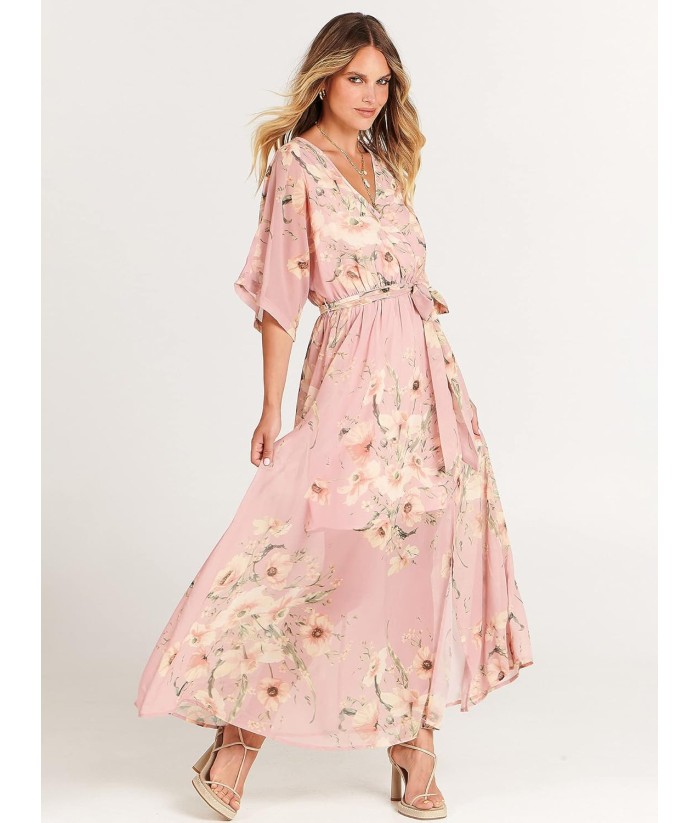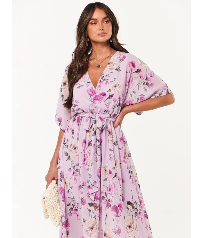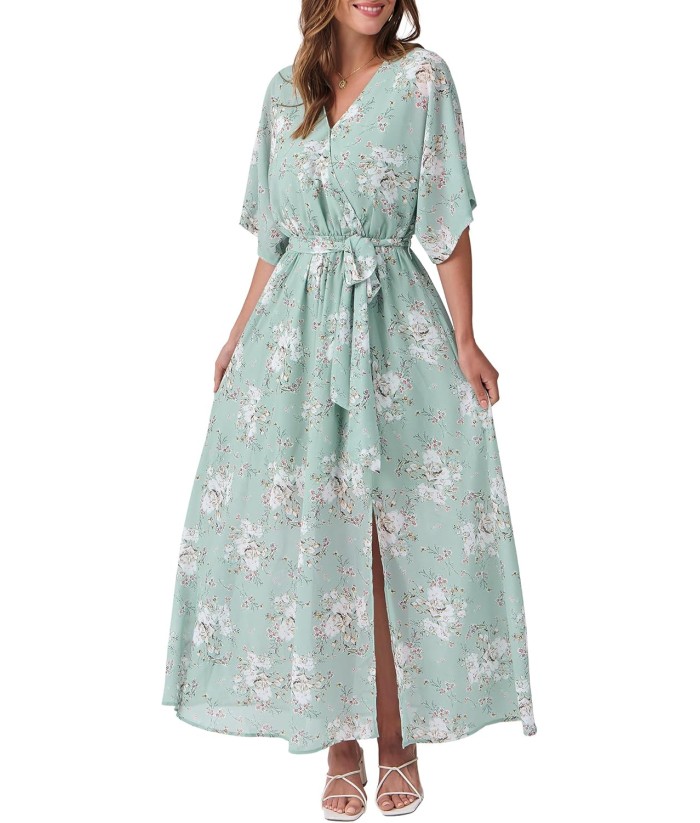 ANRABESS Women’s Summer Loose Boho Flowy Wrap V Neck 3/4 Sleeve Floral Print Slit Beach Wedding Guest Long Maxi Dresses