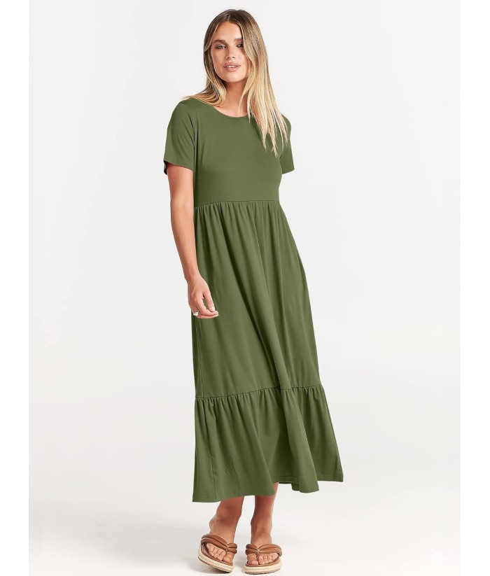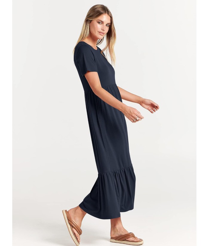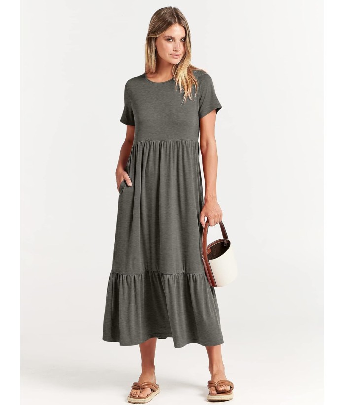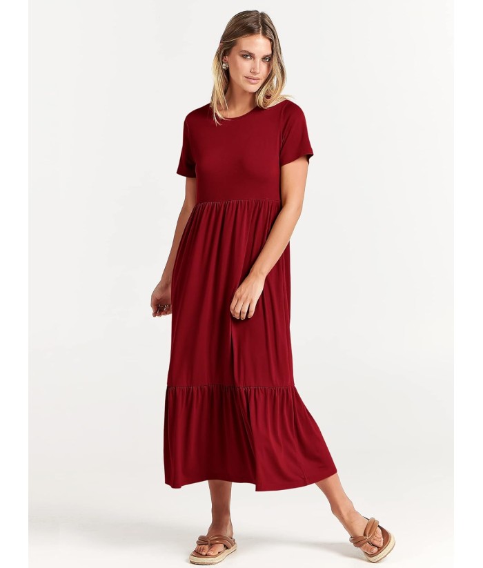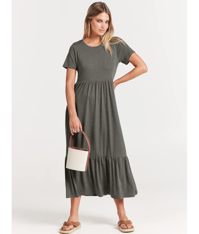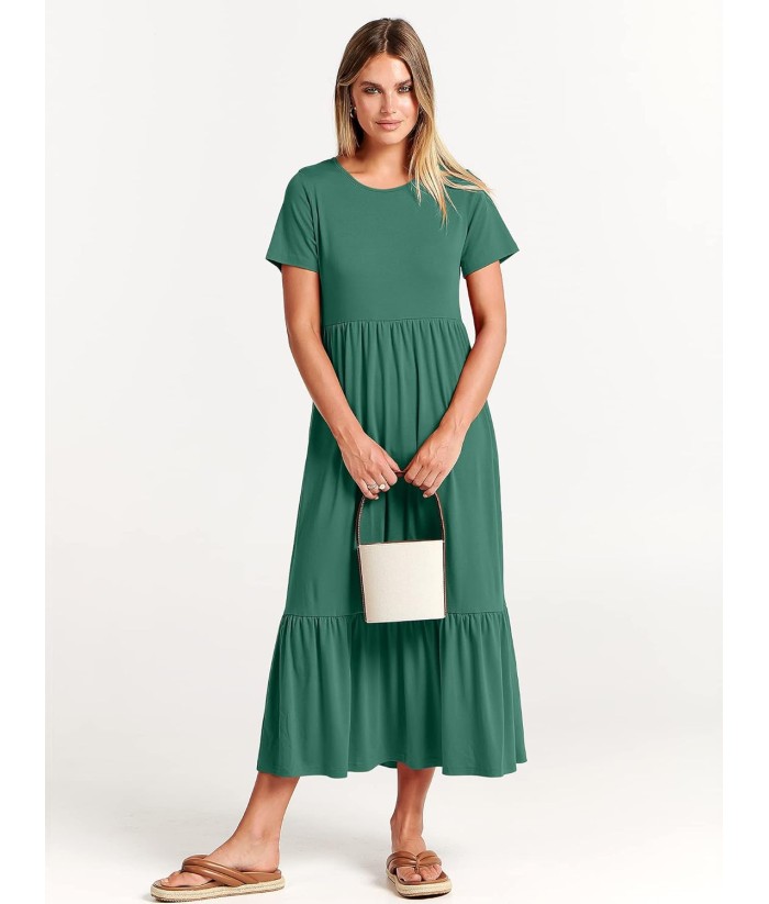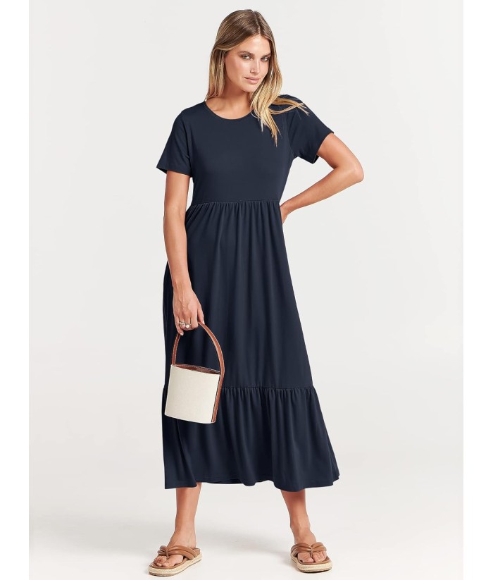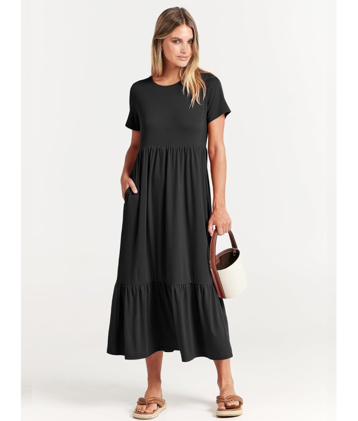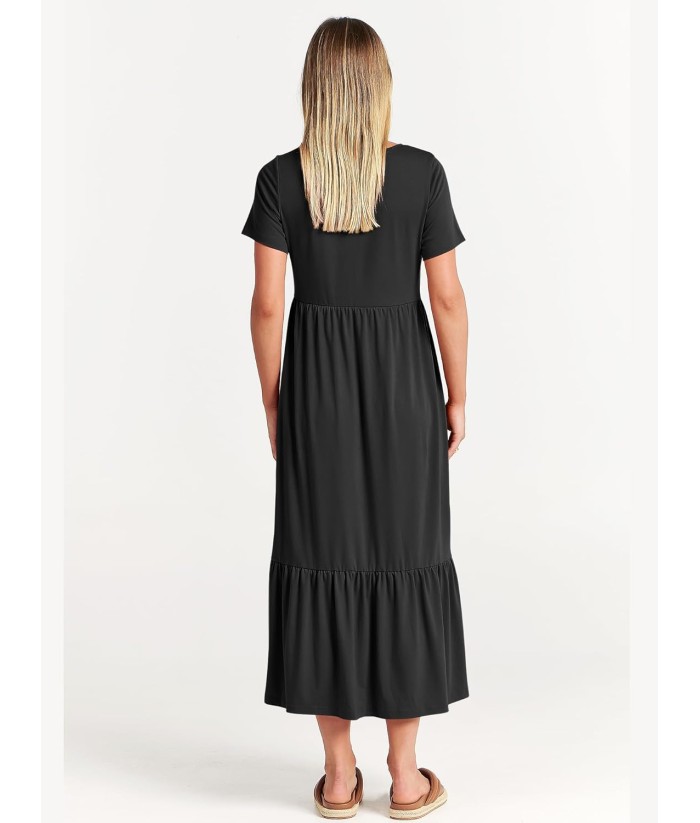 ANRABESS Womens 2025 Summer Casual Maxi Dress A line Tiered Flowy Short Sleeve Crewneck T Shirt Beach Travel Long Dresses