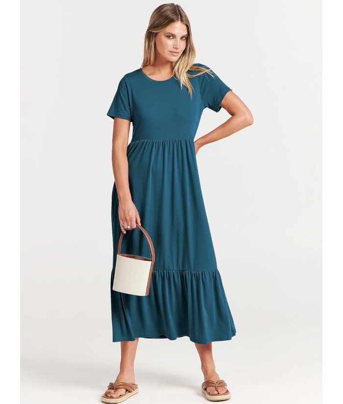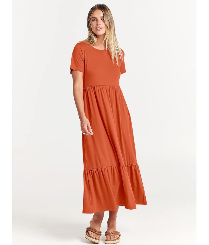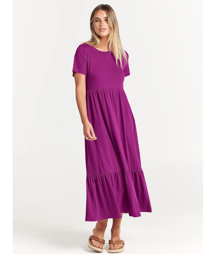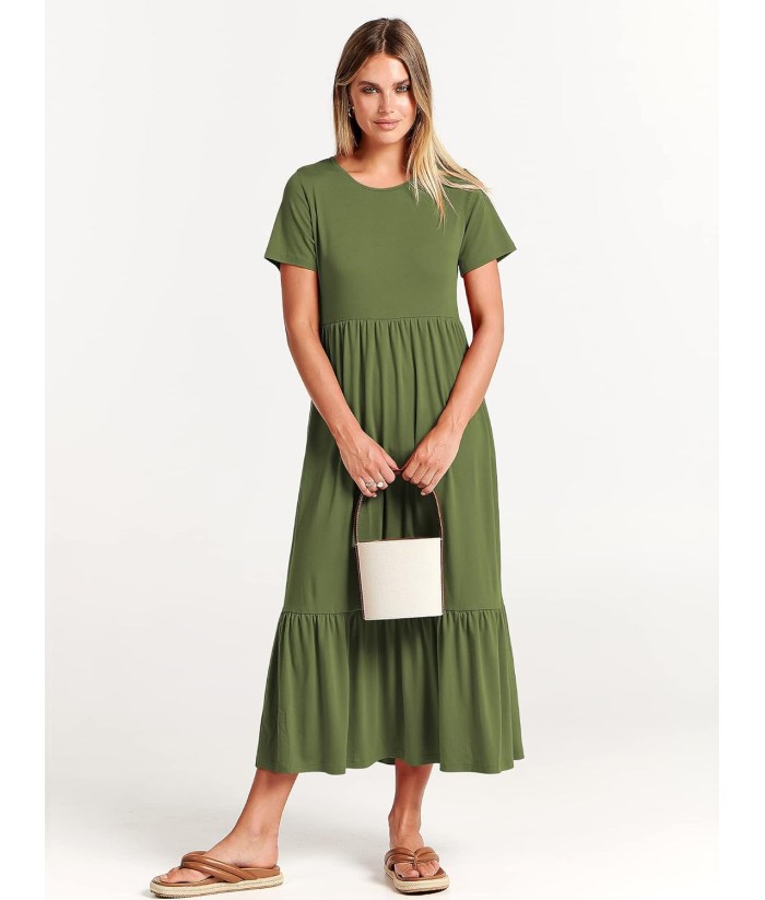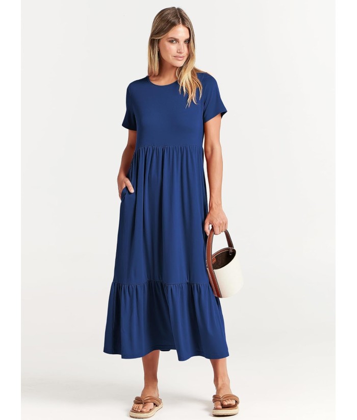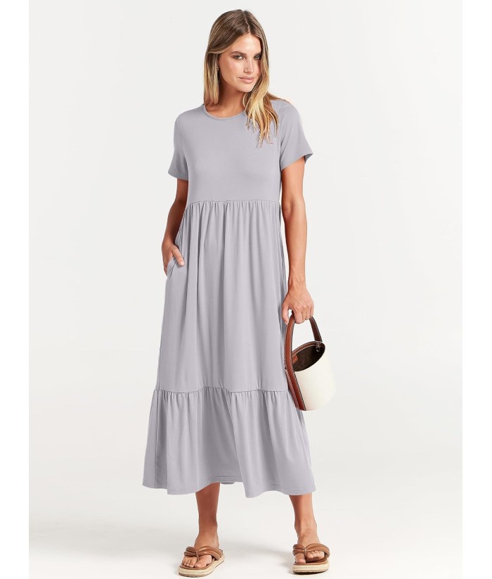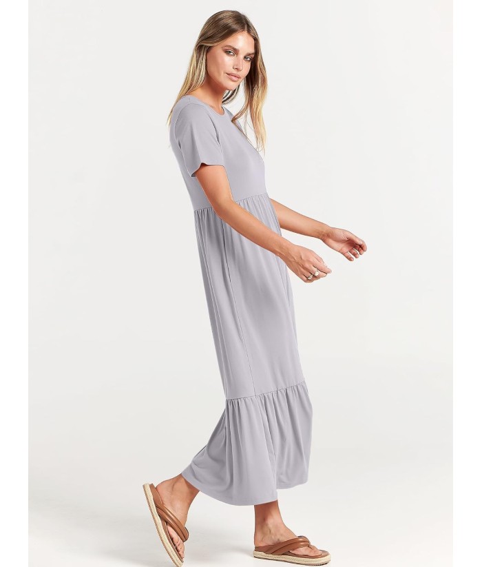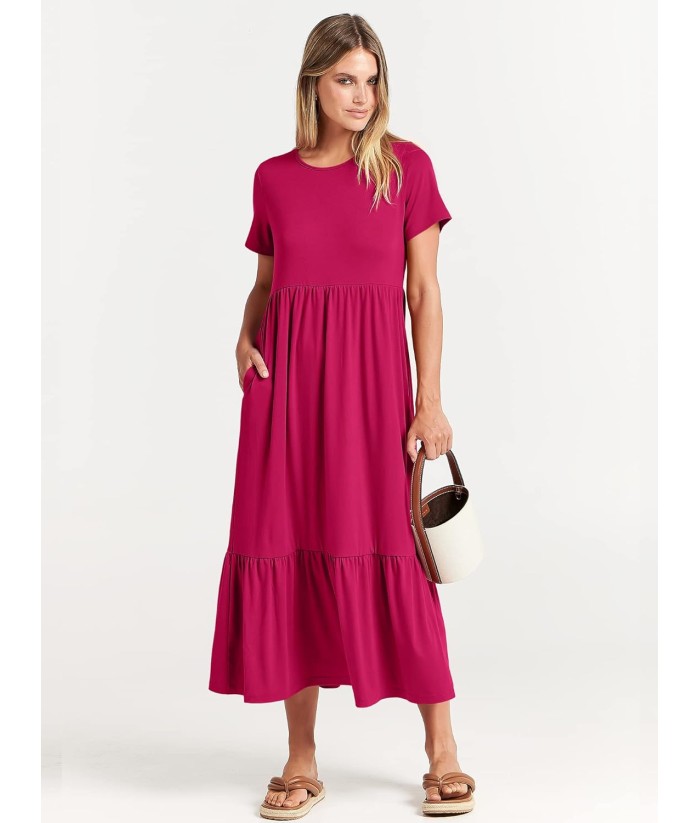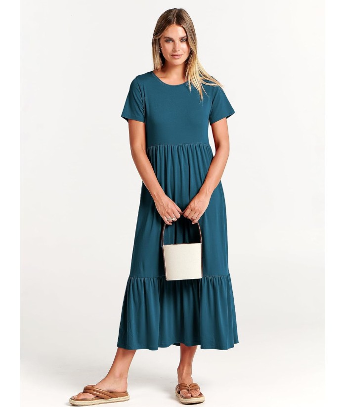 ANRABESS Womens 2025 Summer Casual Maxi Dress A line Tiered Flowy Short Sleeve Crewneck T Shirt Beach Travel Long Dresses