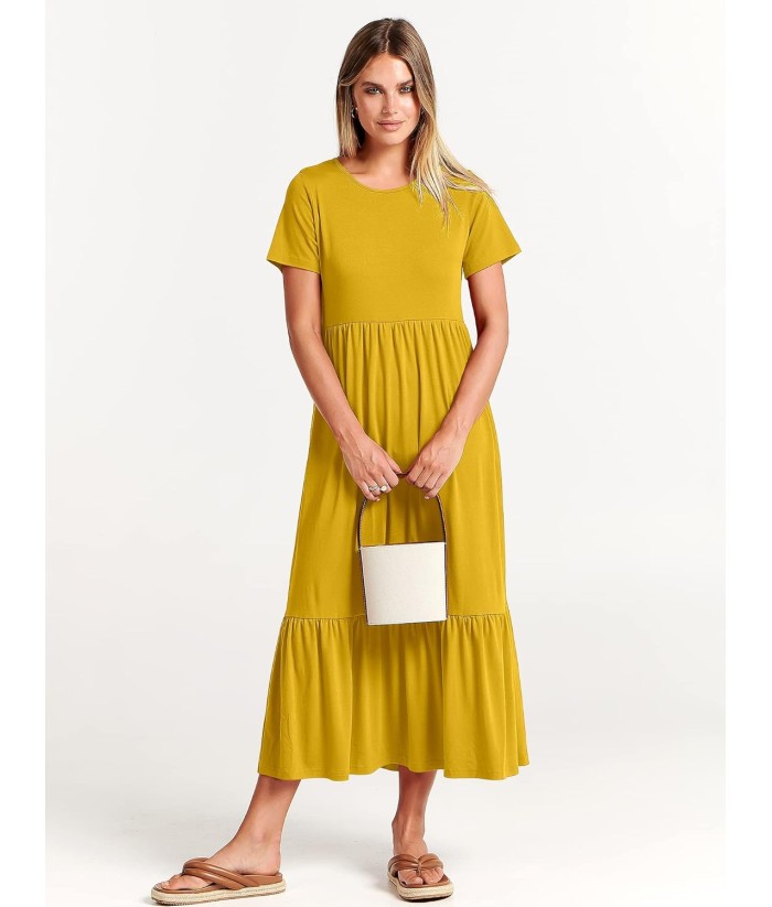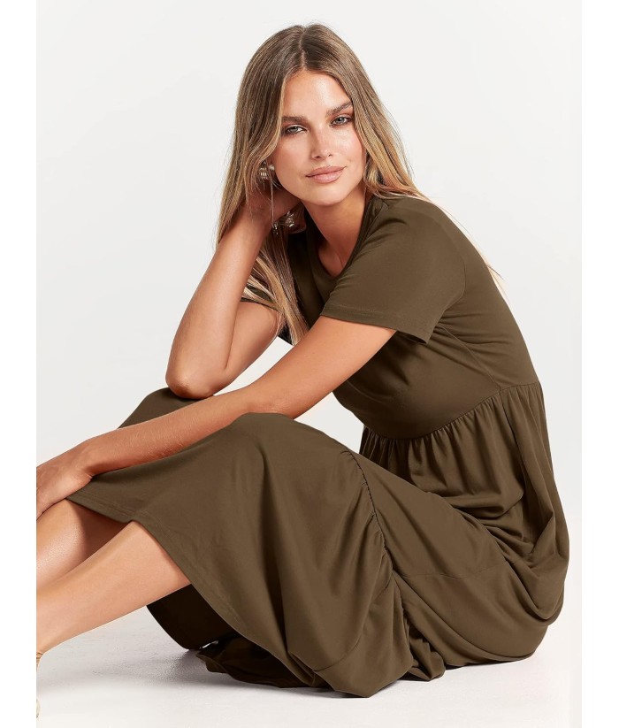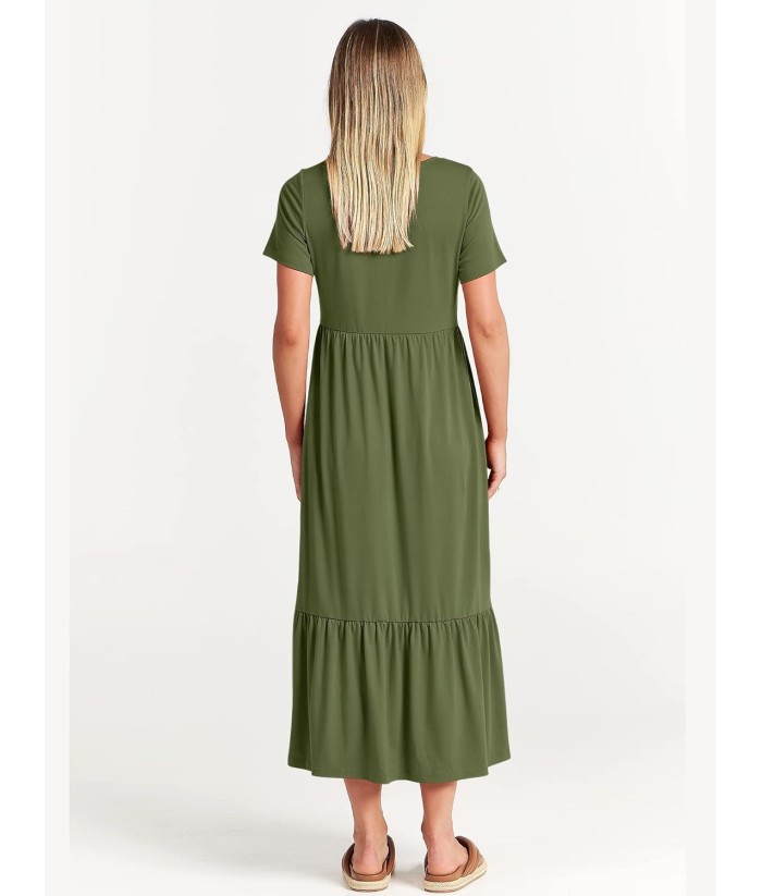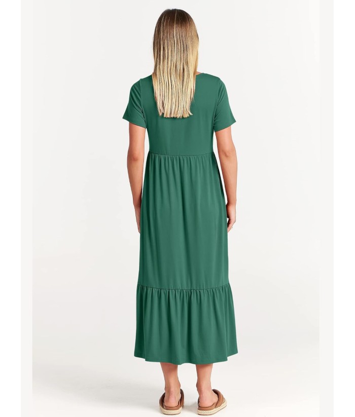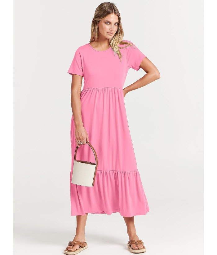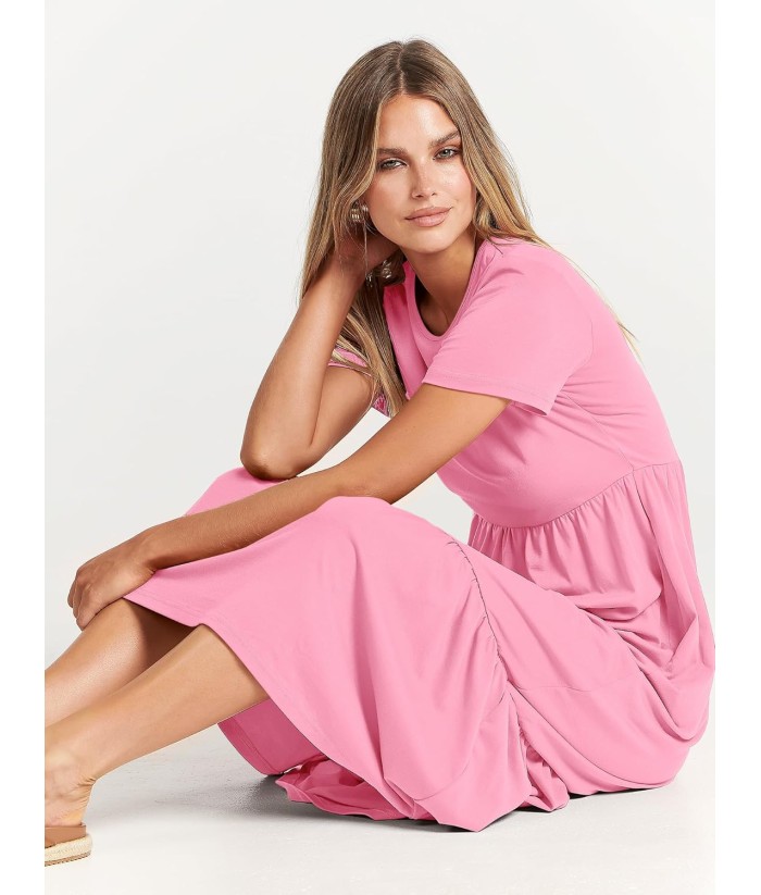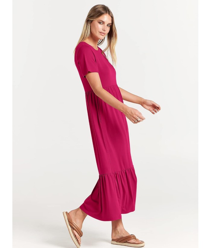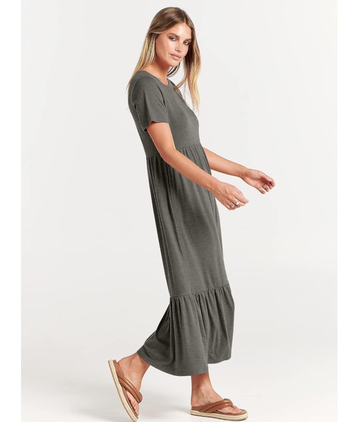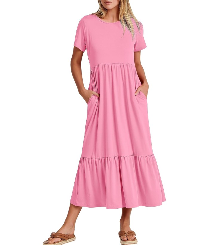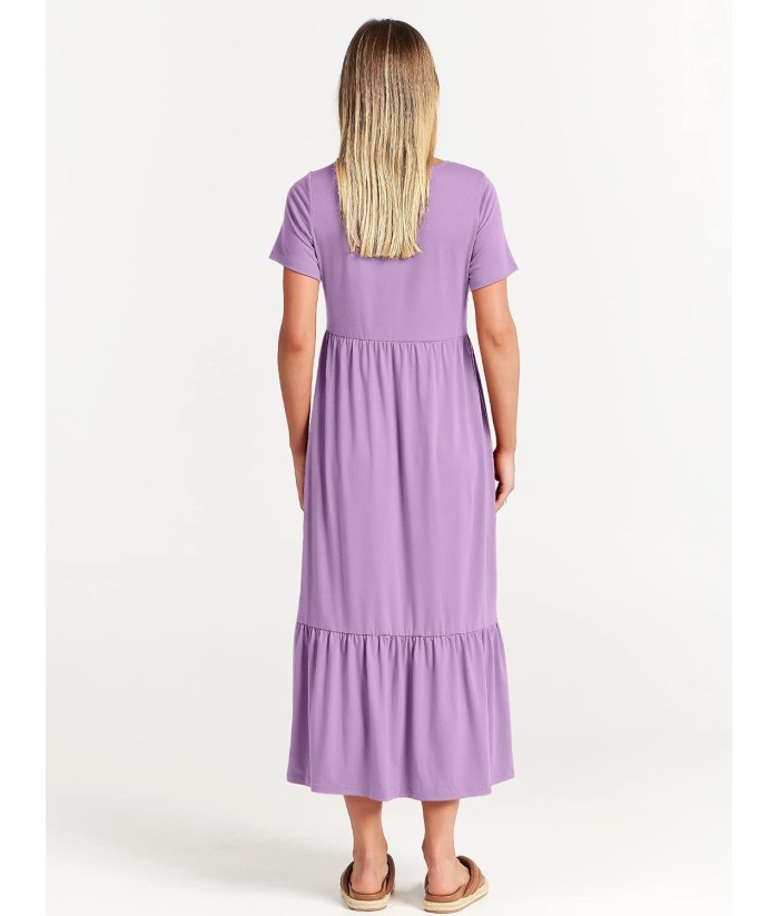 ANRABESS Womens 2025 Summer Casual Maxi Dress A line Tiered Flowy Short Sleeve Crewneck T Shirt Beach Travel Long Dresses