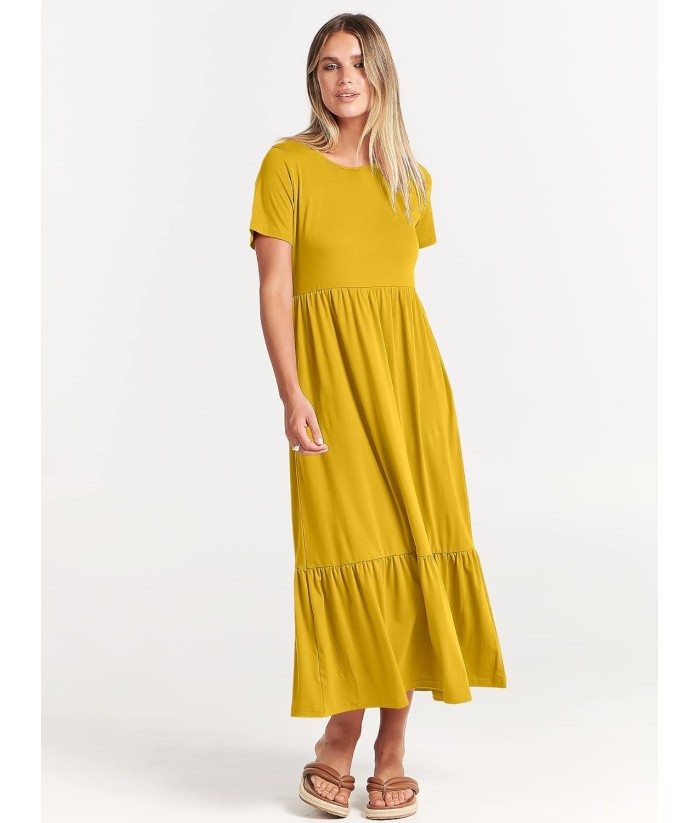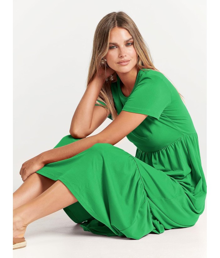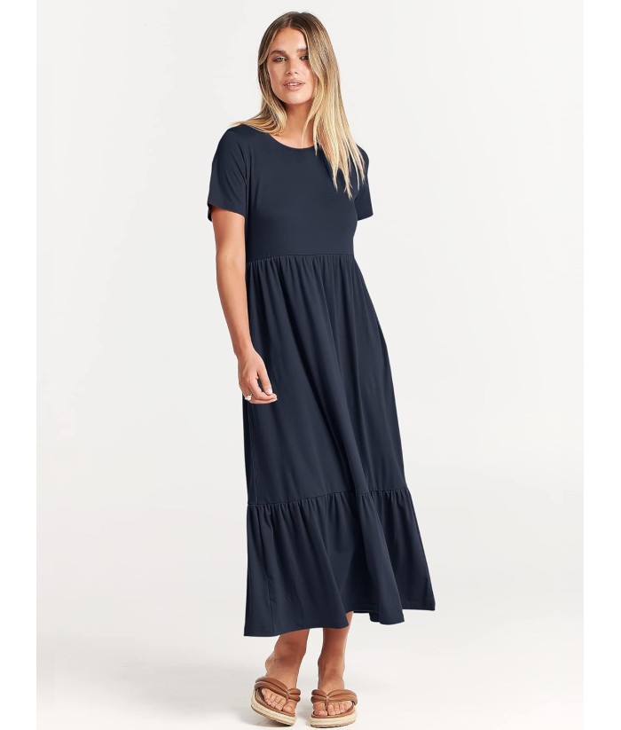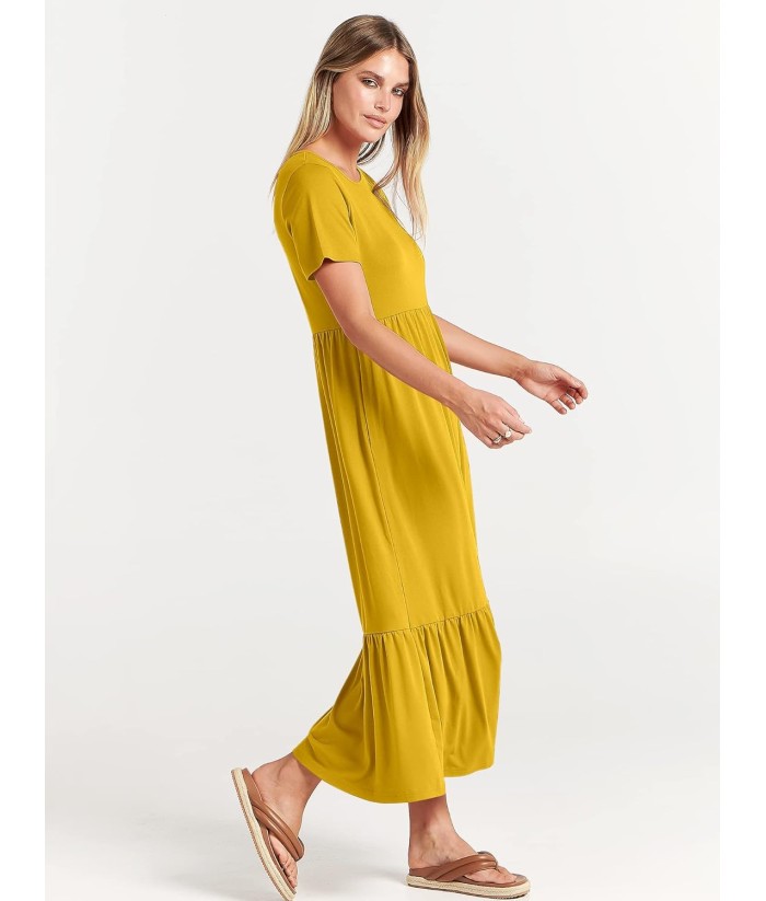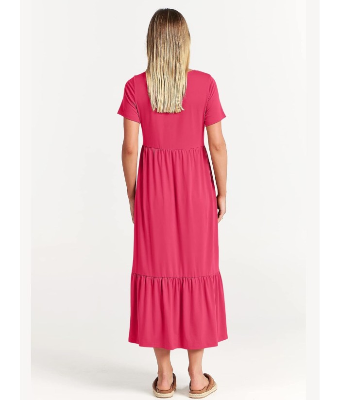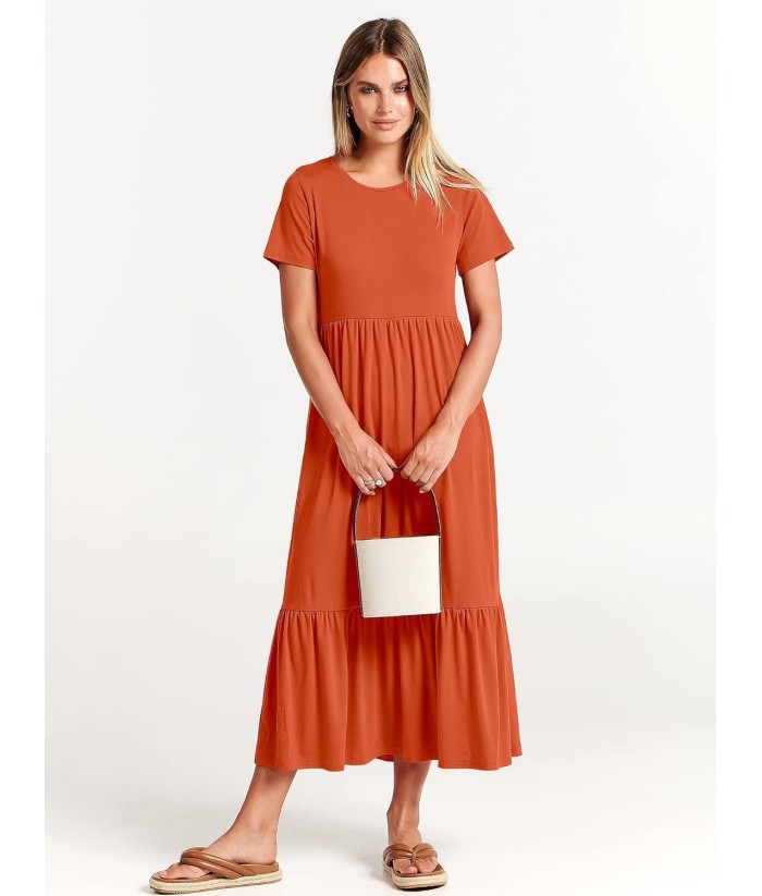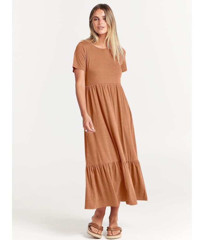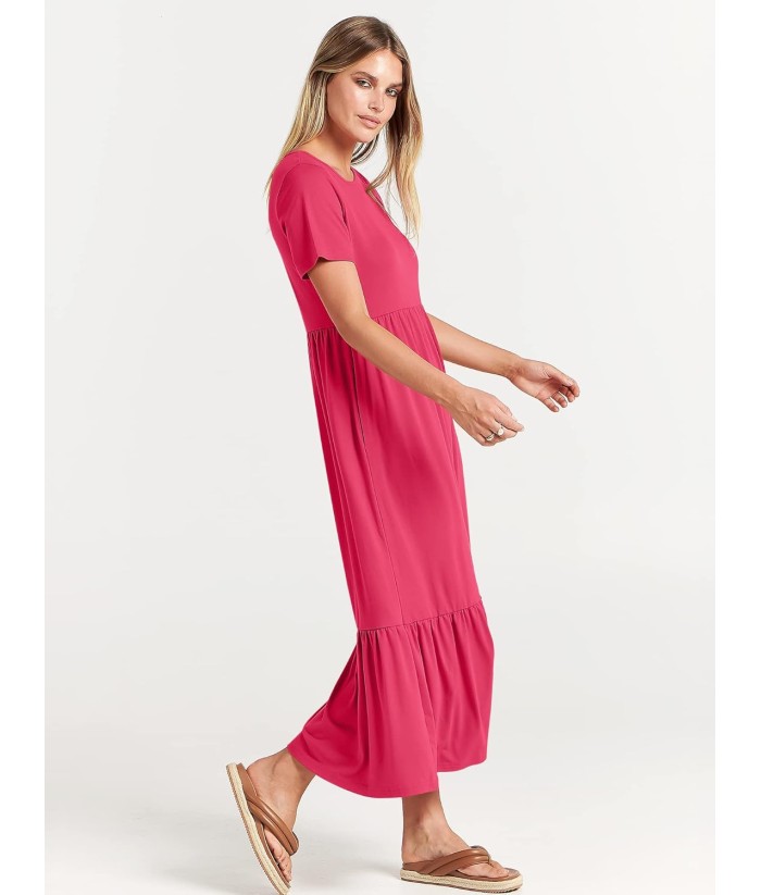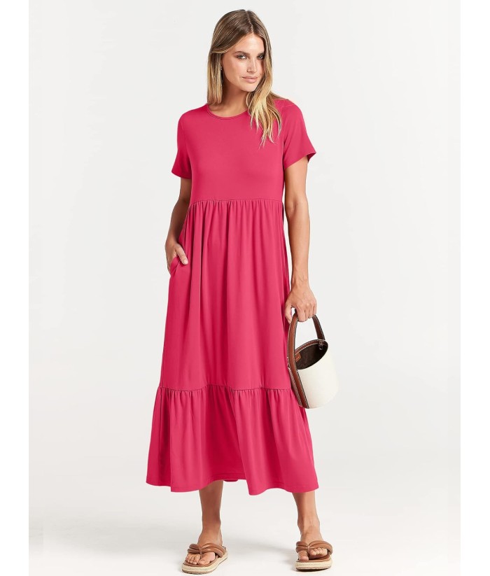 ANRABESS Womens 2025 Summer Casual Maxi Dress A line Tiered Flowy Short Sleeve Crewneck T Shirt Beach Travel Long Dresses