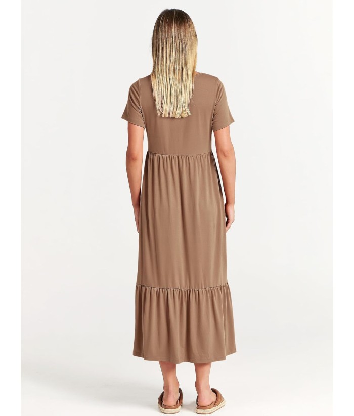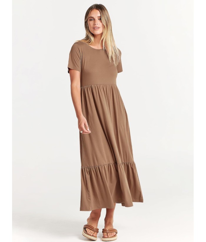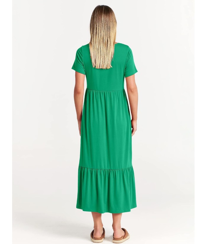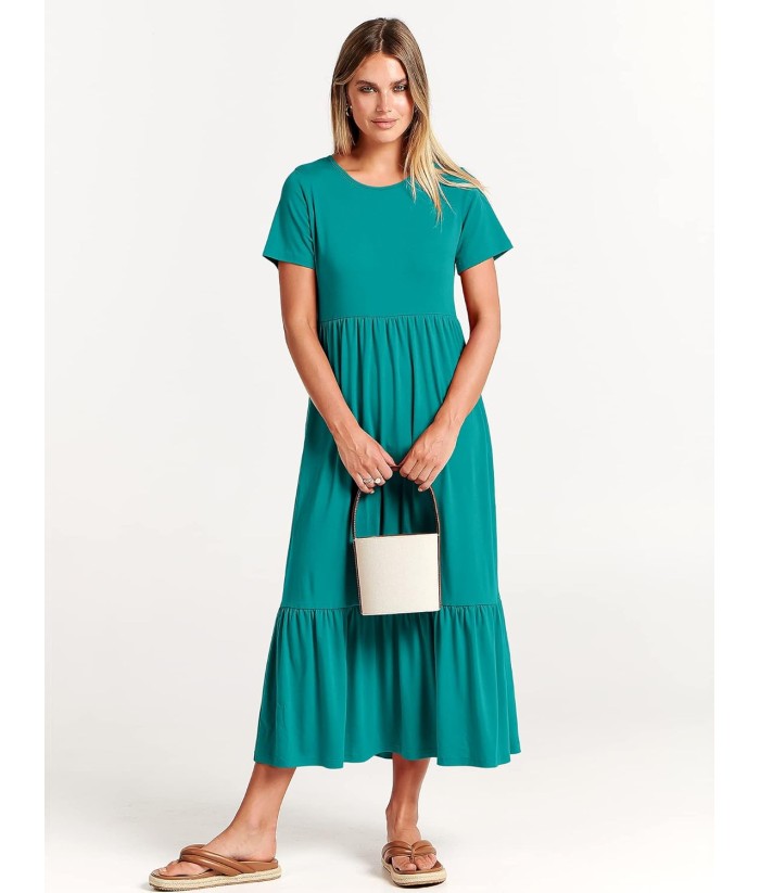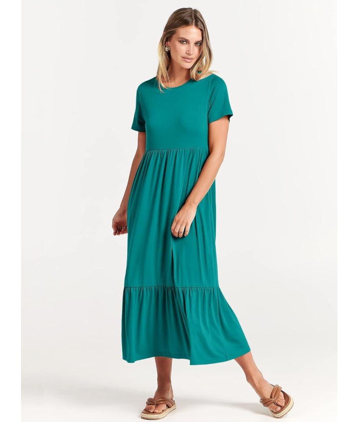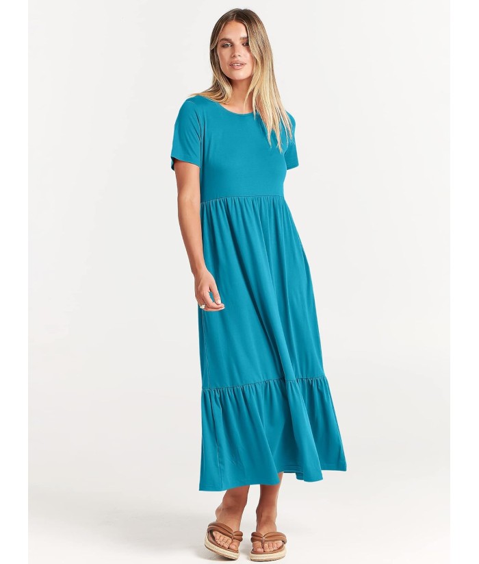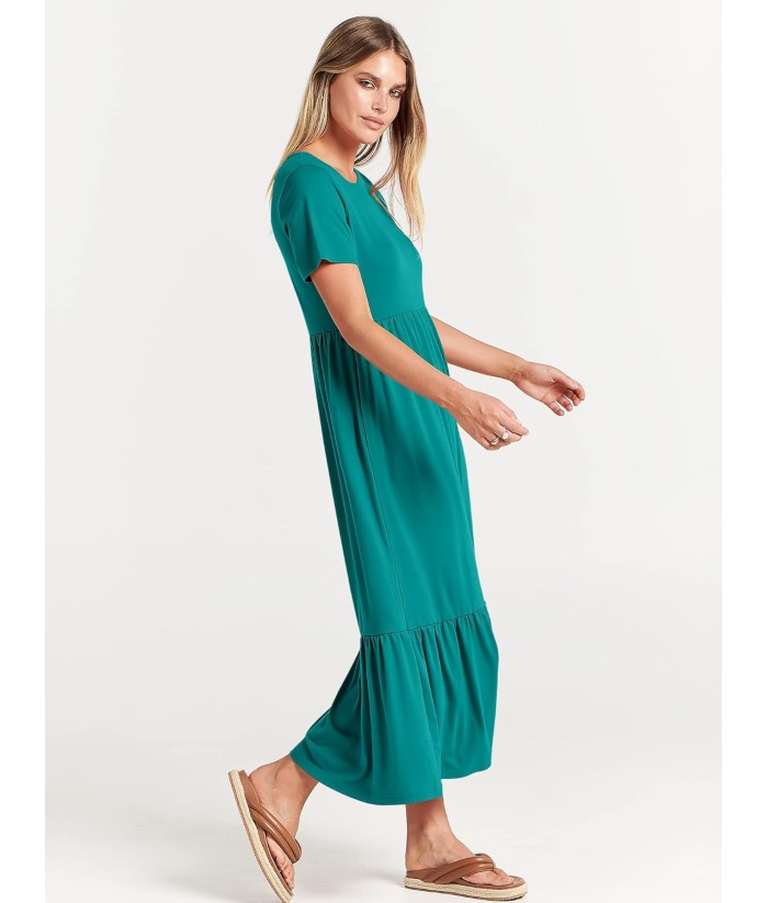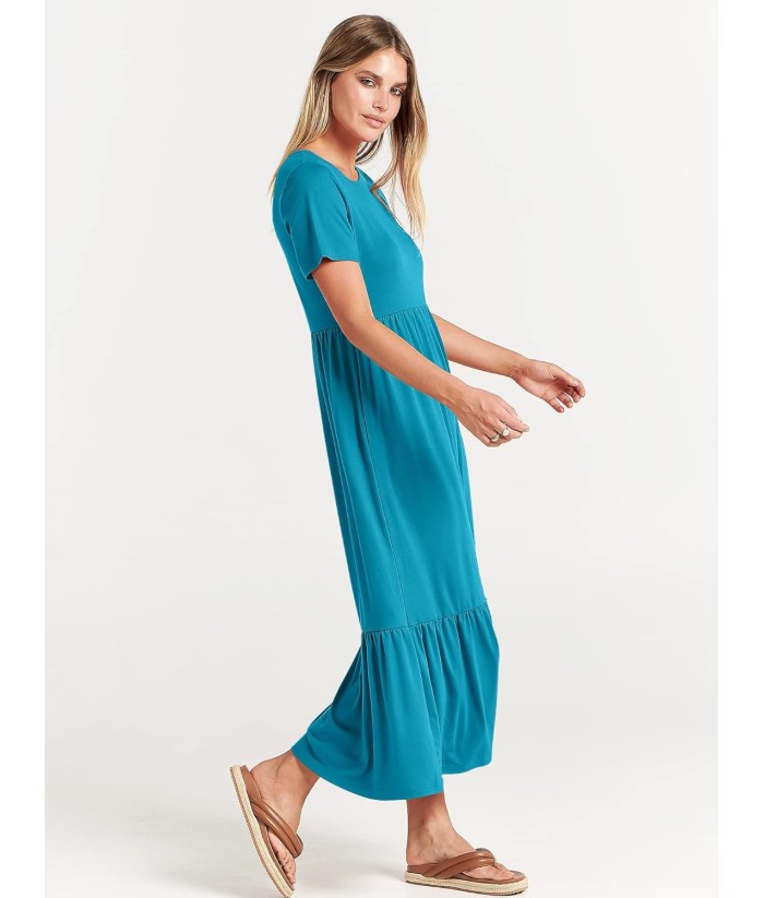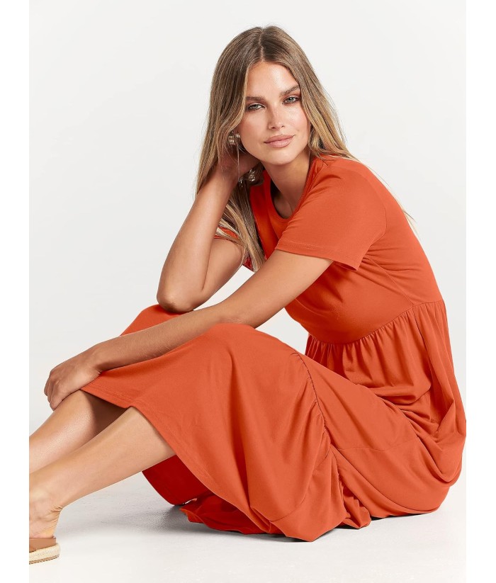 ANRABESS Womens 2025 Summer Casual Maxi Dress A line Tiered Flowy Short Sleeve Crewneck T Shirt Beach Travel Long Dresses