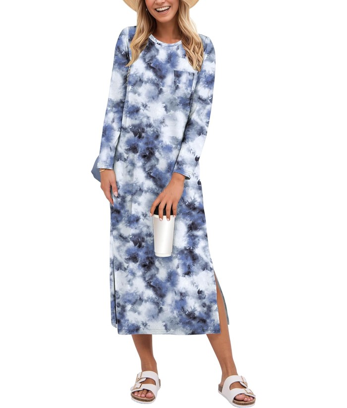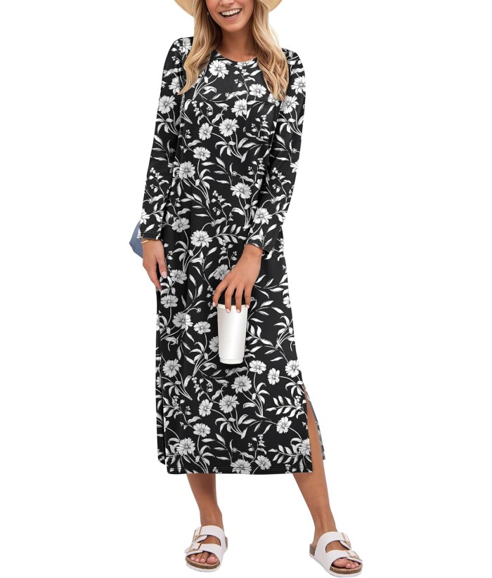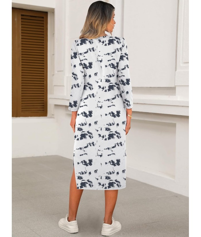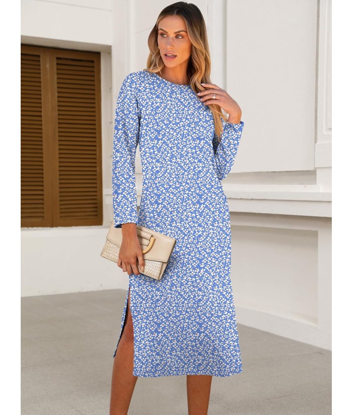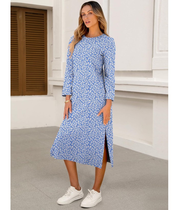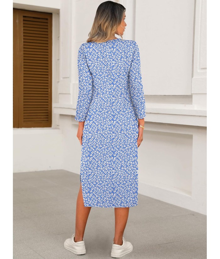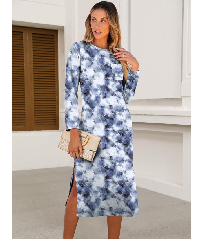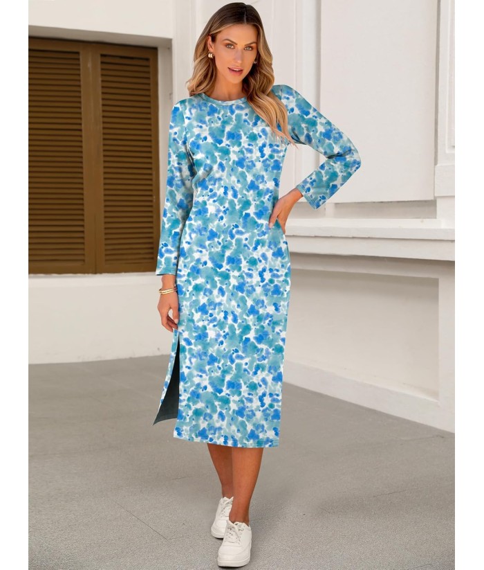 ANRABESS Womens 3/4 Long Sleeve Striped Slit Midi T Shirt Dresses with Pockets 2025 Dressy Casual Fall Fashion Travel Outfits