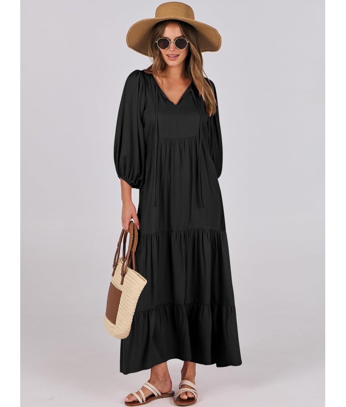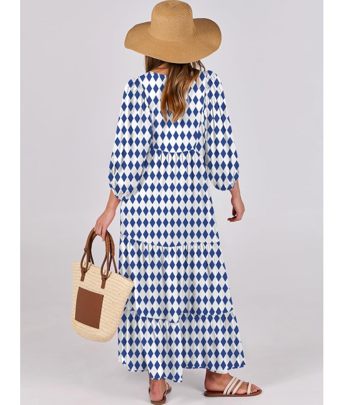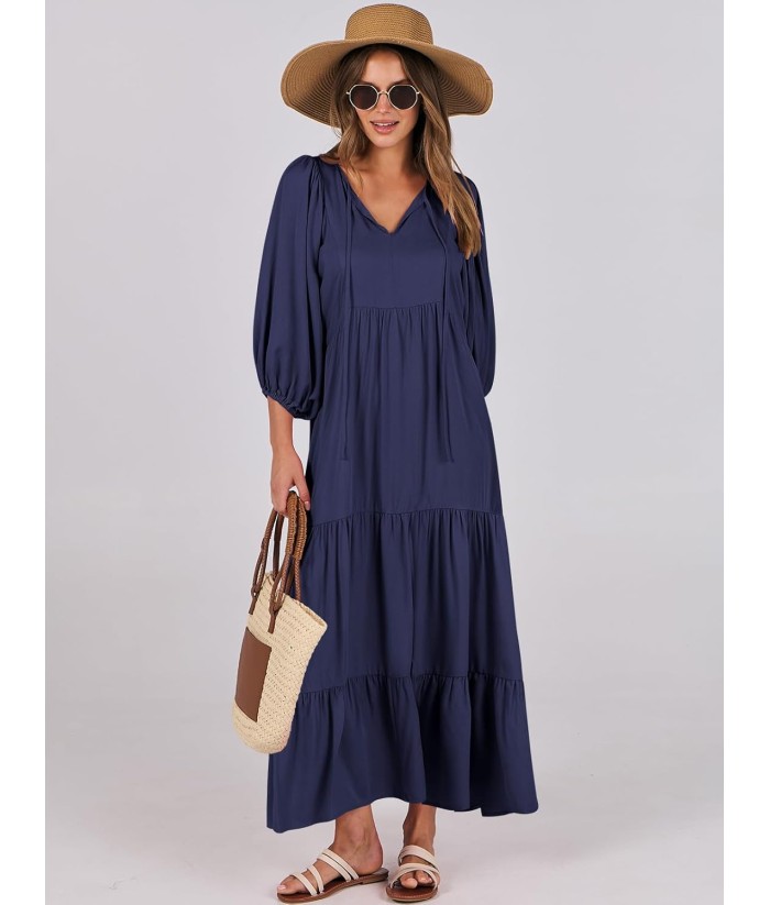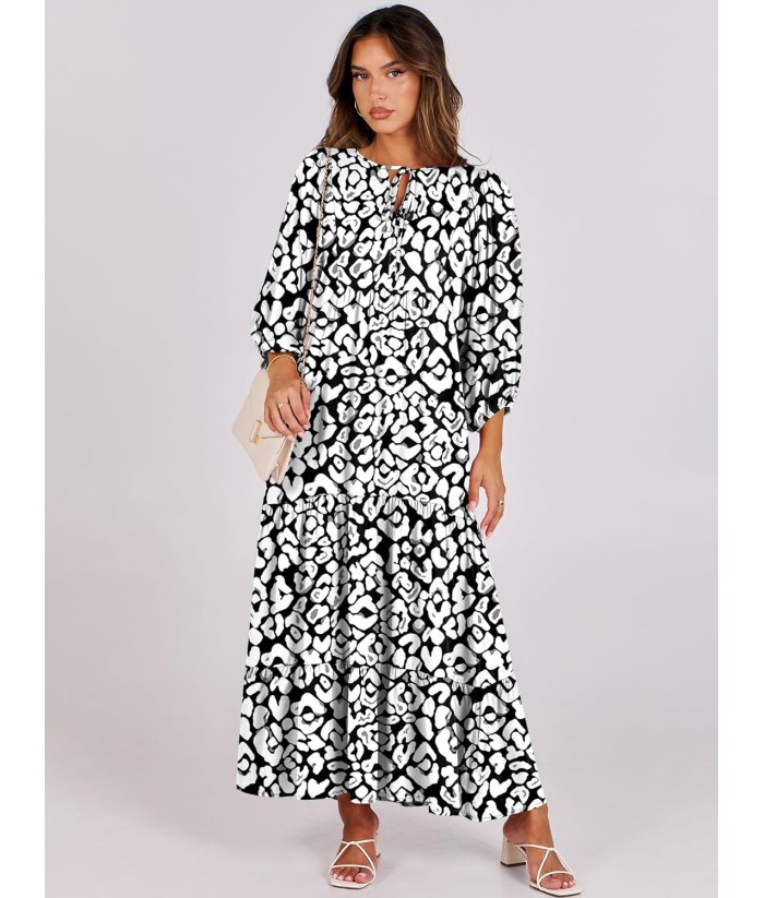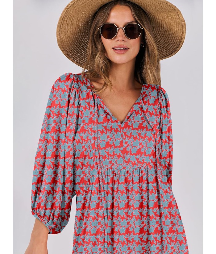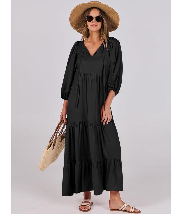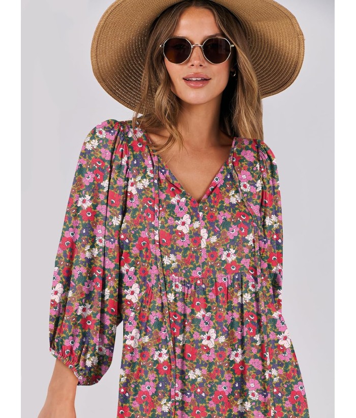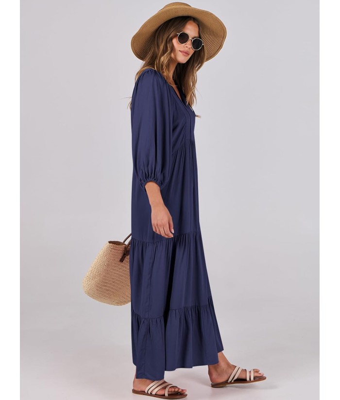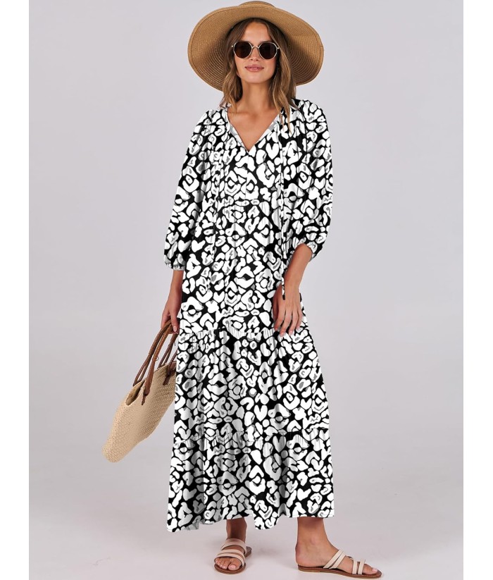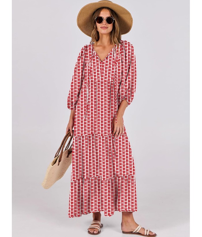 ANRABESS Womens Boho Maxi Dresses 2025 Summer V Neck Puff Sleeve Floral Flowy Swing Fall Casual Long Dress