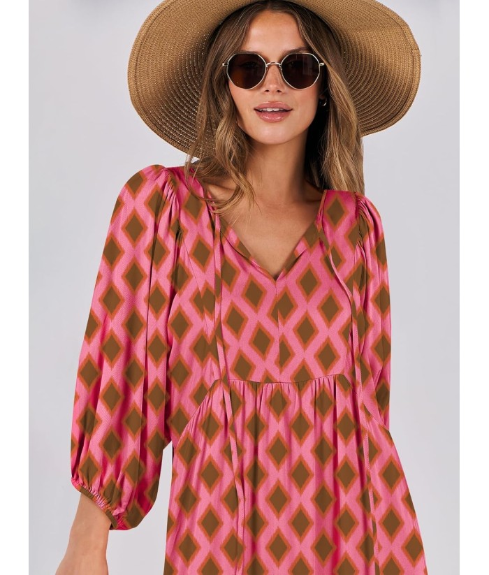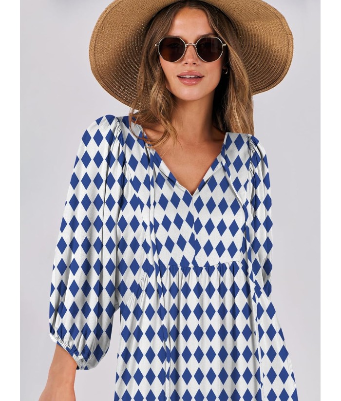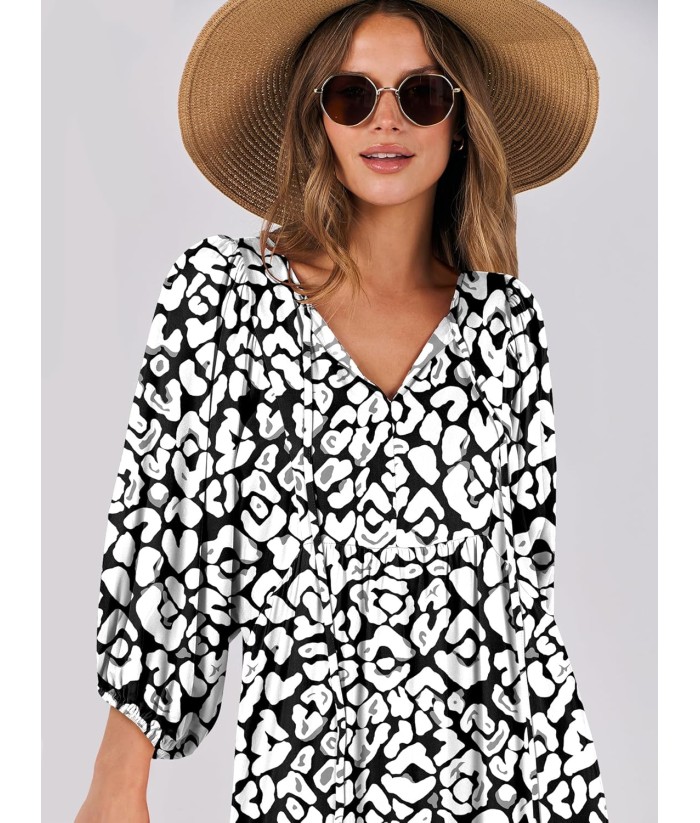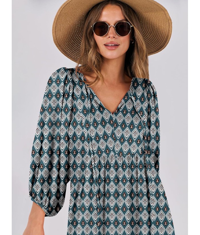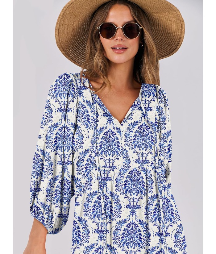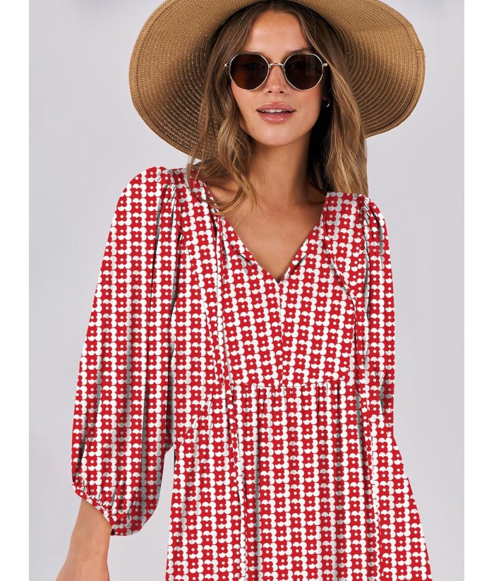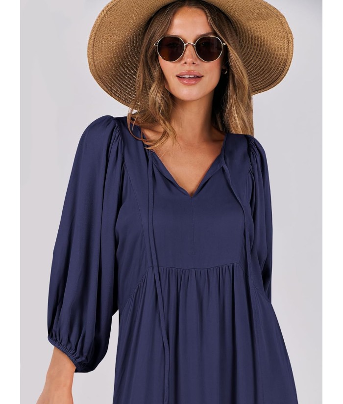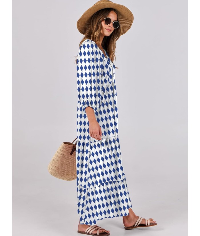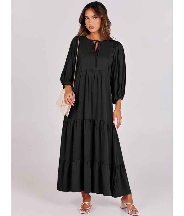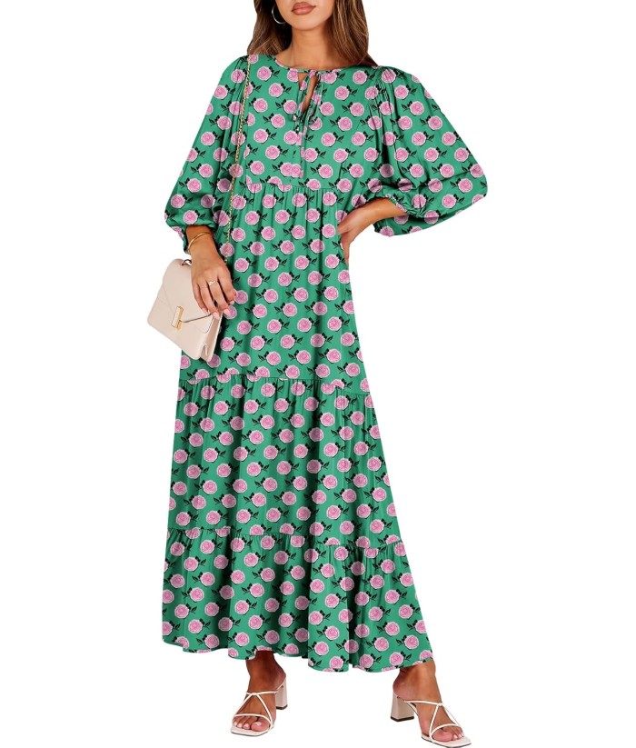ANRABESS Womens Boho Maxi Dresses 2025 Summer V Neck Puff Sleeve Floral Flowy Swing Fall Casual Long Dress