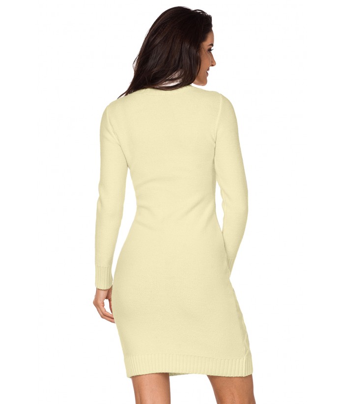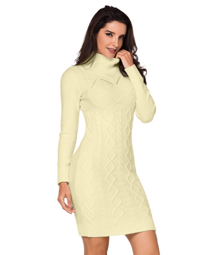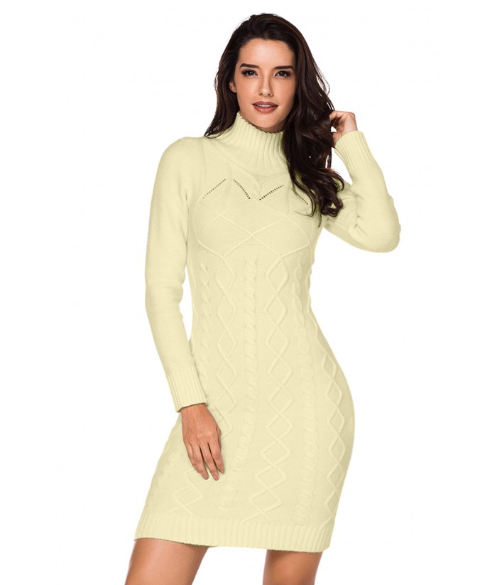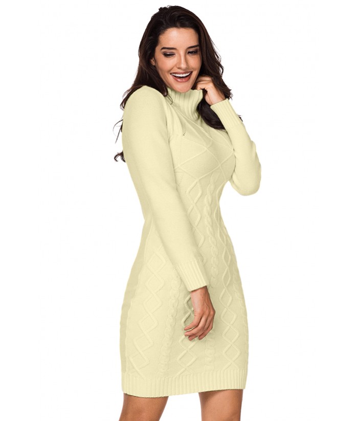 Product Name | Apricot Cable Knit High Neck Sweater Dress |