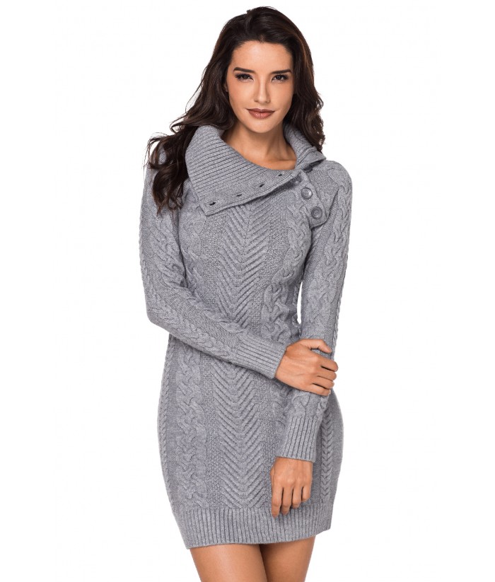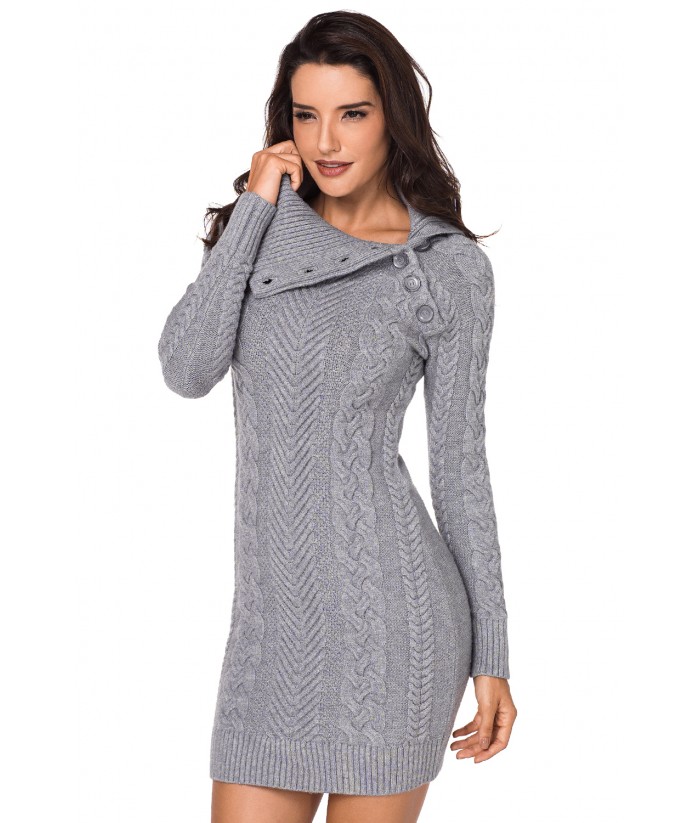 Product Name | Asymmetric Buttoned Collar Grey Bodycon Sweater Dres |