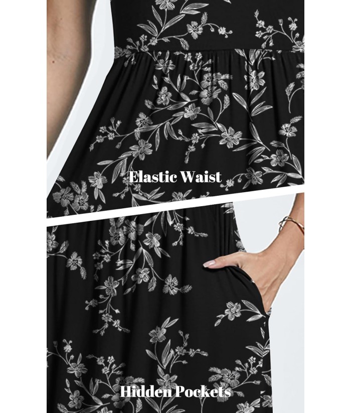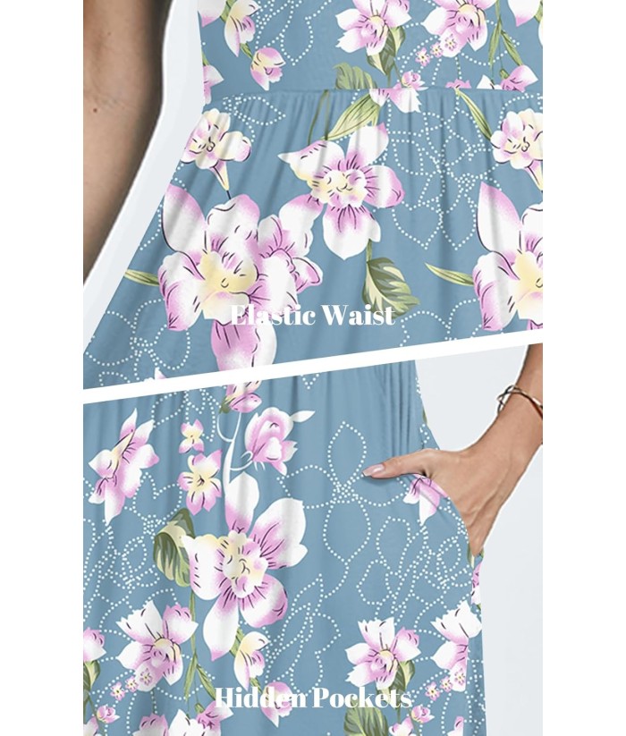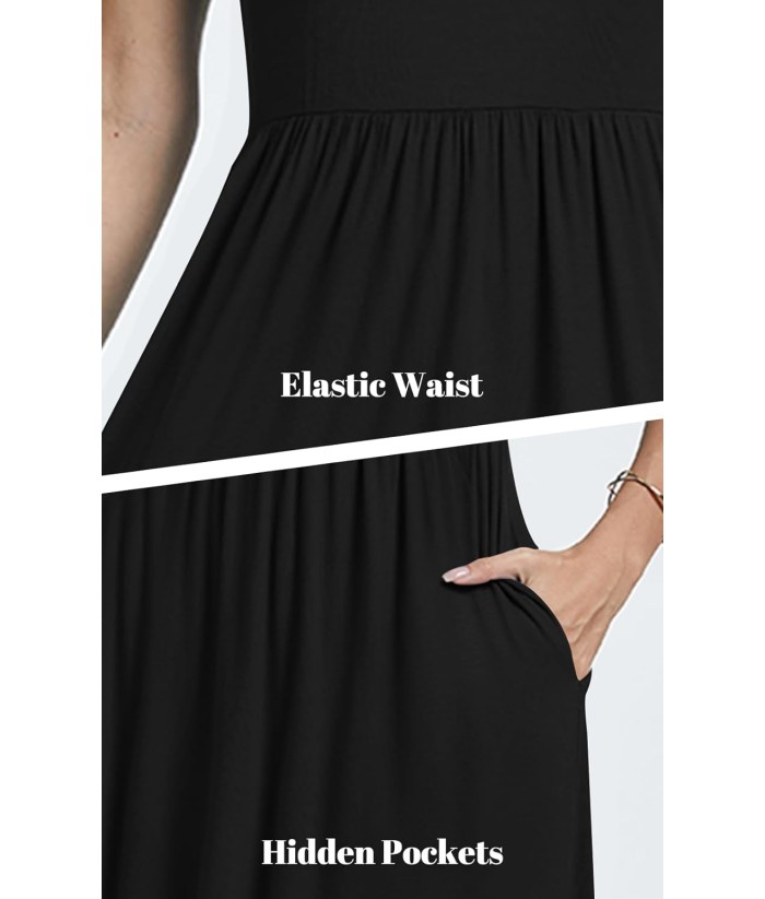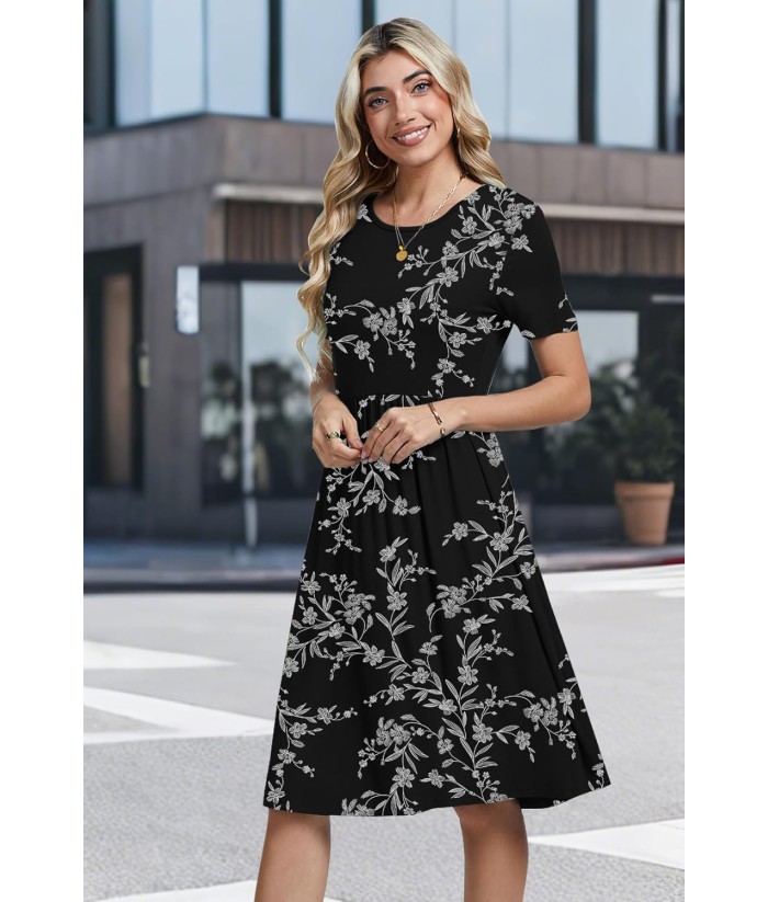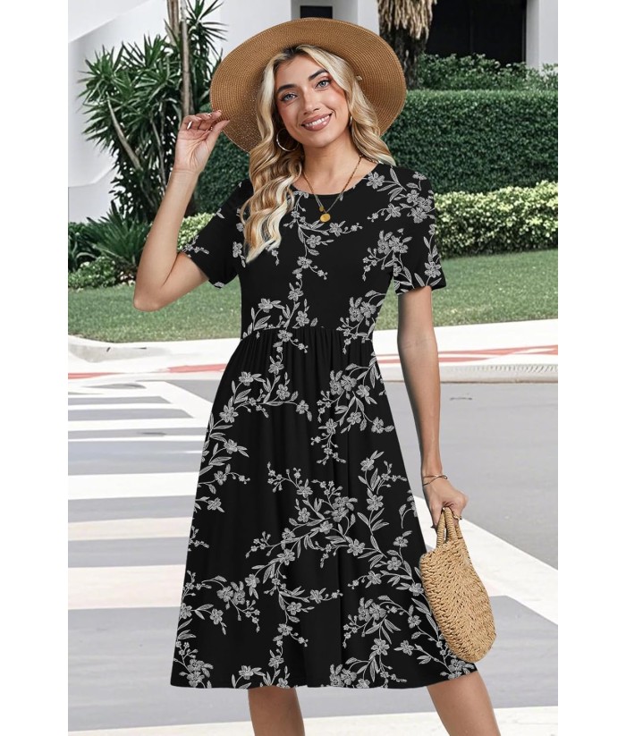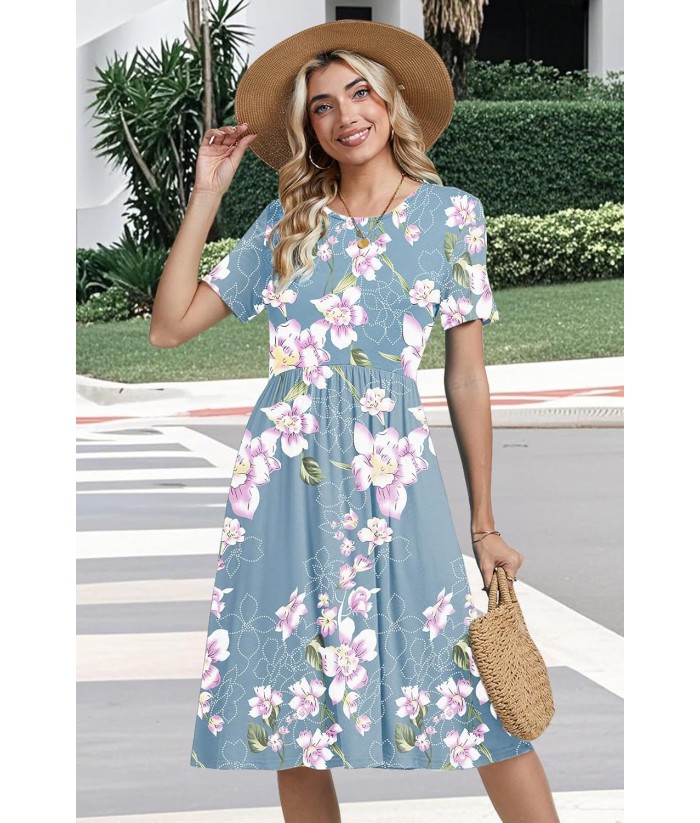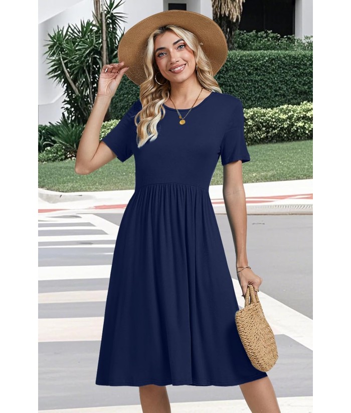 AYIFU Womens Short Sleeve Empire Waist Dresses Casual Summer Dress with Pockets
