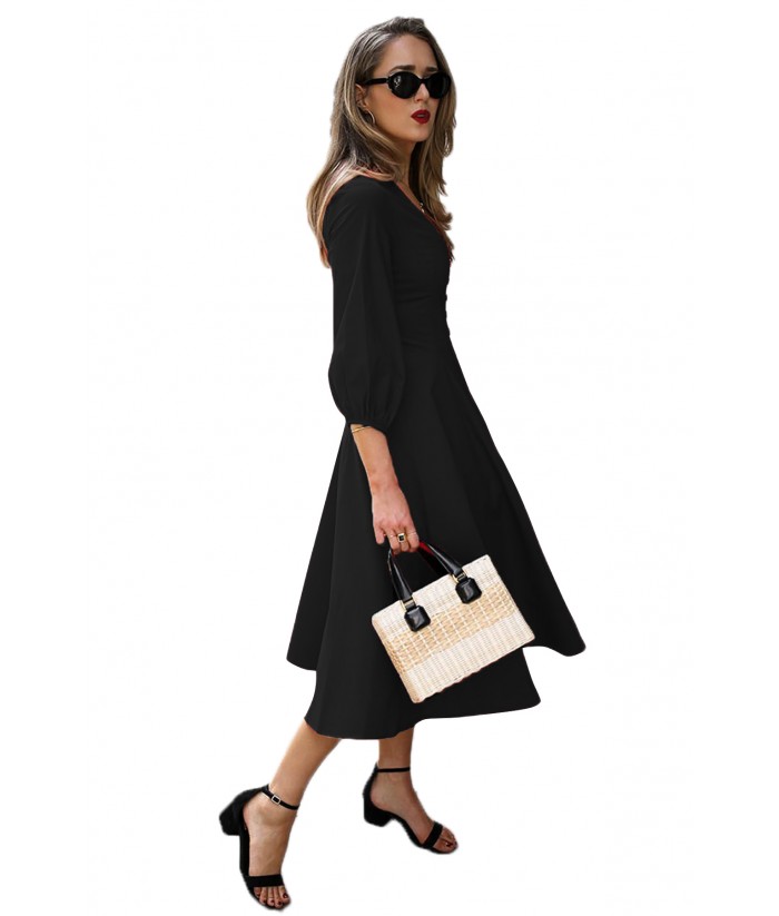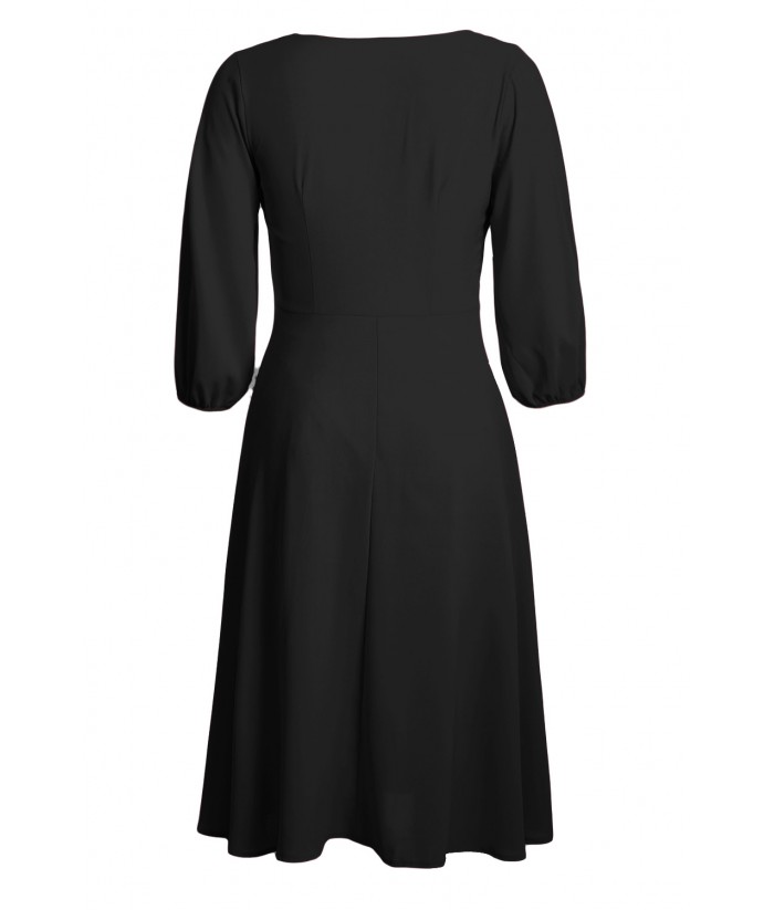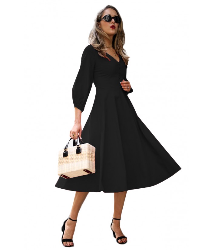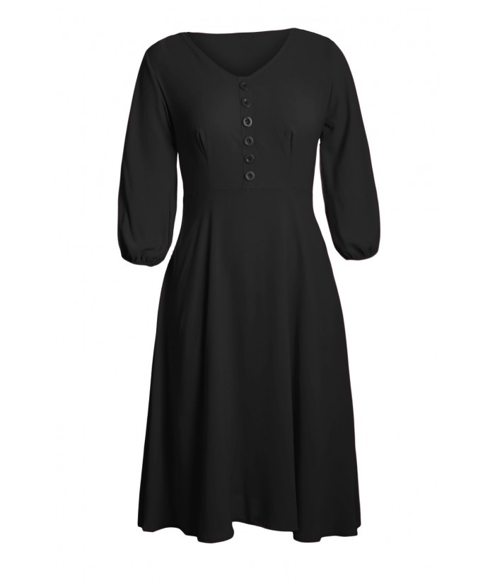 Product Name | Black Button Front Balloon Sleeve Vintage Dress |