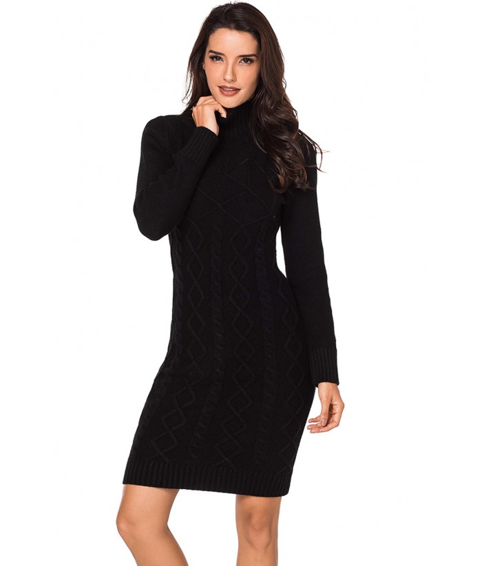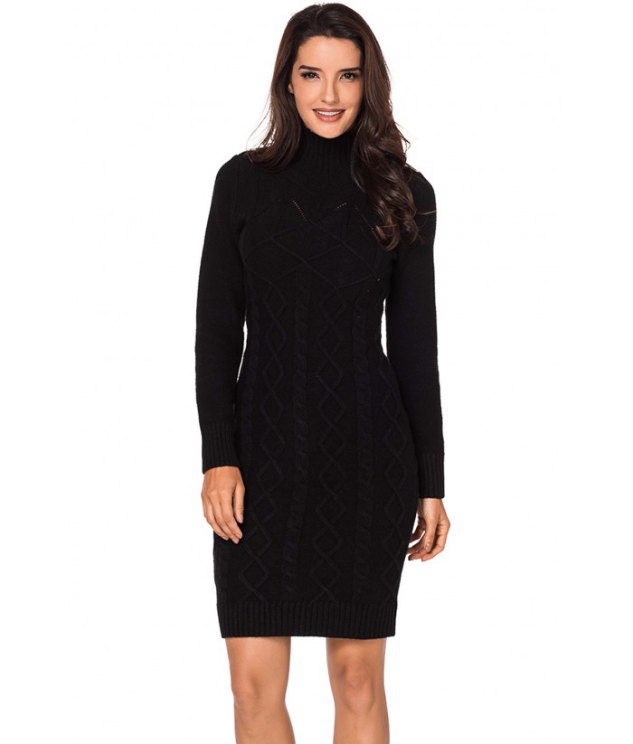 Product Name | Black Cable Knit High Neck Sweater Dress |