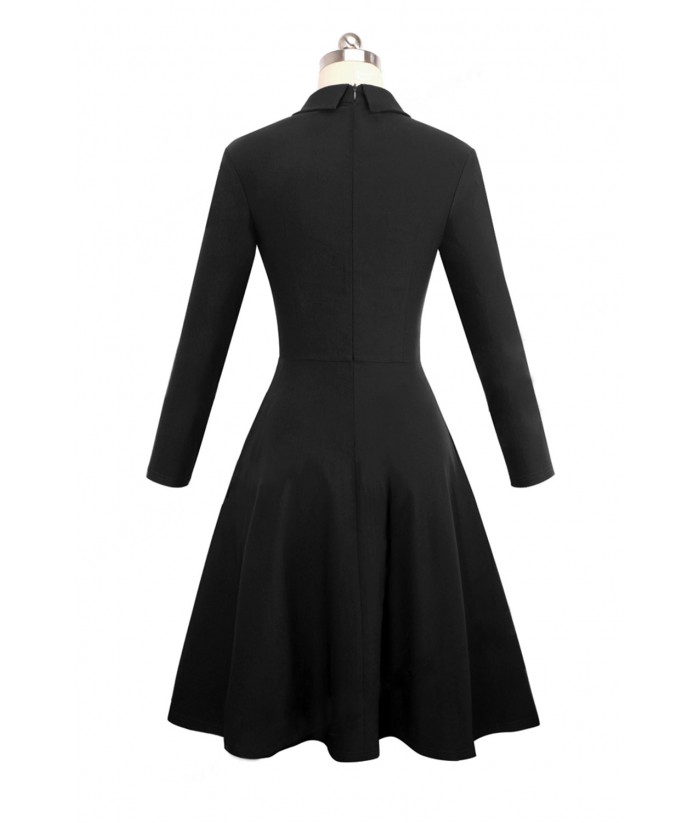 Black Double Breasted Vintage Flared Dress