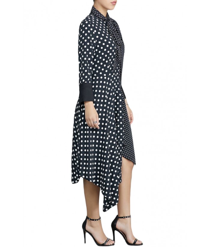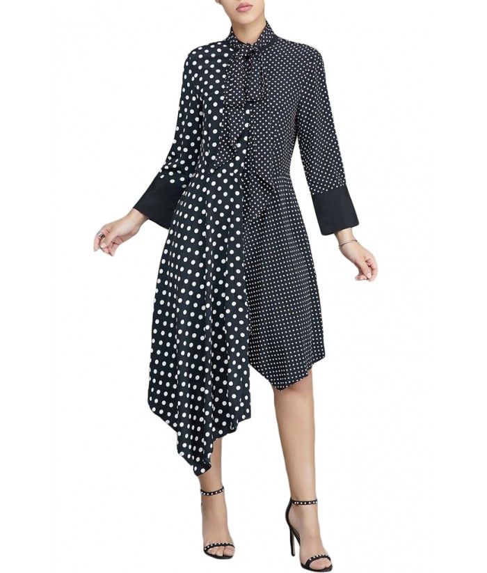 Black Polka Dot Asymmetric Vintage Dress