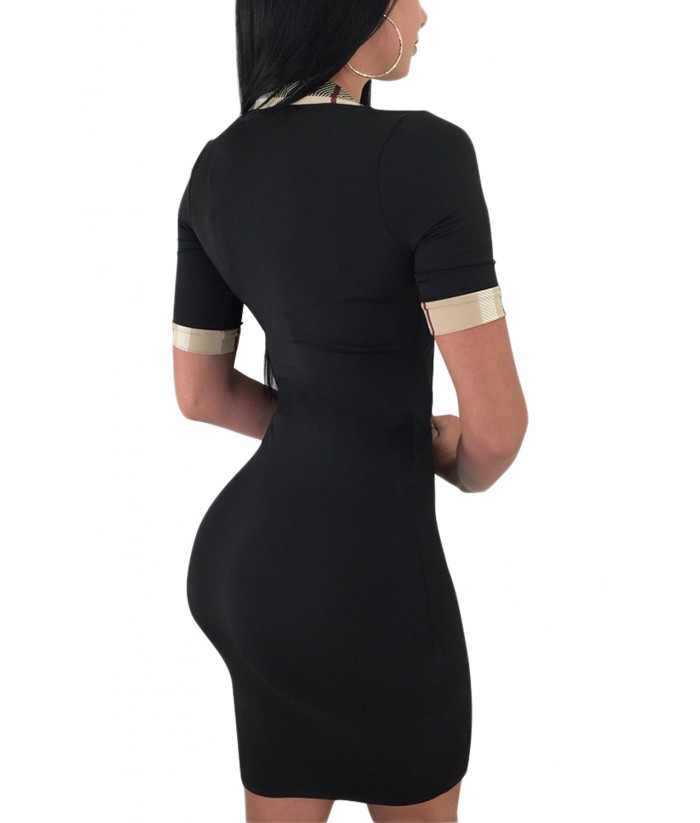 Product Name | Black Turndown Collar Short Sleeves Sheath Dress |