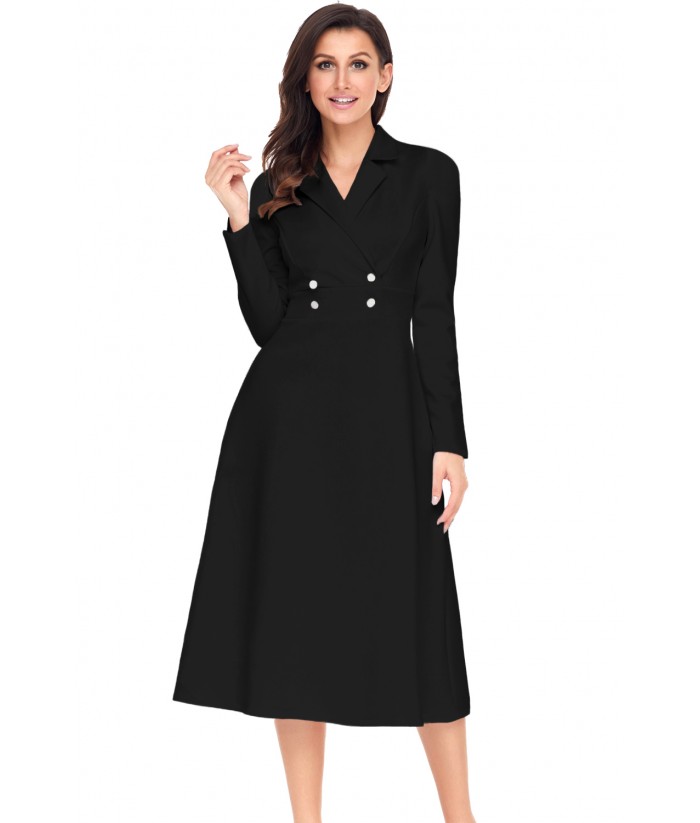 Product Name | Black Vintage Button Collared Fit-and-flare Dress |
