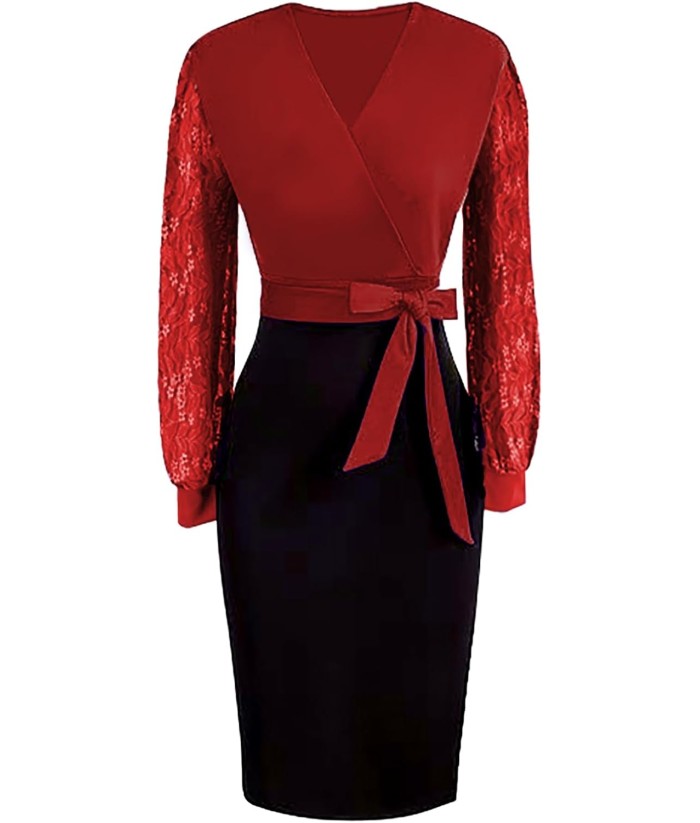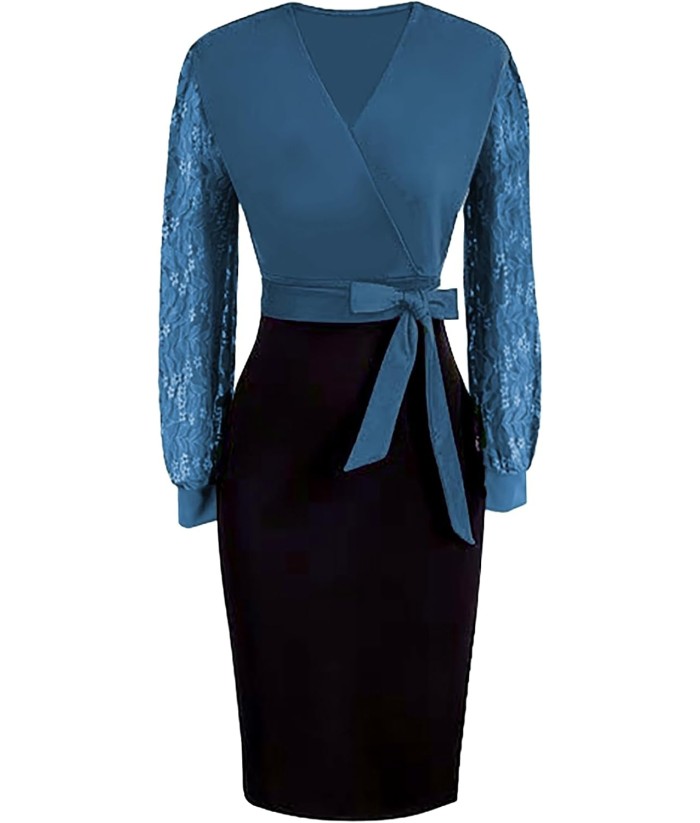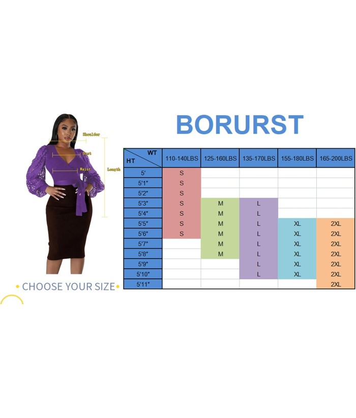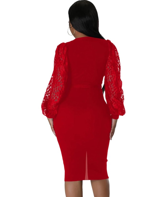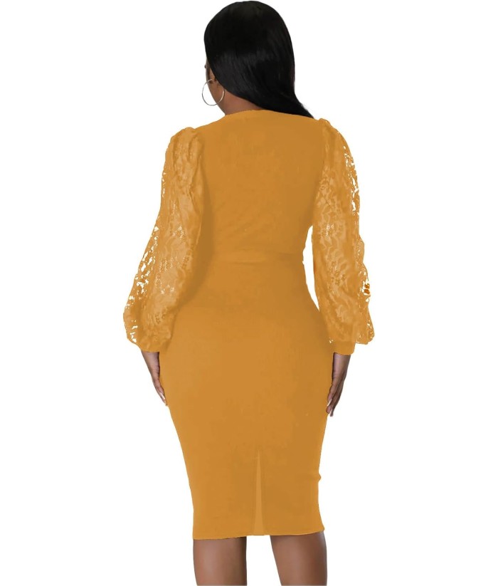 BOGURST Semi Formal Church Dresses for Women Bishop Sleeve Sexy V Neck Bodycon Midi Dresses
