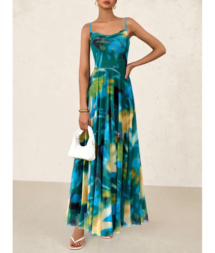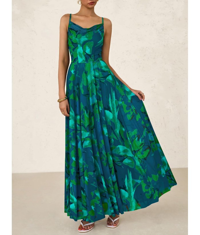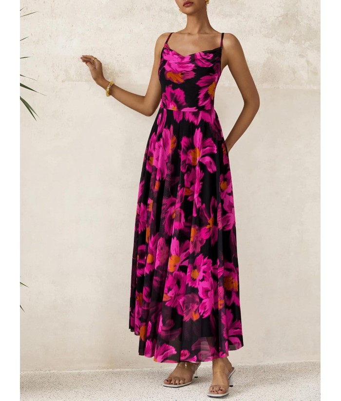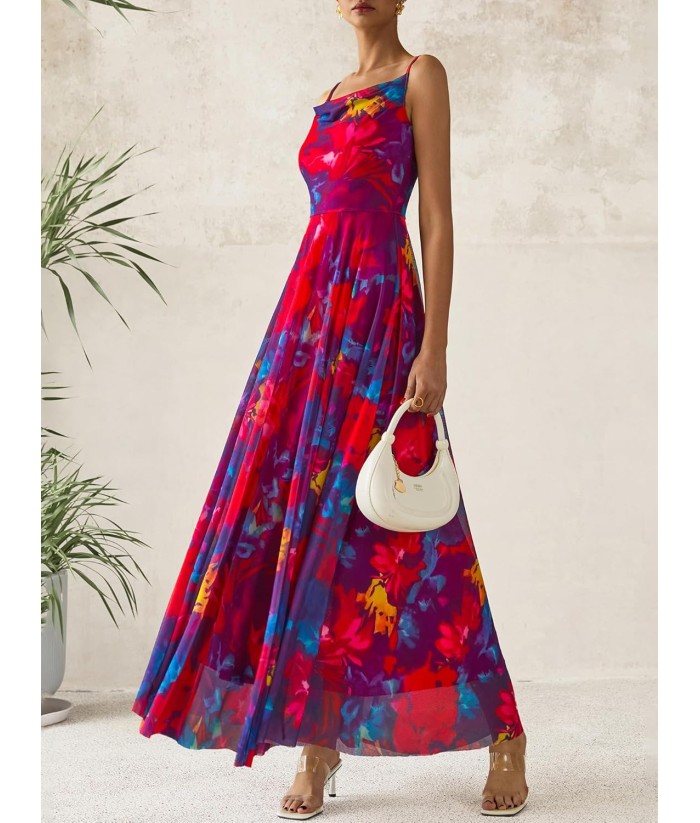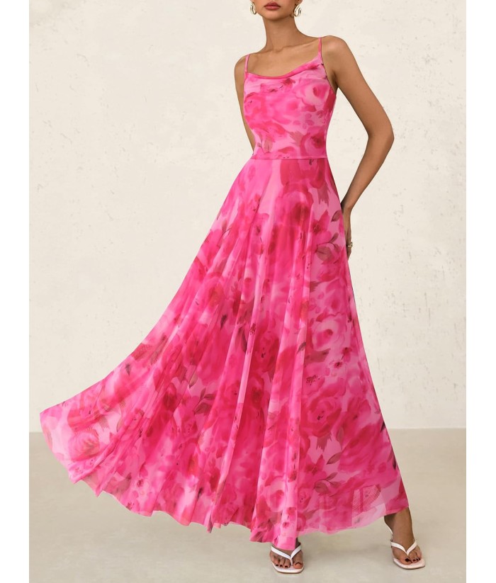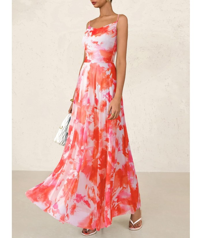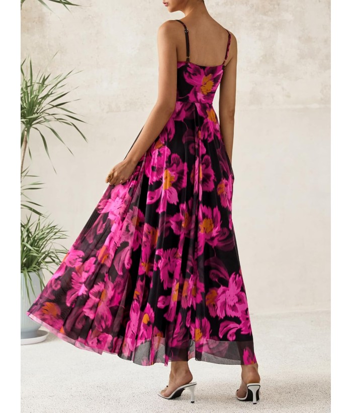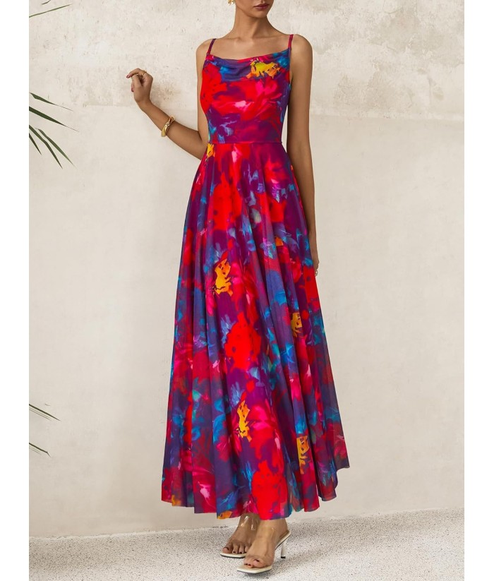 BTFBM Women Summer Floral Maxi Dresses Elegant Spaghetti Strap Dress Printed Party Dress Beach Long Dresses