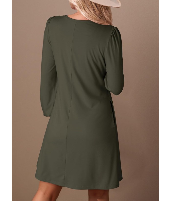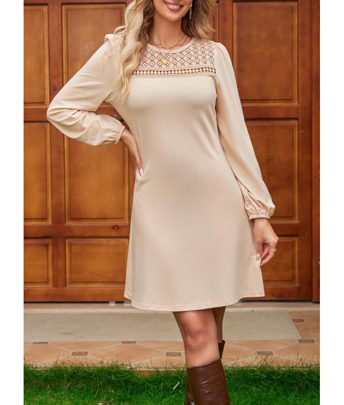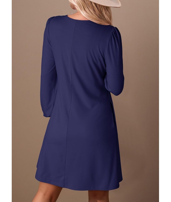 Dokotoo Fall Dresses for Women 2025 Crew Neck Long Sleeve A Line Shift Dress Solid Color Loose Fit Mini Dress