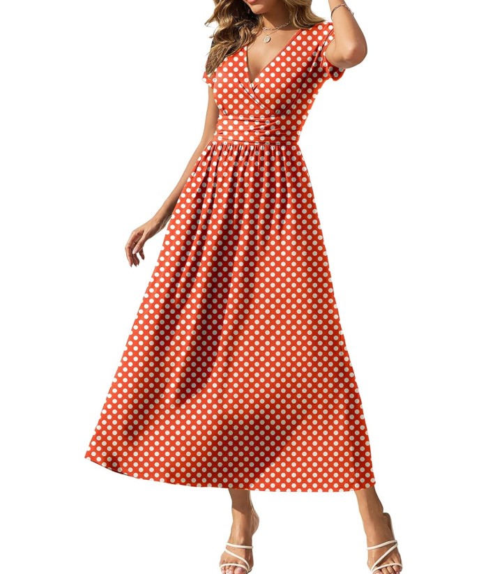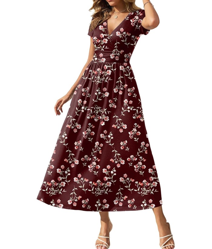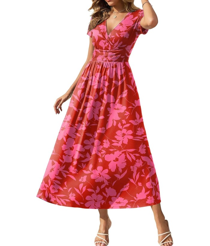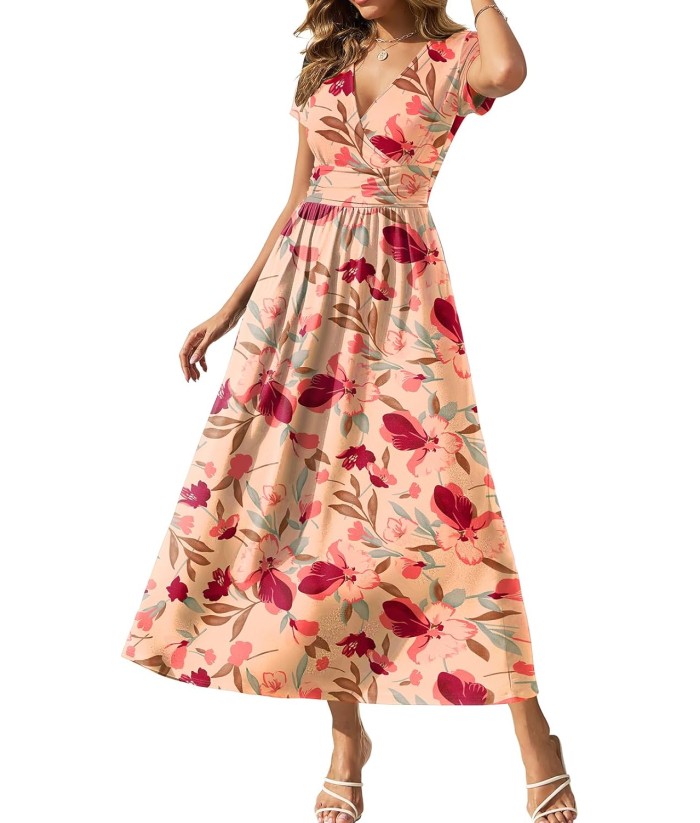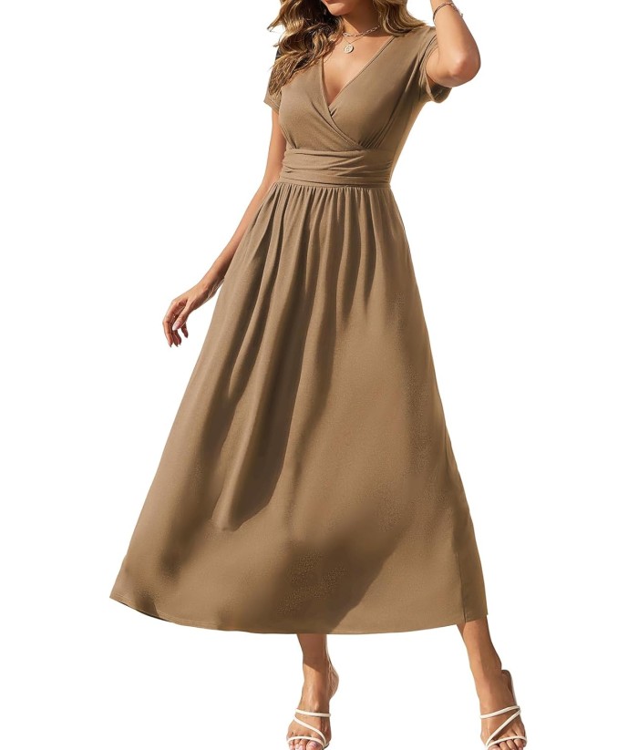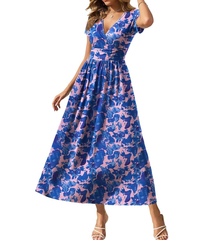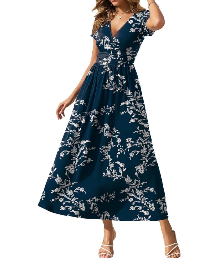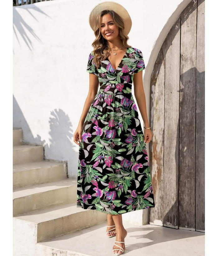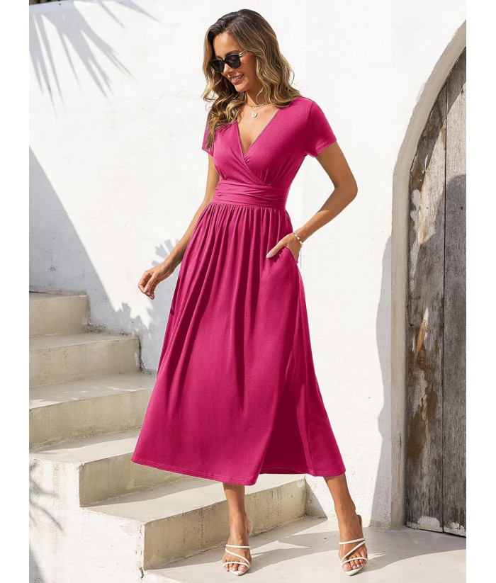 Gracyoga Women's Summer Dresses 2025 Short Sleeve Maxi Dress Casual V Neck Flowy Sundress with Pockets