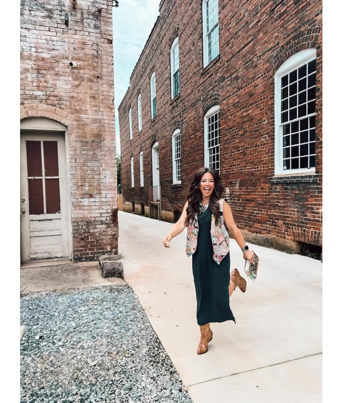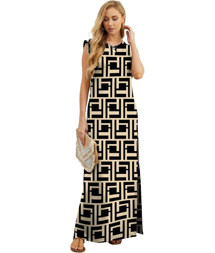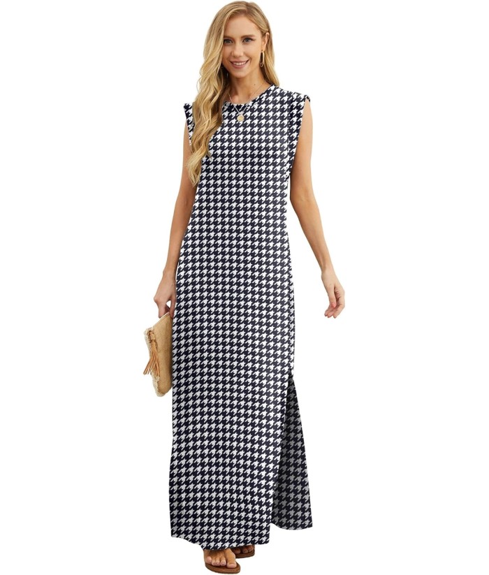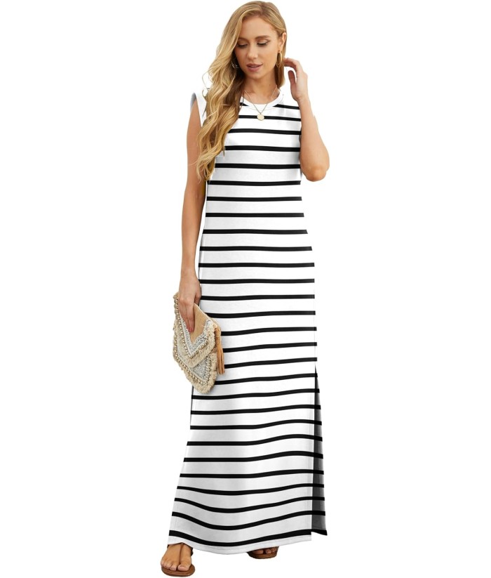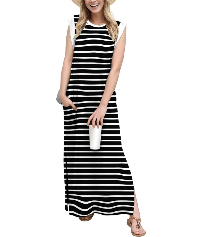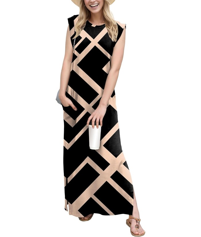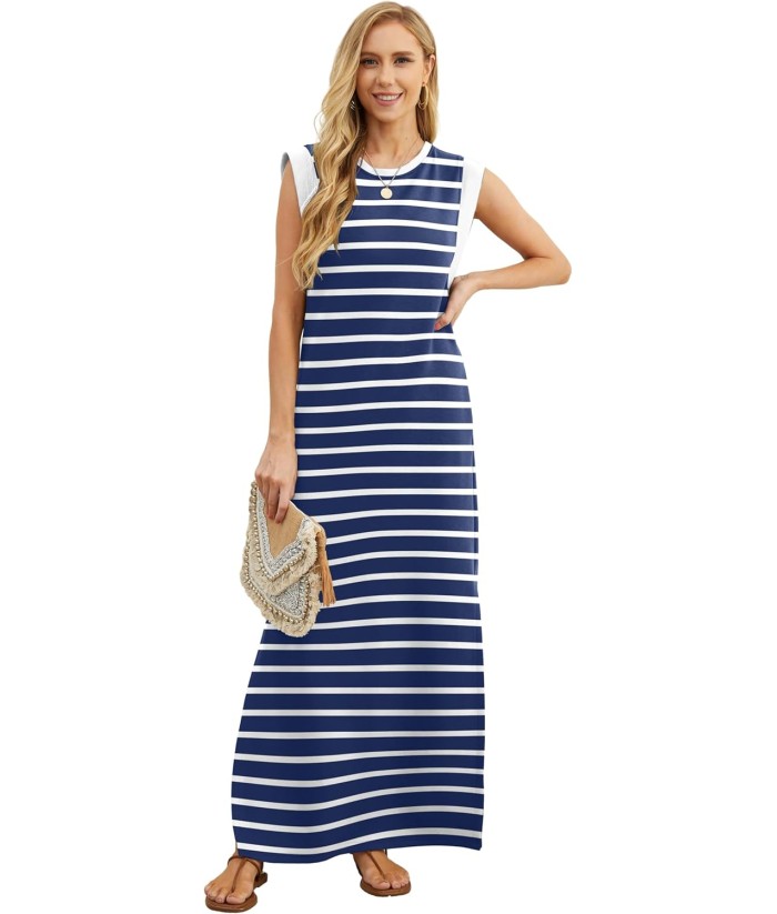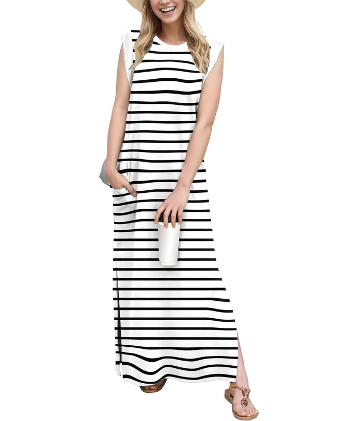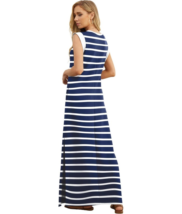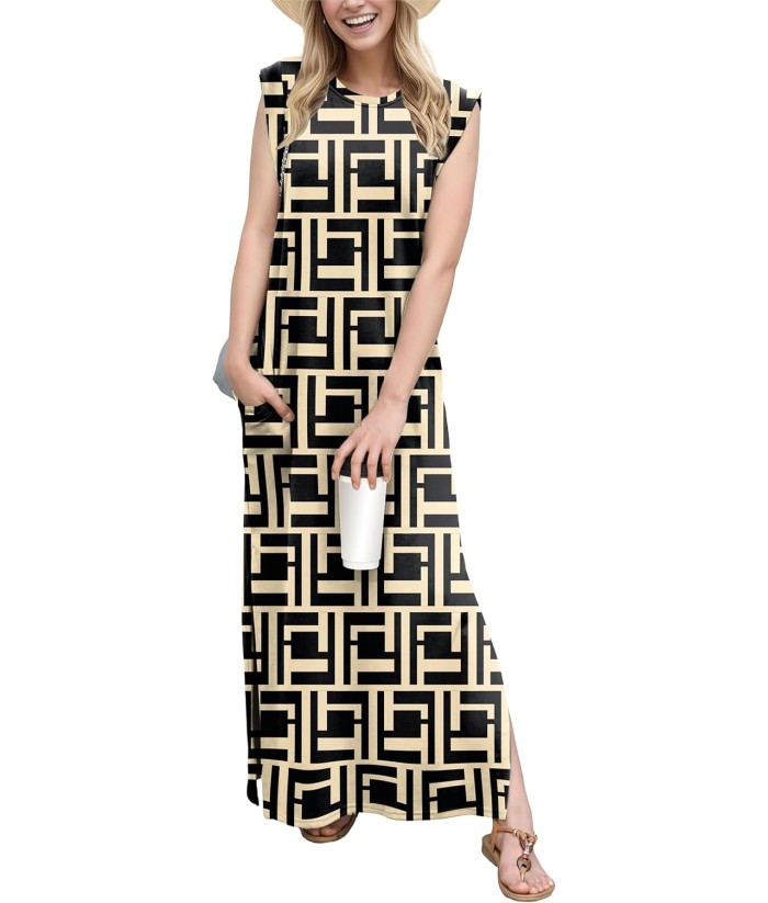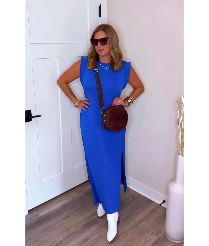 GRECERELLE 2025 Women Year-Round Casual Round Neck Loose Split Wrinkle-Free Long Maxi Vacation Dress with Pockets (XS-3XL)