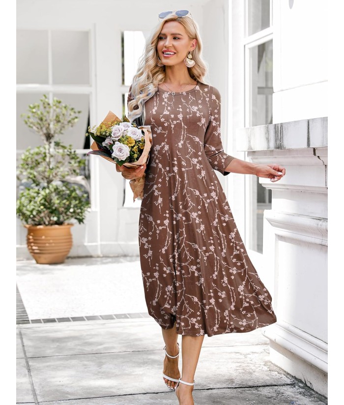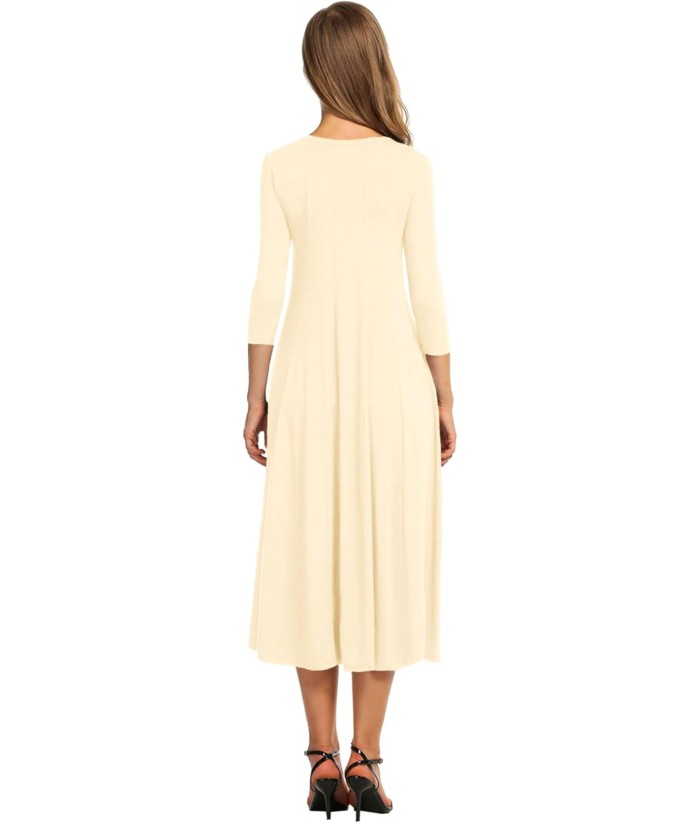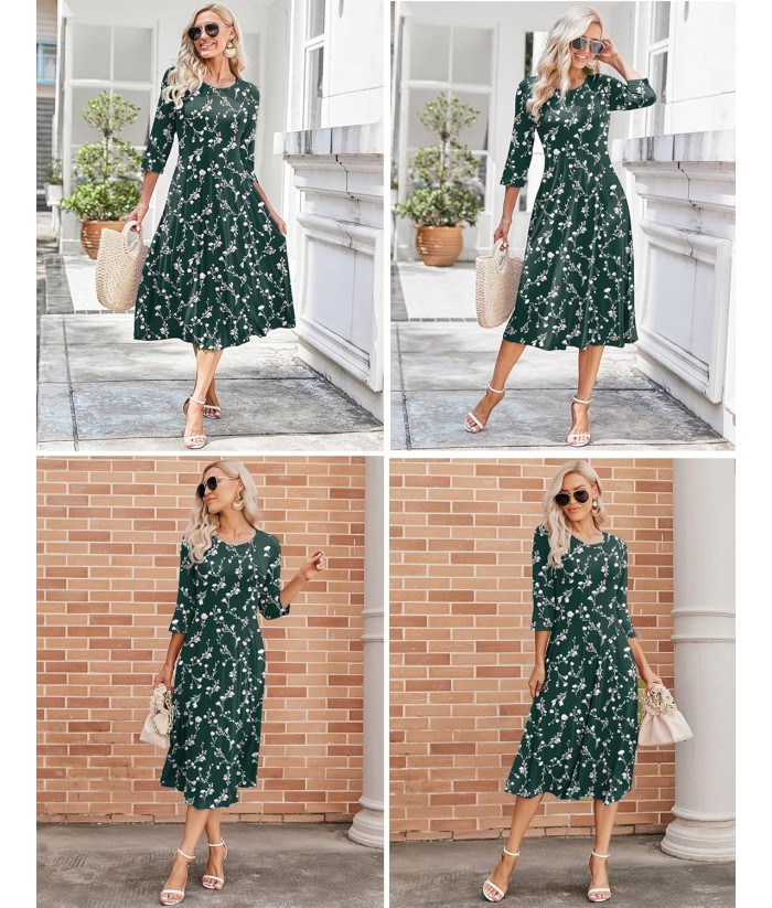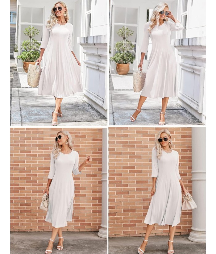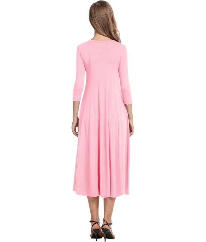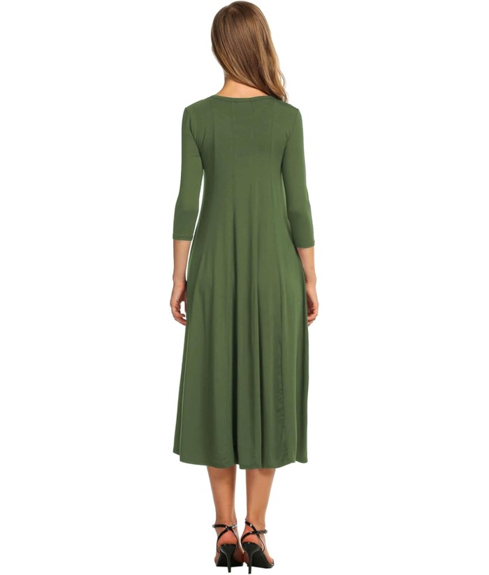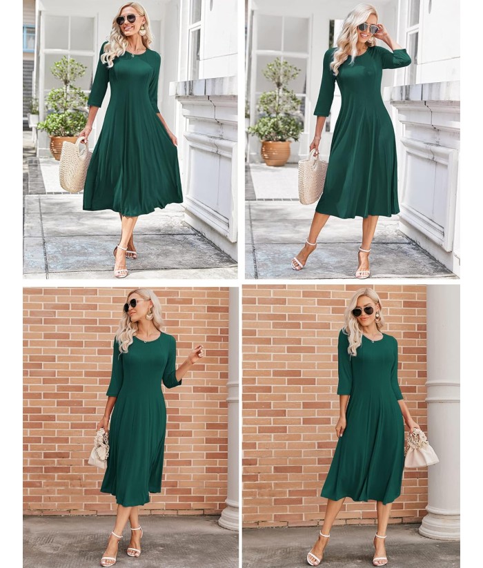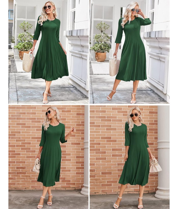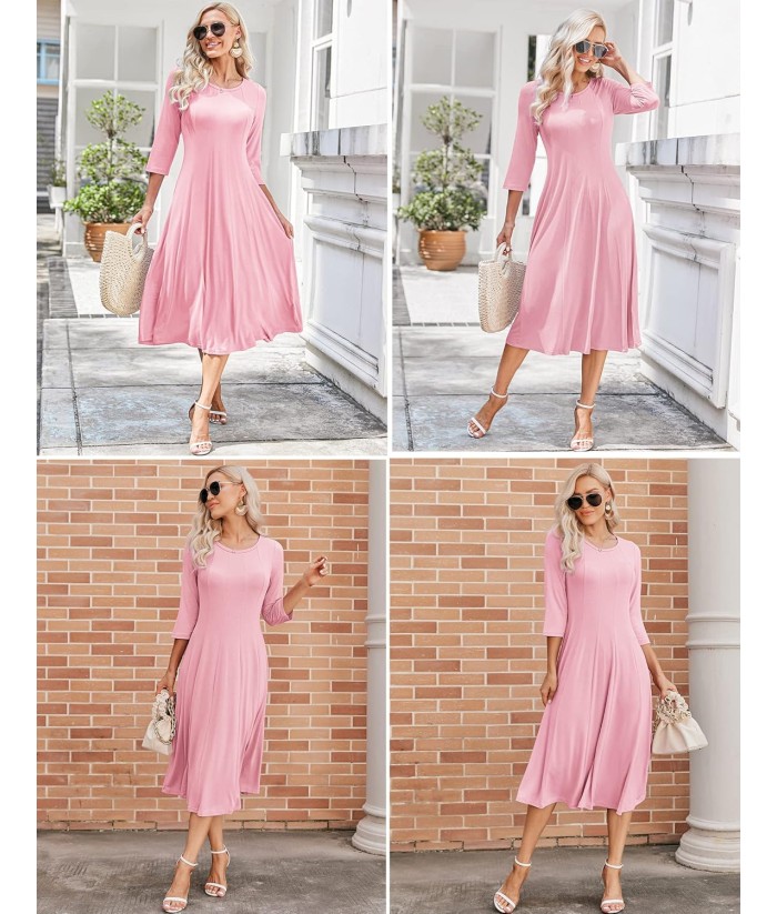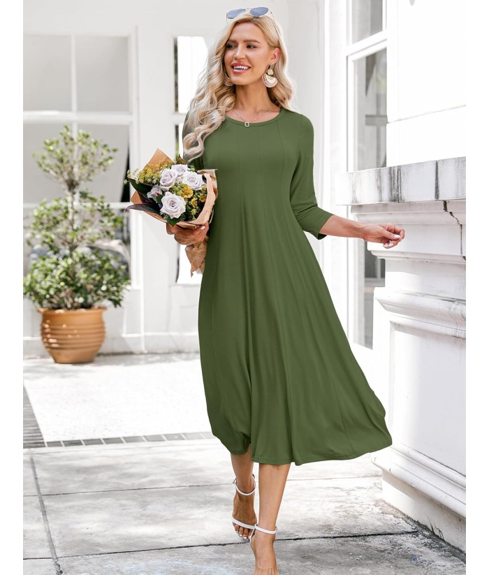 HOTOUCH Women's 3/4 Sleeve A-line and Flare Midi Long Dress
