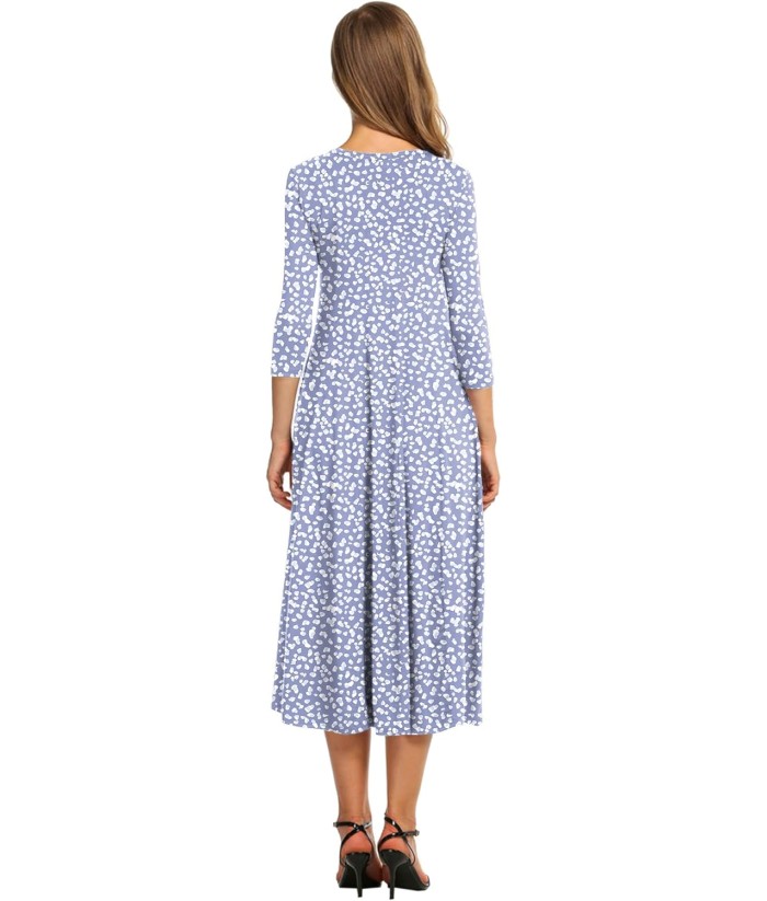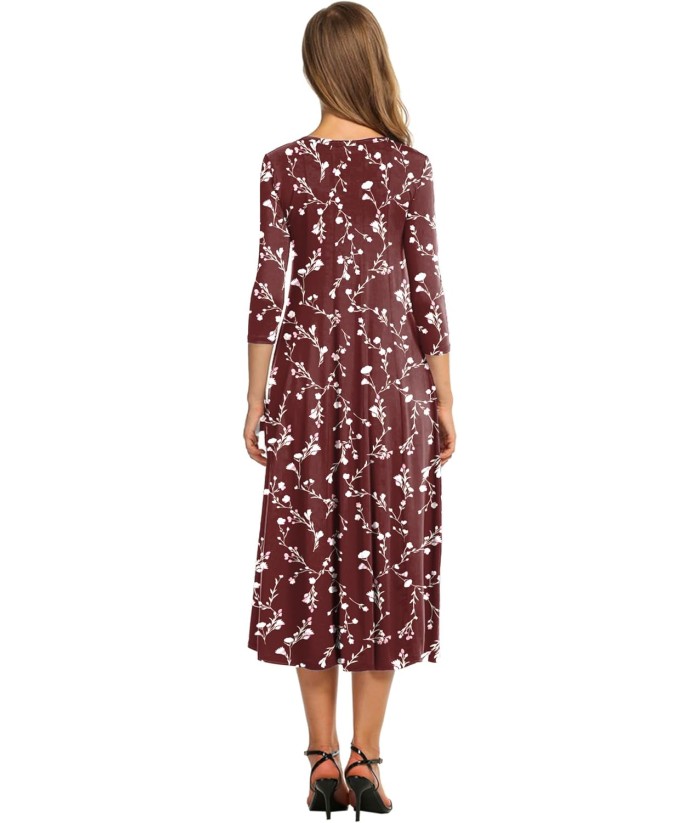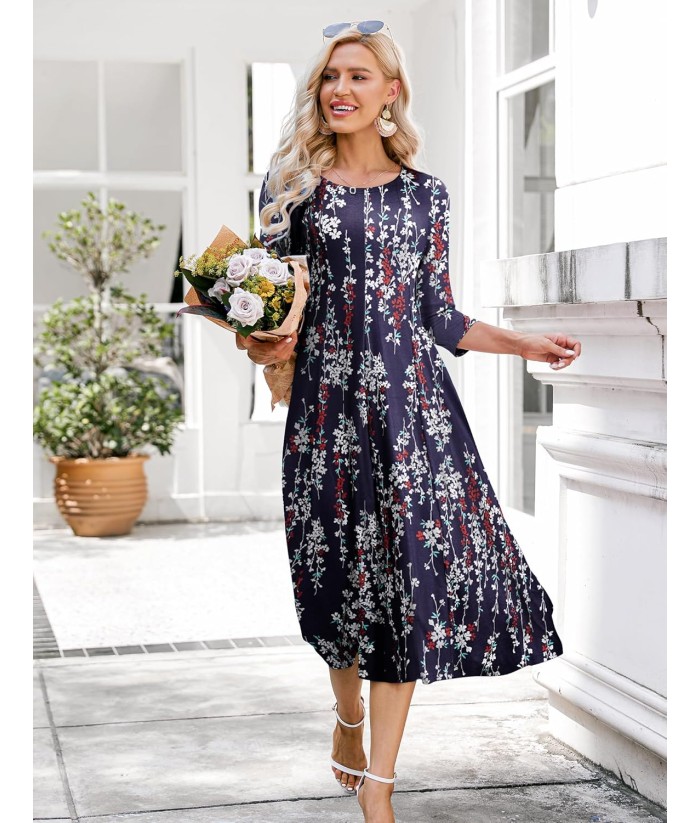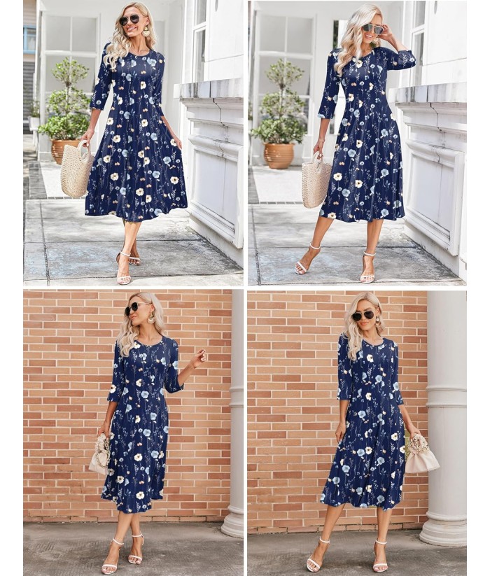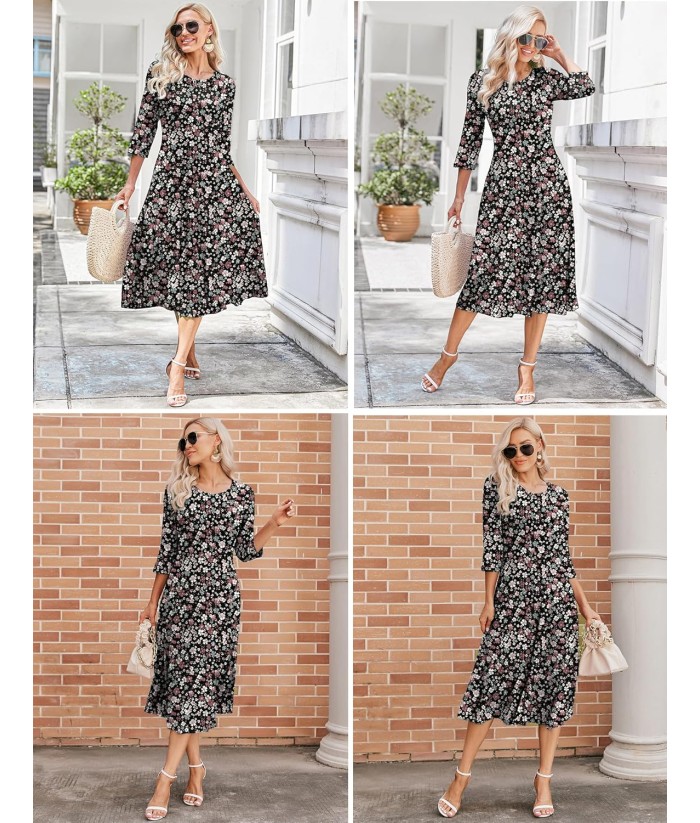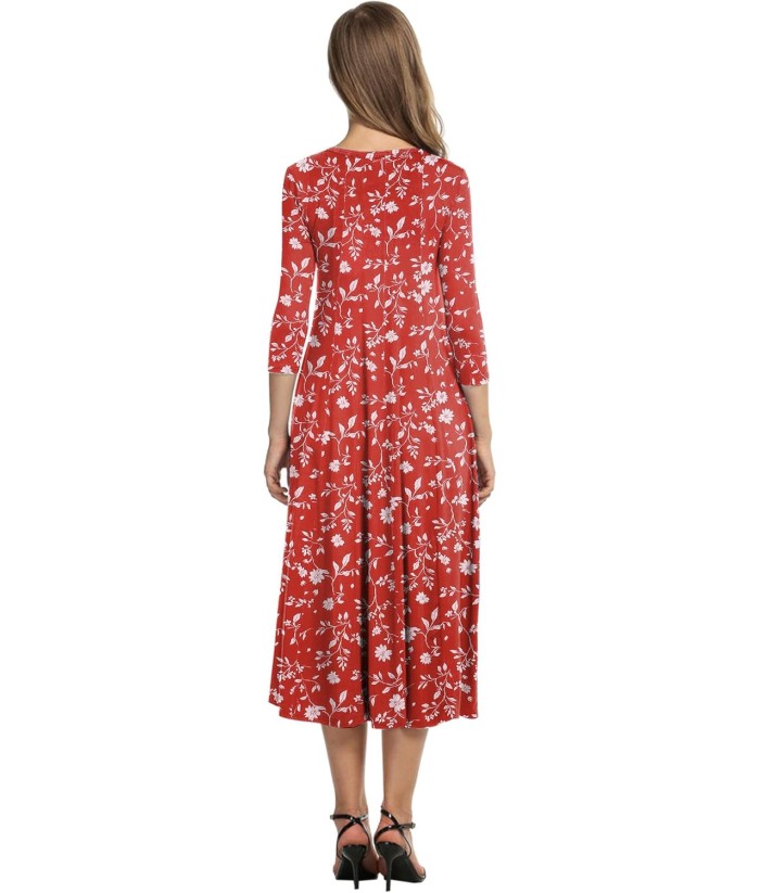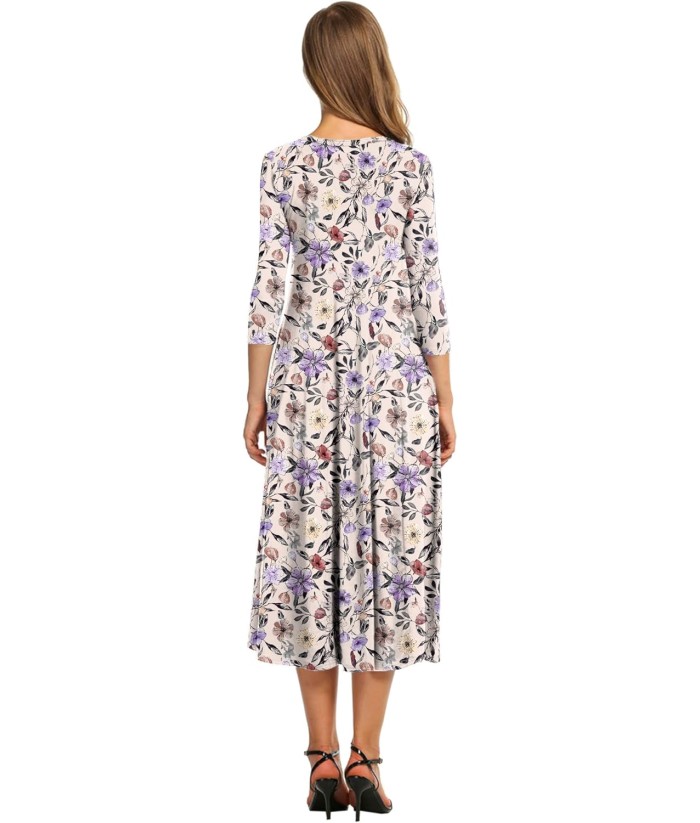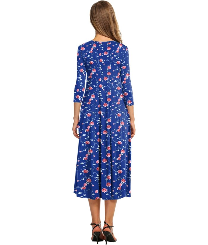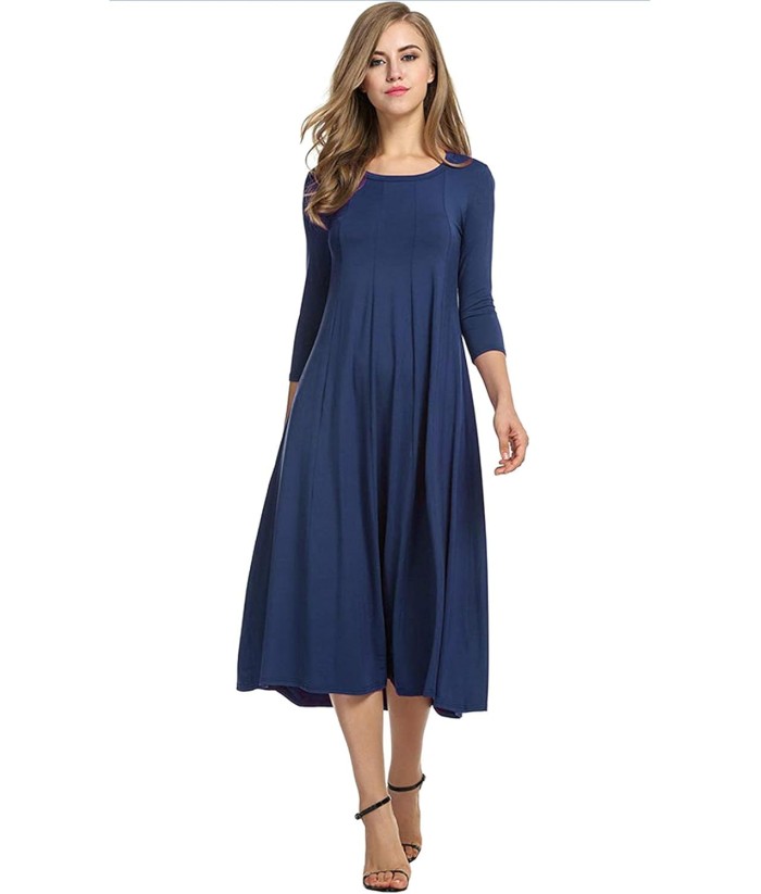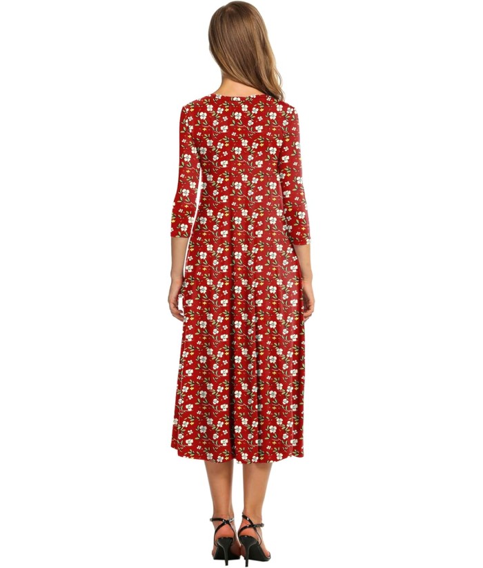 HOTOUCH Women's 3/4 Sleeve A-line and Flare Midi Long Dress