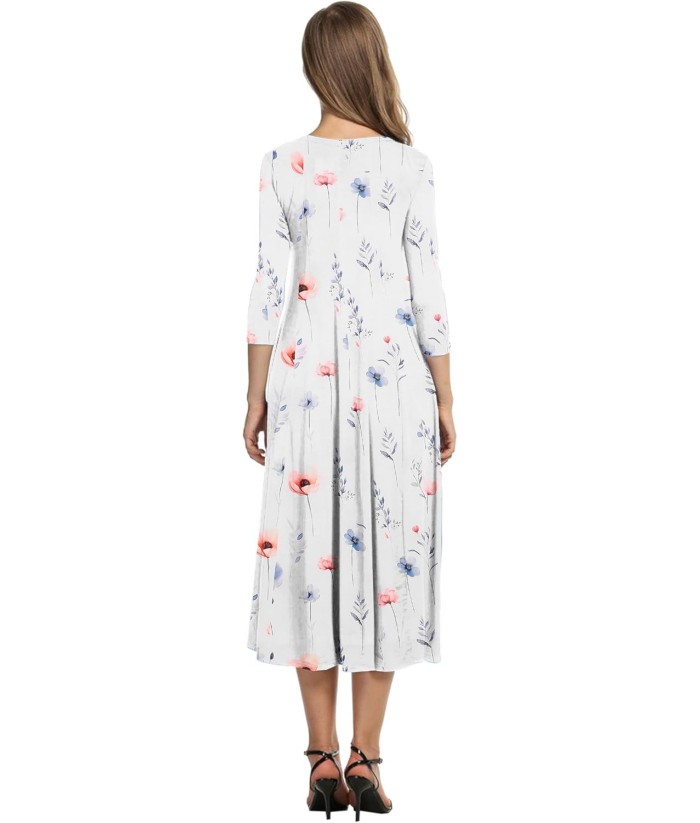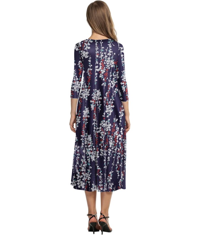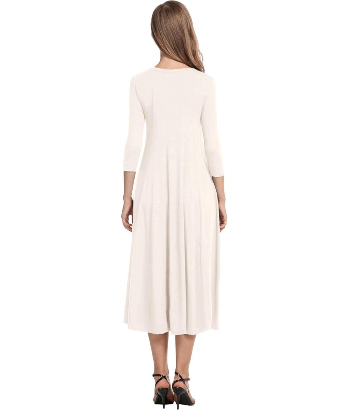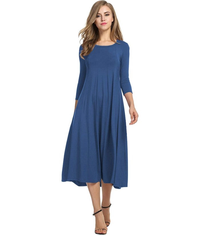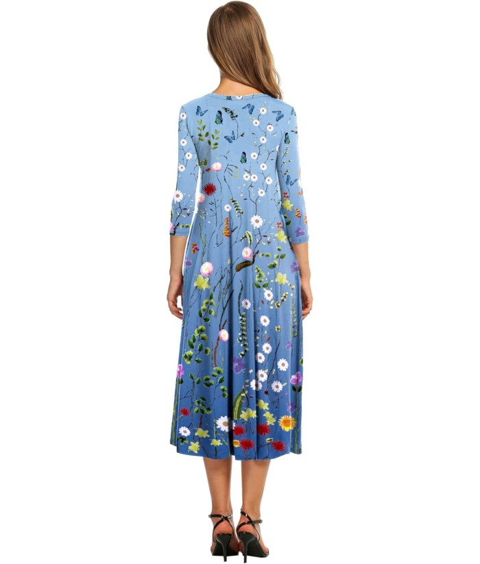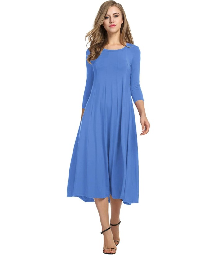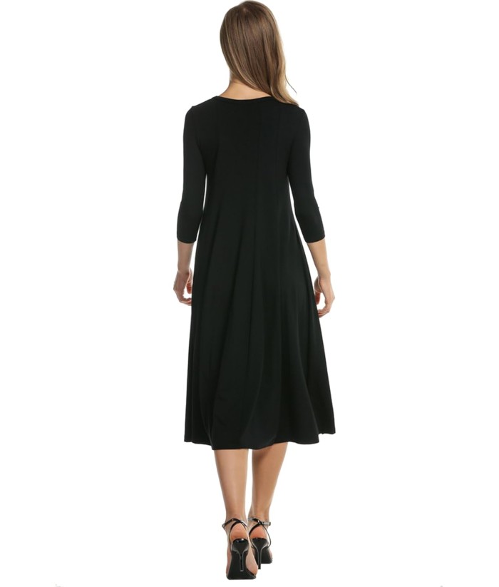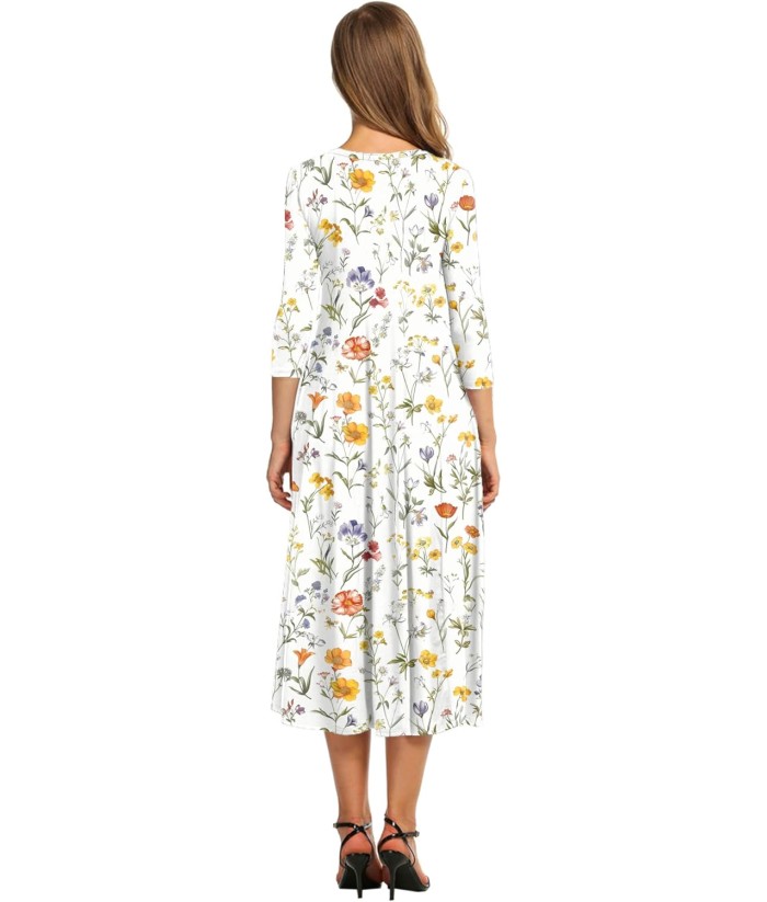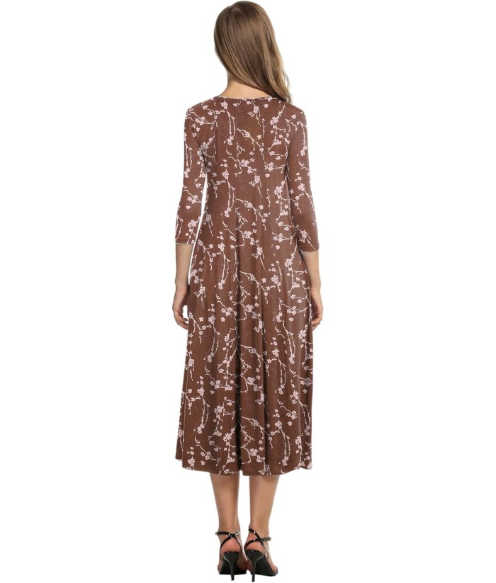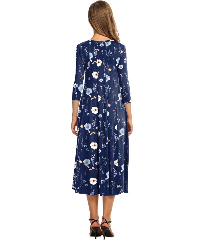 HOTOUCH Women's 3/4 Sleeve A-line and Flare Midi Long Dress