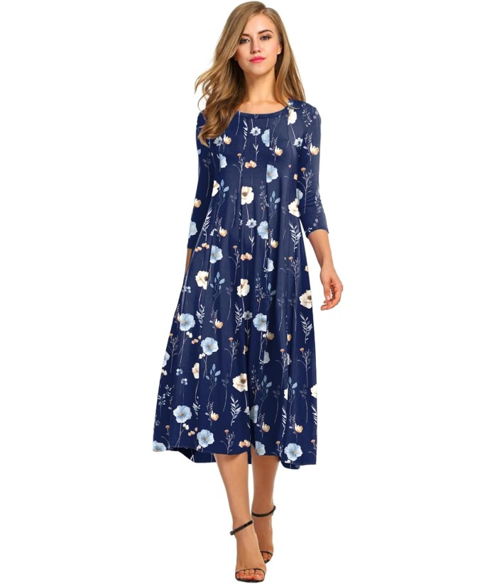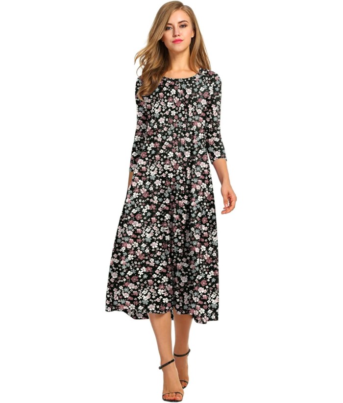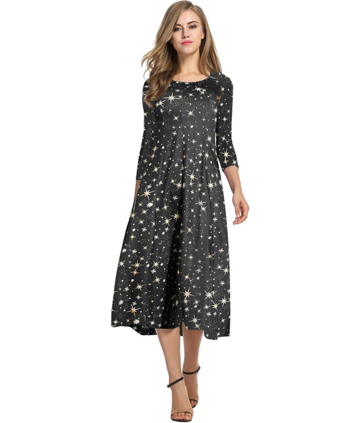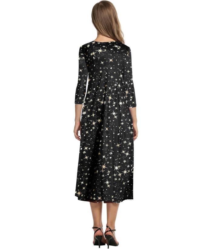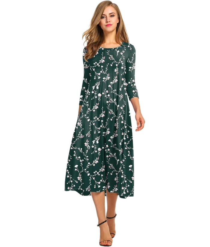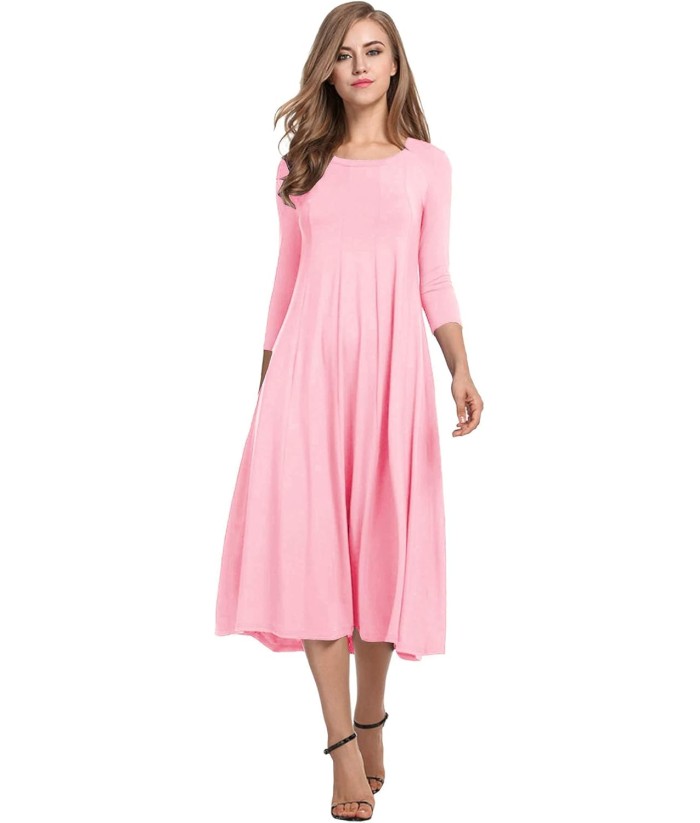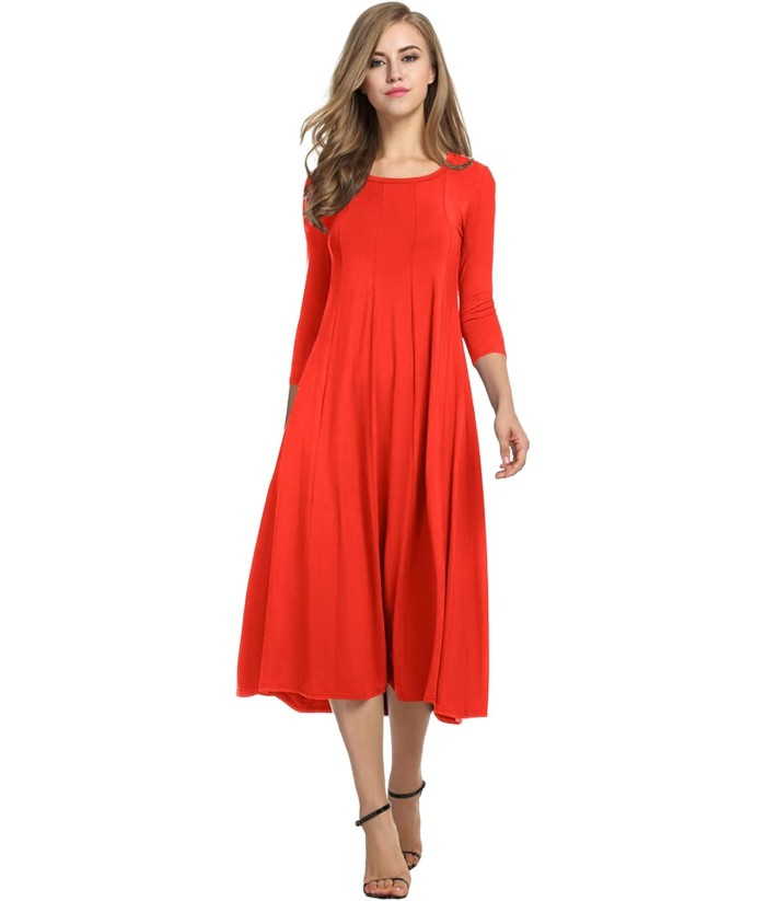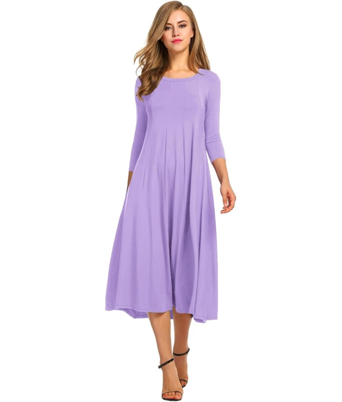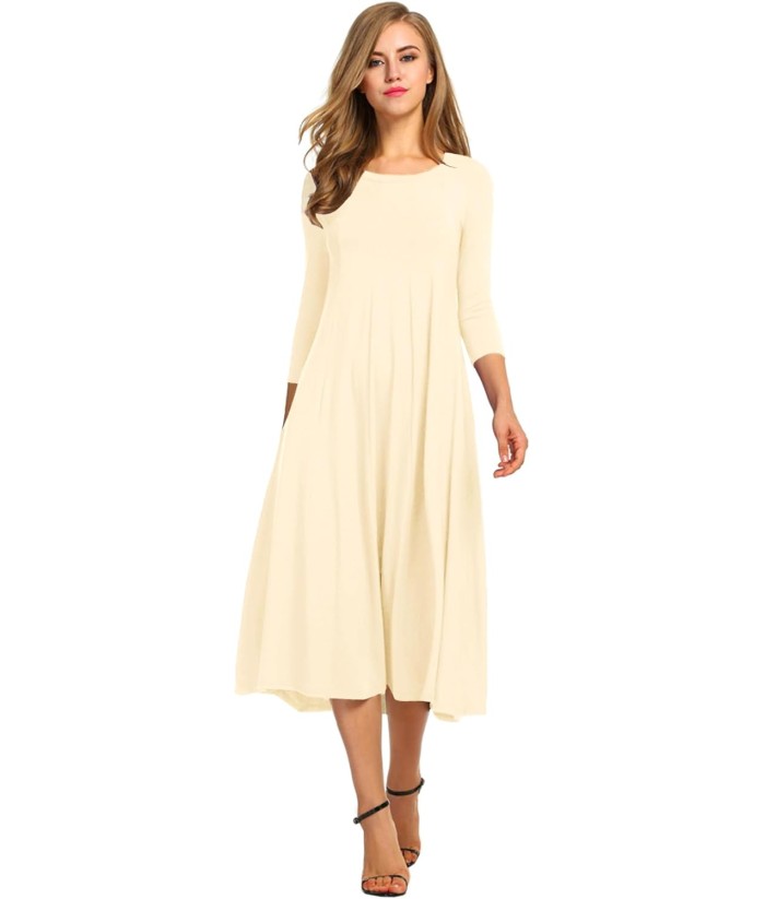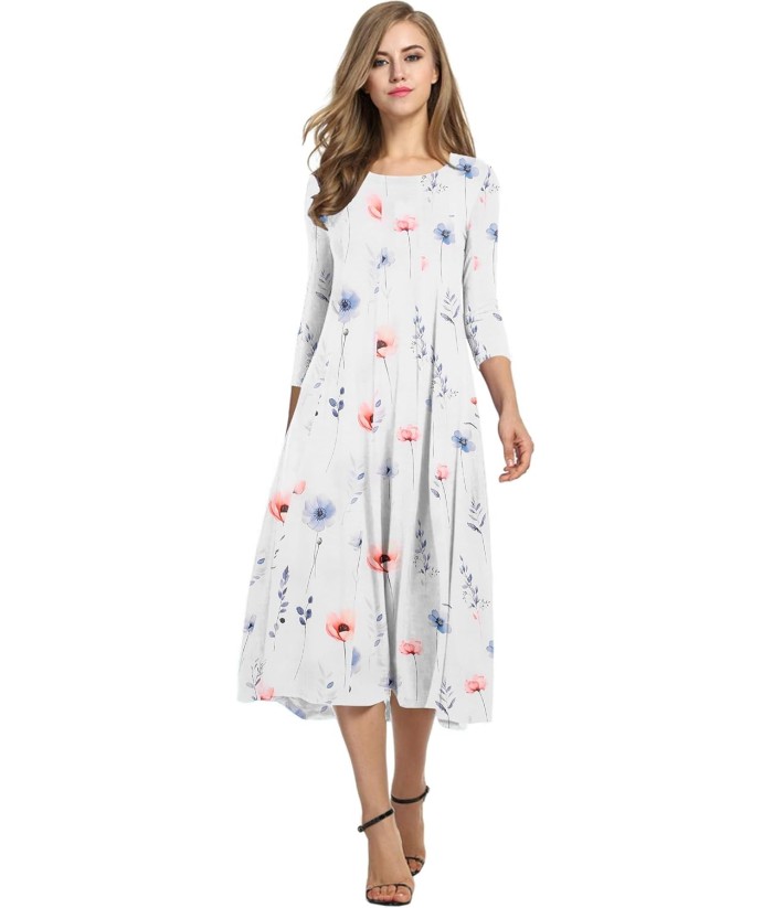 HOTOUCH Women's 3/4 Sleeve A-line and Flare Midi Long Dress