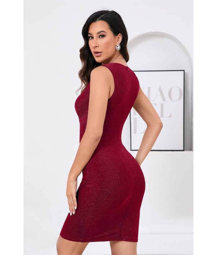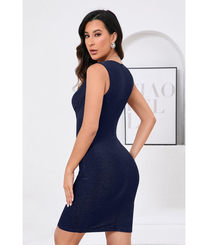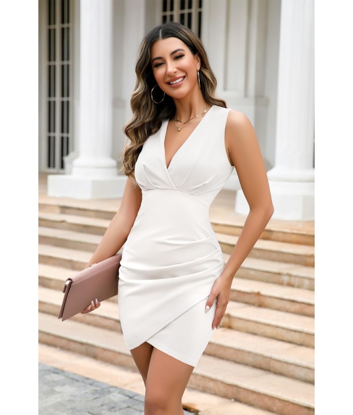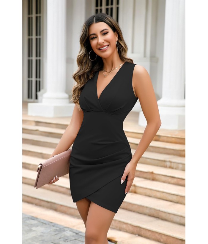 IHOT Women's Sexy V Neck Sleeveless Faux Wrap Ruched Bodycon Casual Party Club Cocktail Dress