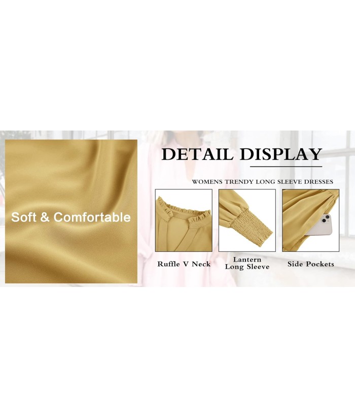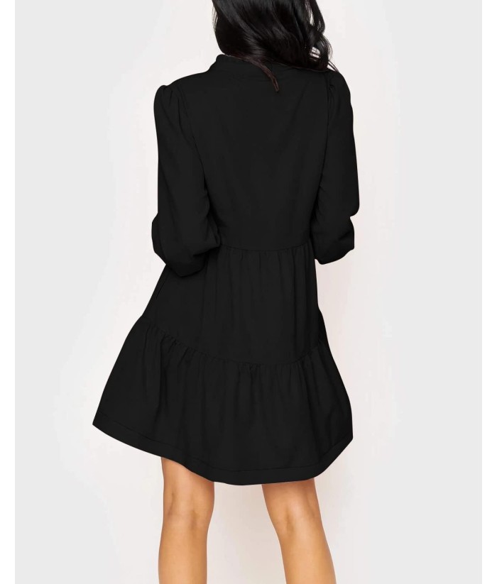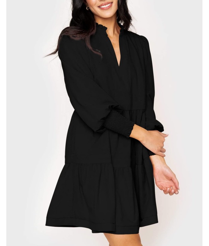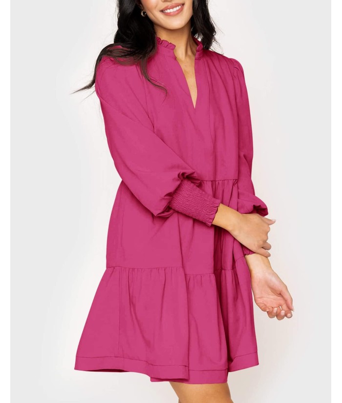 Imily Bela Womens Fall Long Sleeve Tunic Dress Casual V Neck Loose Ruffle Tiered Dress