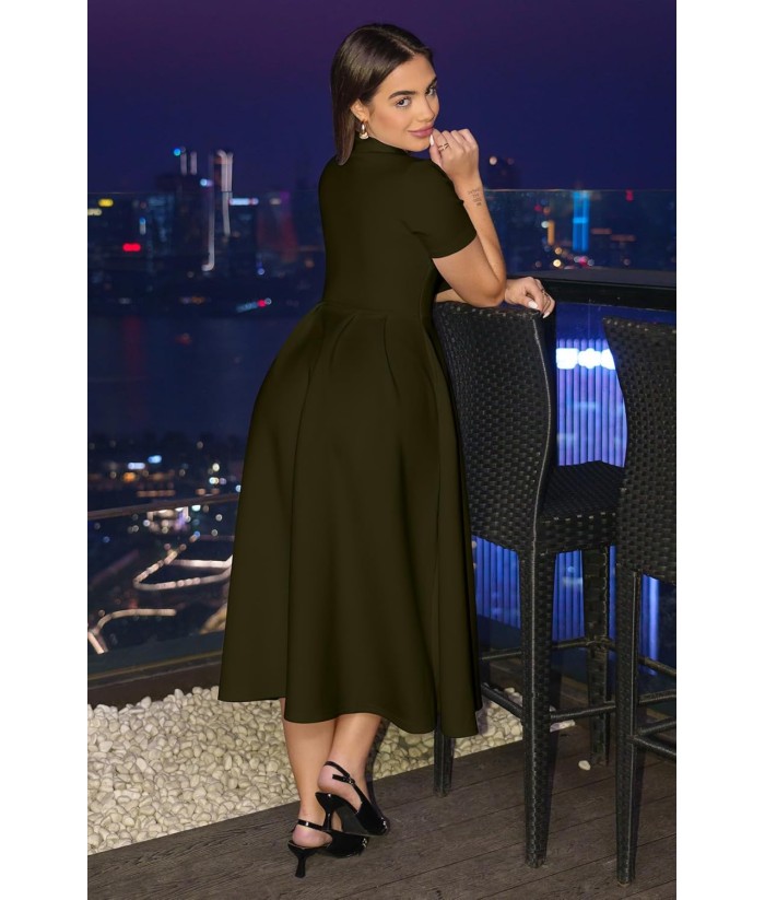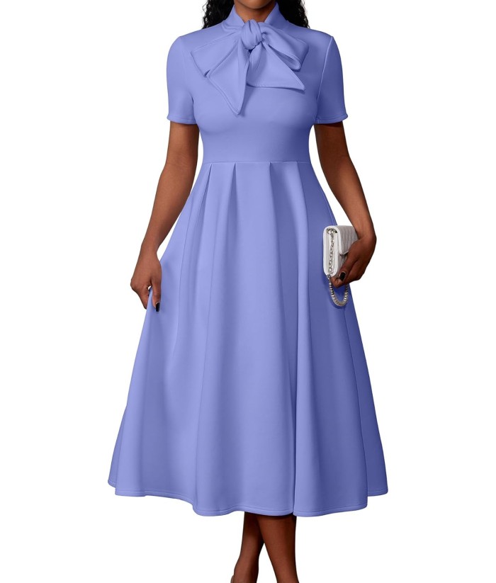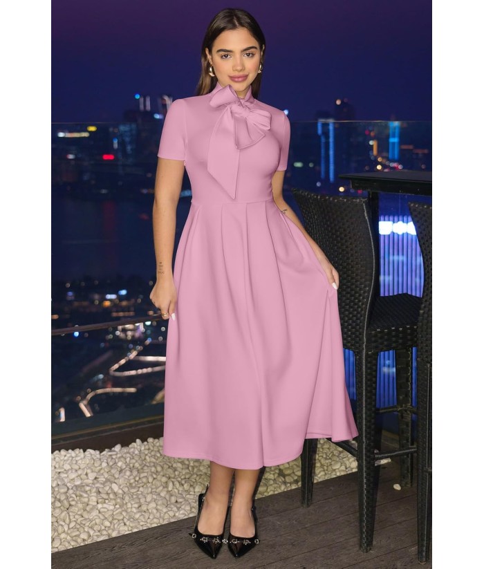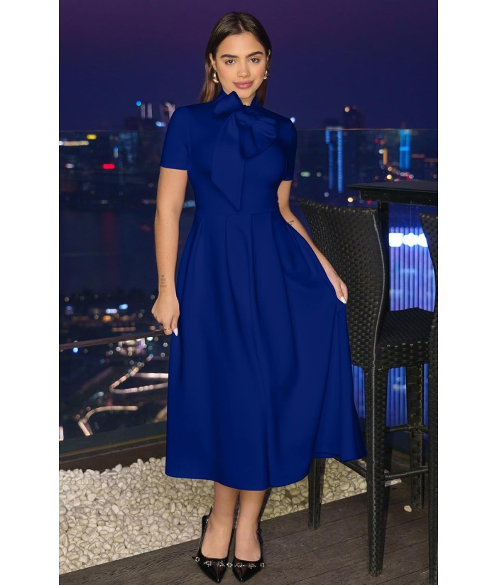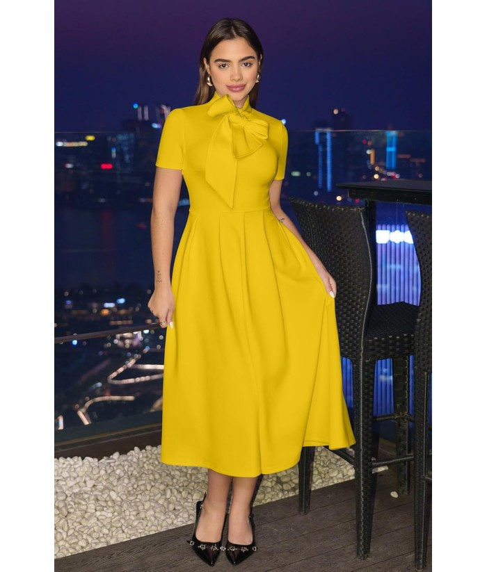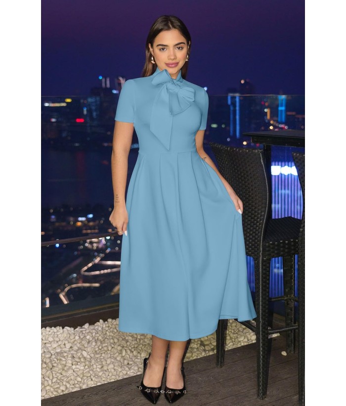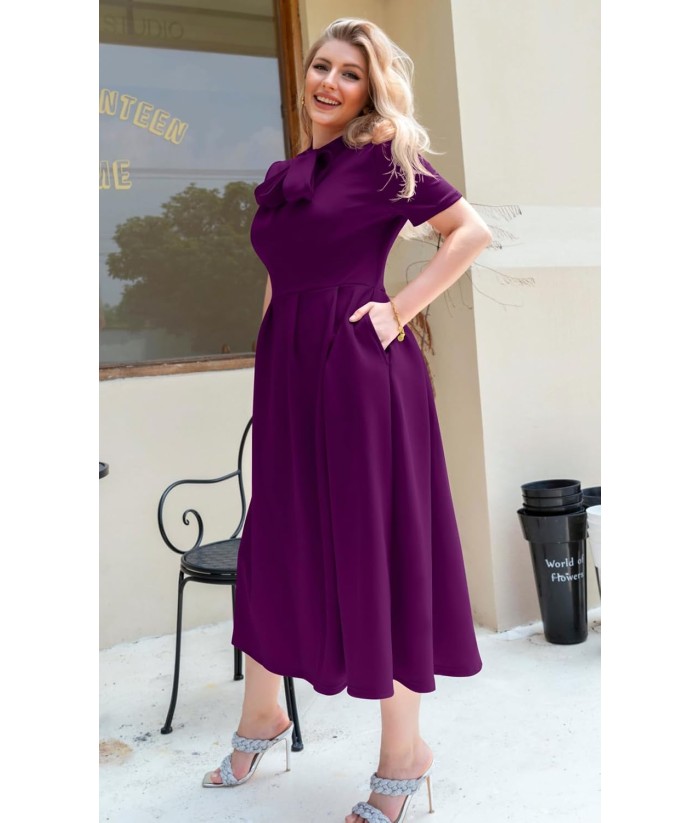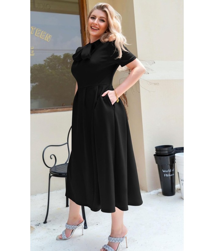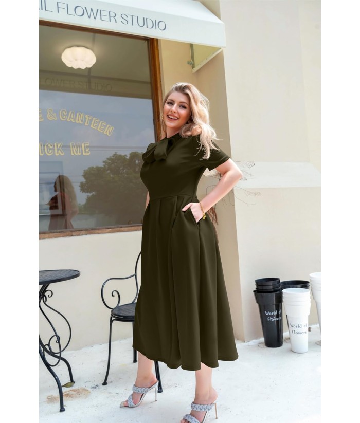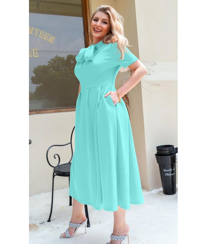 Memoriesea Women's Elegant Casual Short Sleeve Work Party A-Line Dress with Pockets