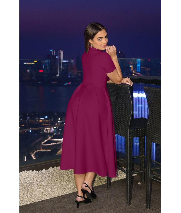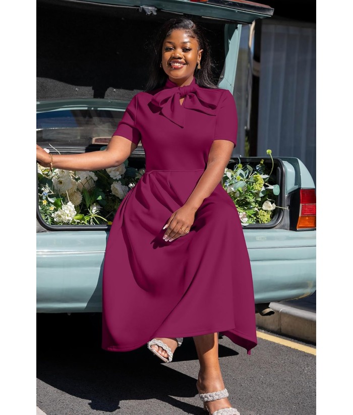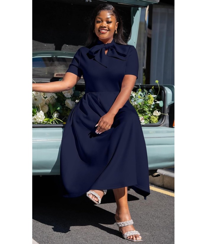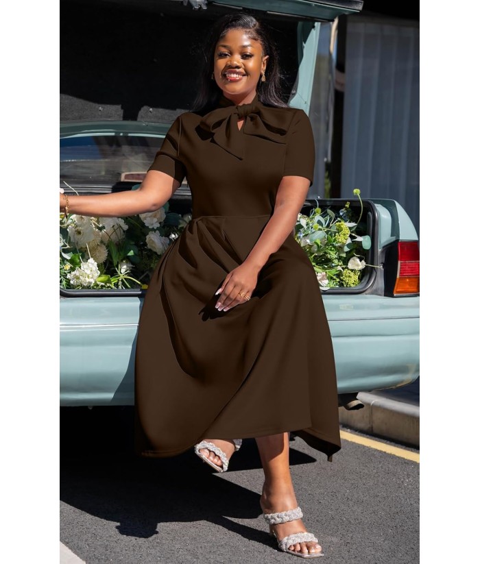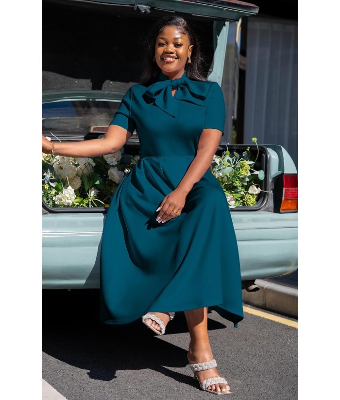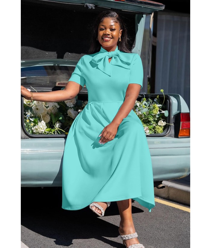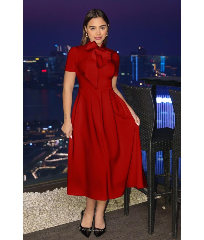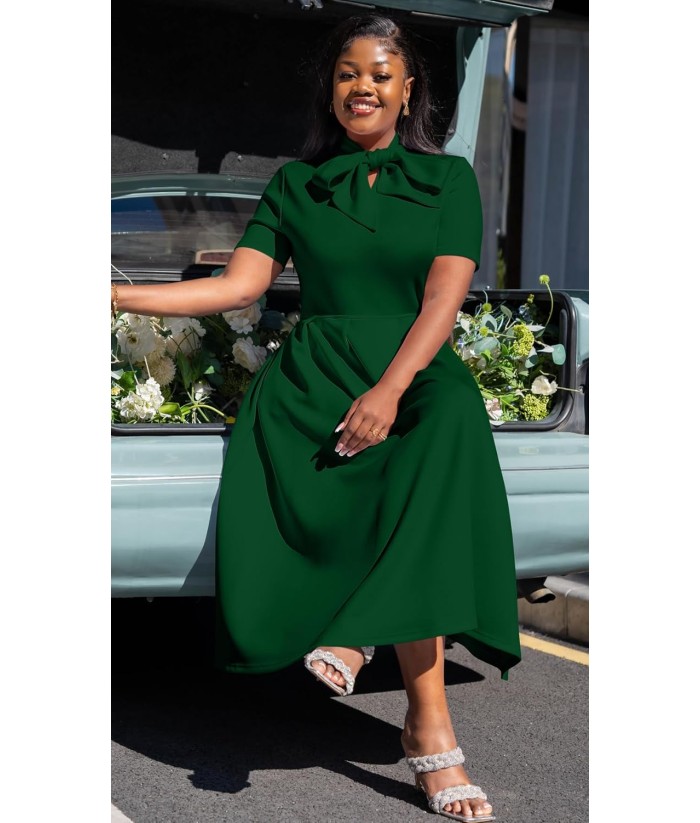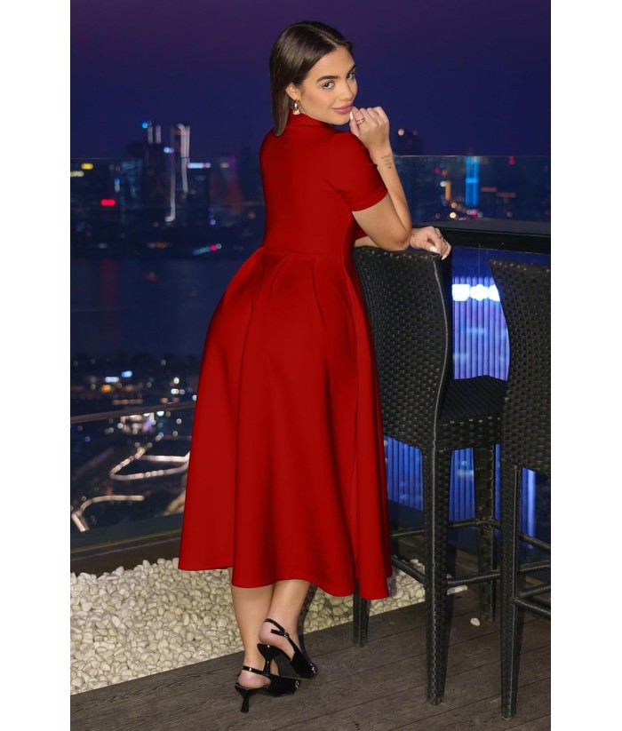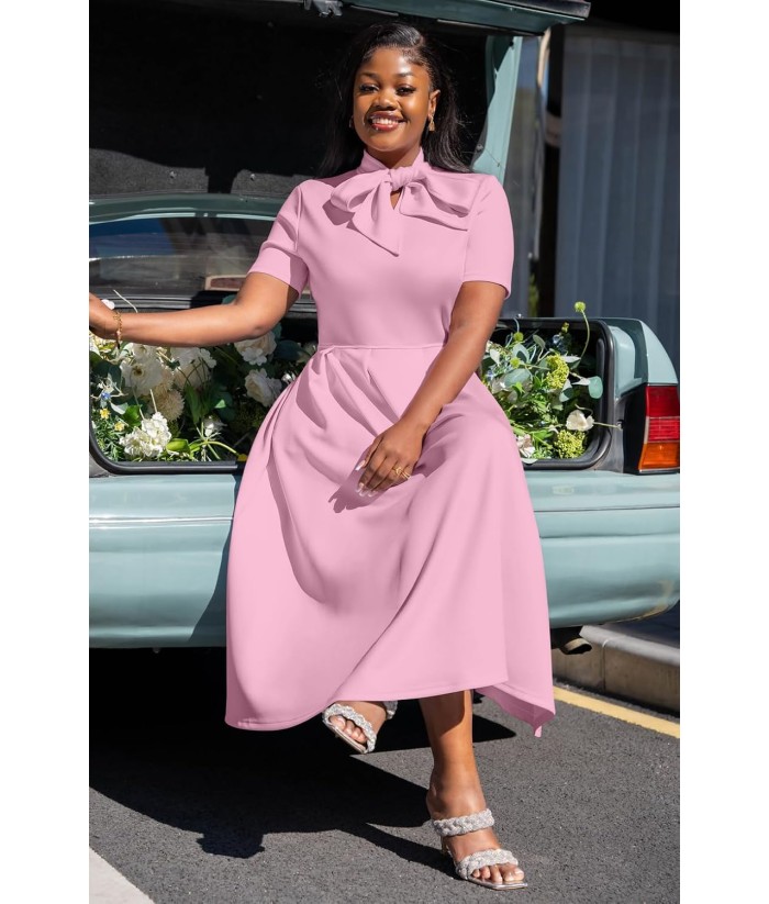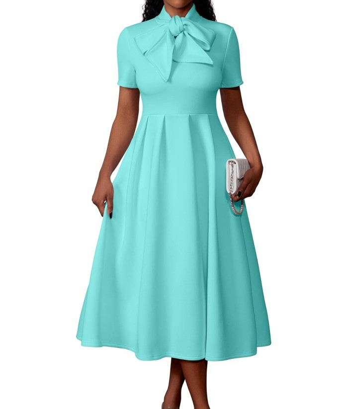 Memoriesea Women's Elegant Casual Short Sleeve Work Party A-Line Dress with Pockets