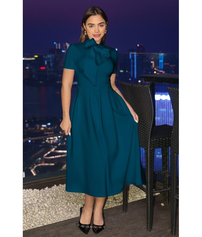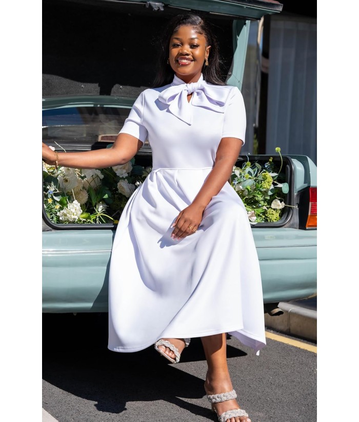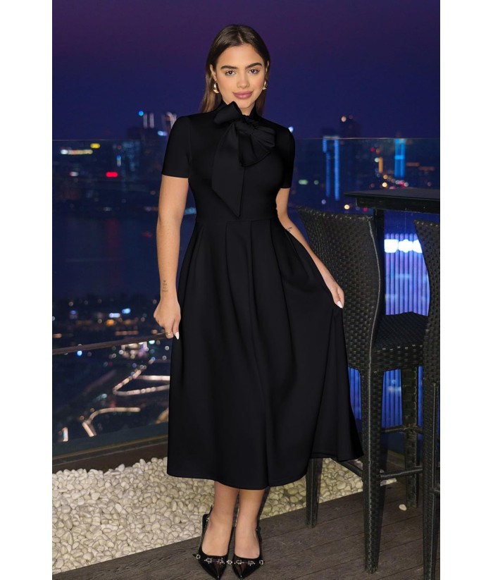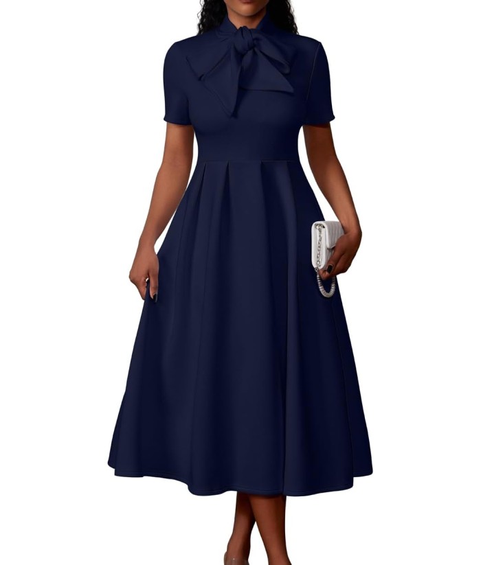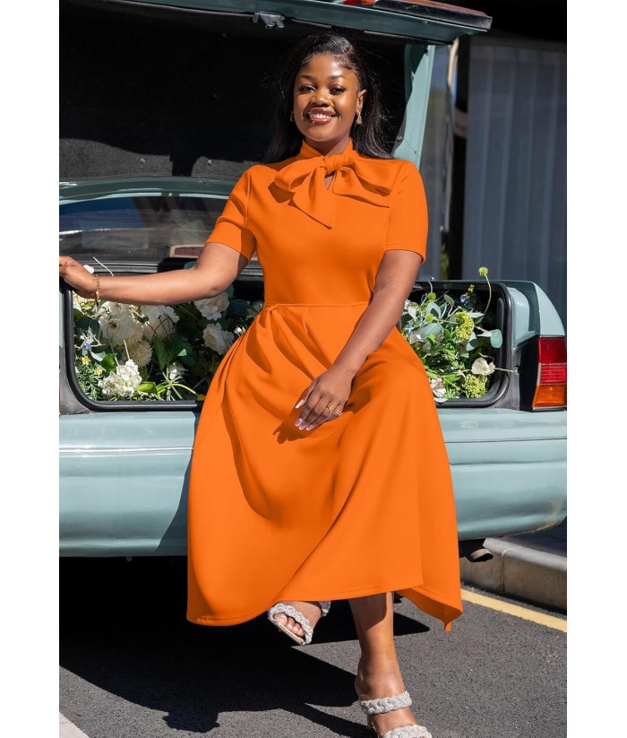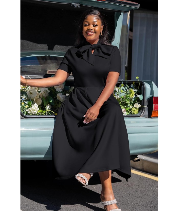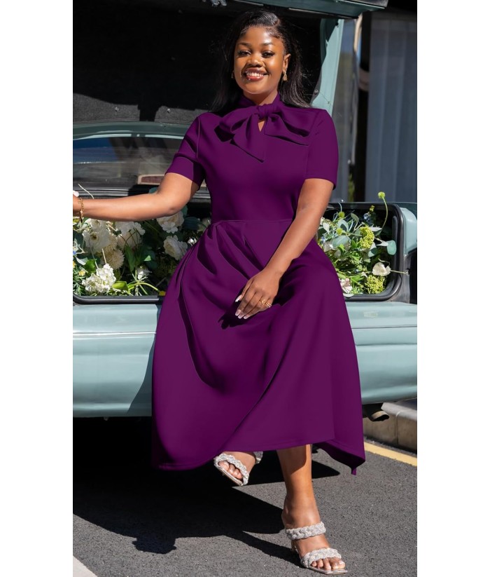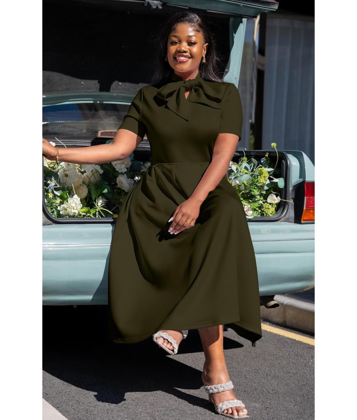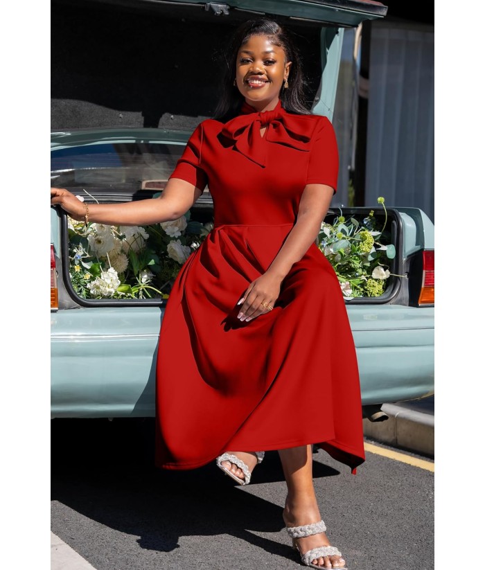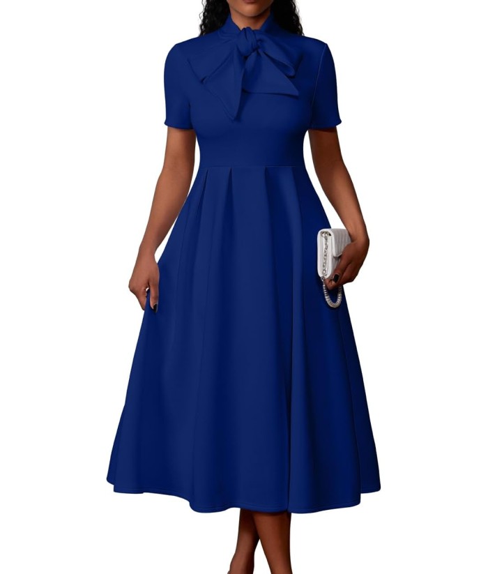 Memoriesea Women's Elegant Casual Short Sleeve Work Party A-Line Dress with Pockets