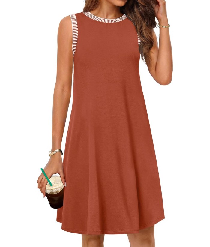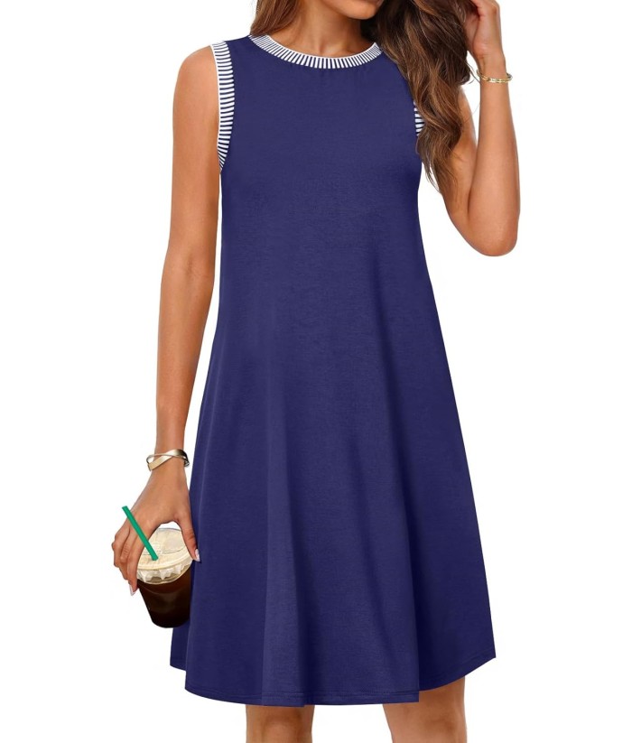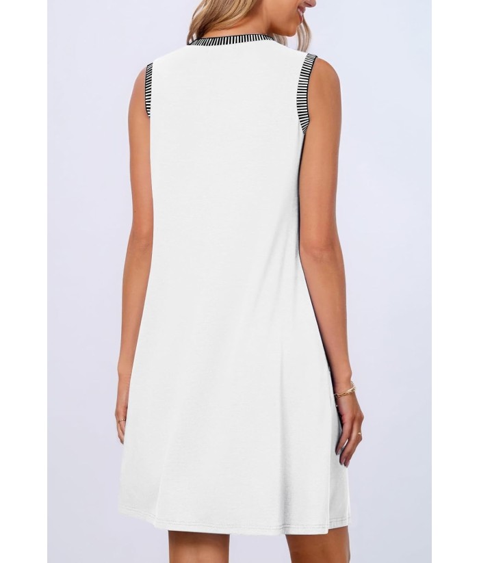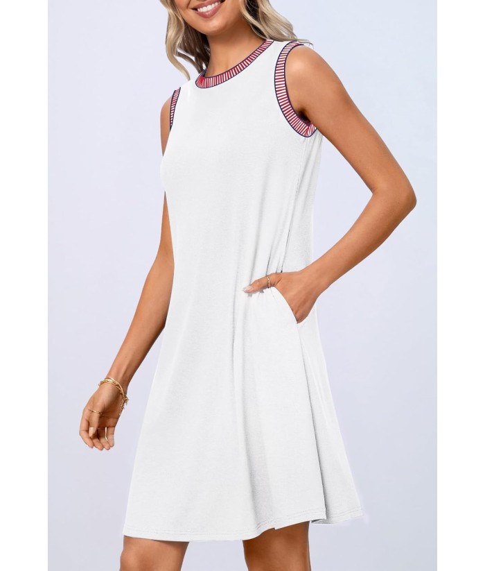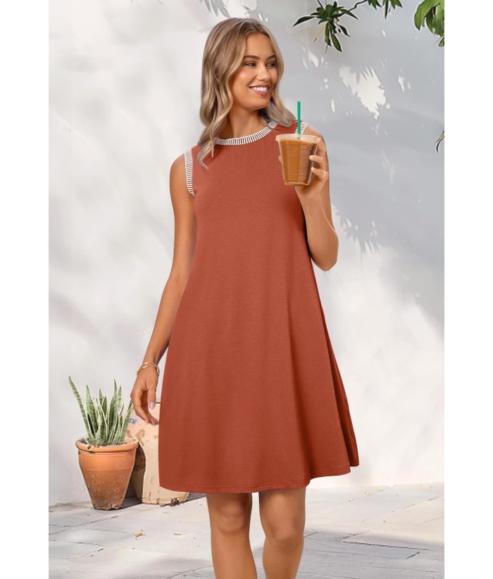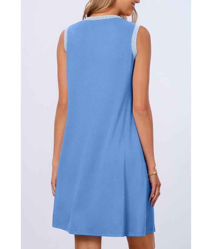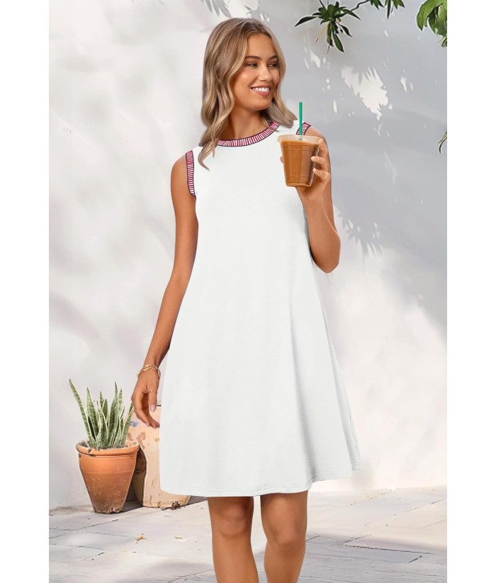 MEROKEETY Women's 2025 Summer Casual Sundress Beach Vacation Sleeveless Tank Crewneck Coverup Mini Dresses