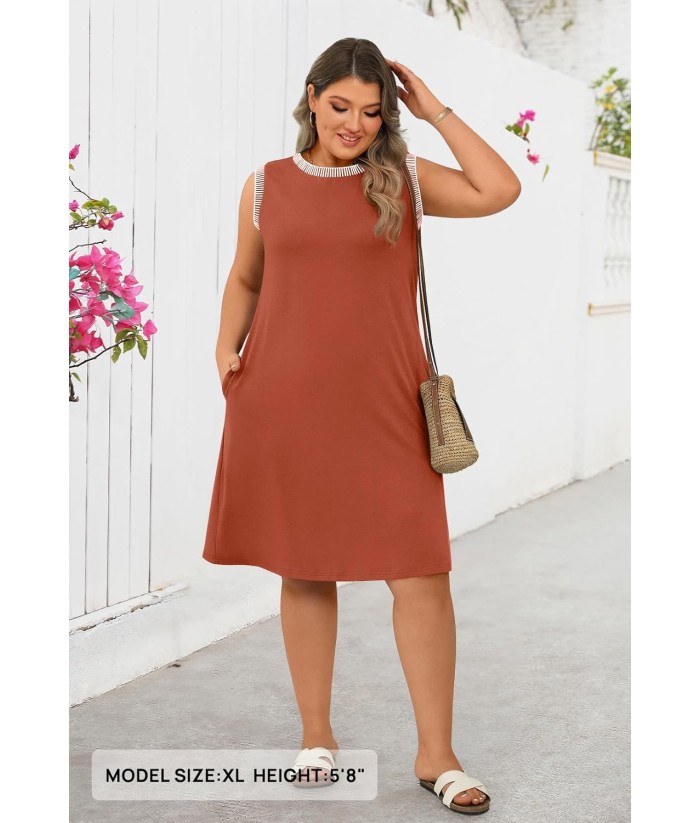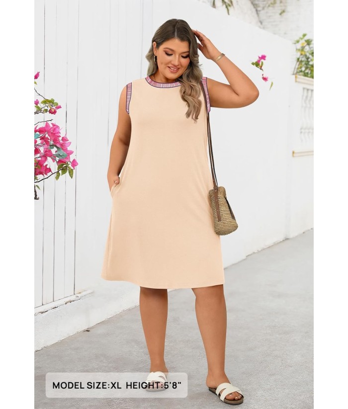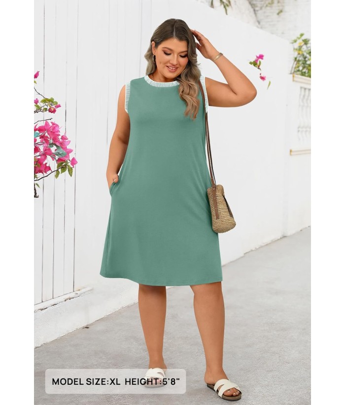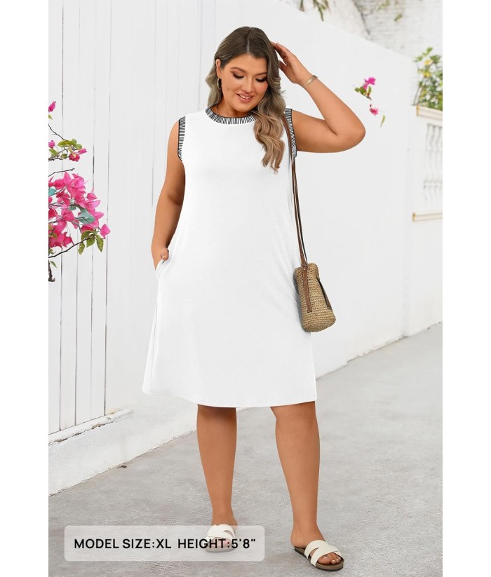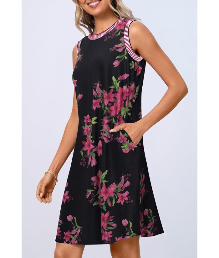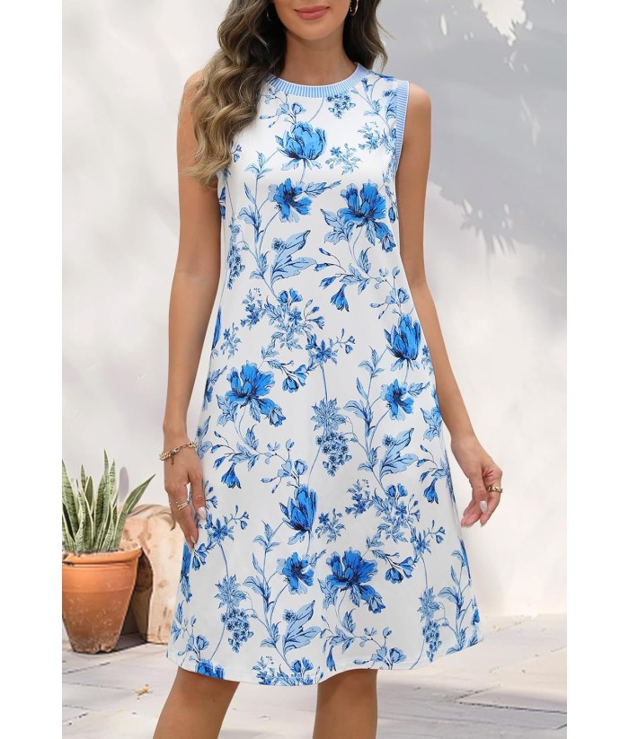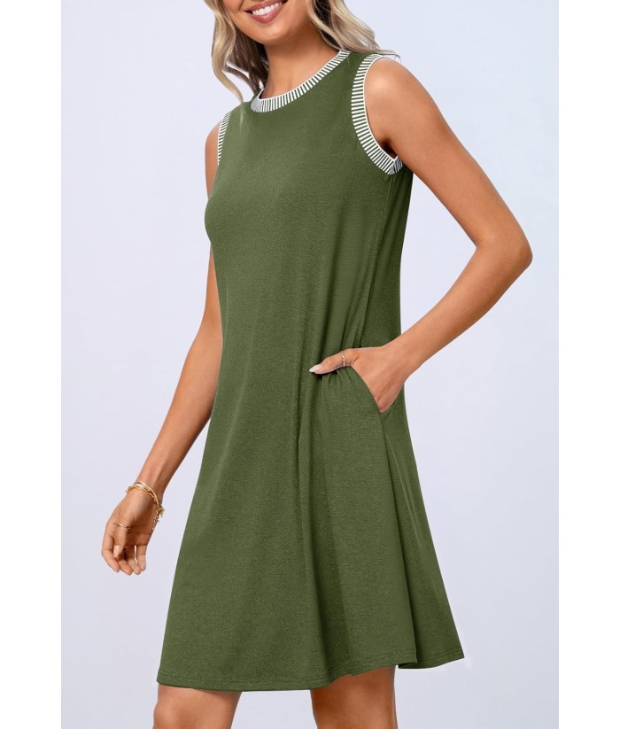 MEROKEETY Women's 2025 Summer Casual Sundress Beach Vacation Sleeveless Tank Crewneck Coverup Mini Dresses