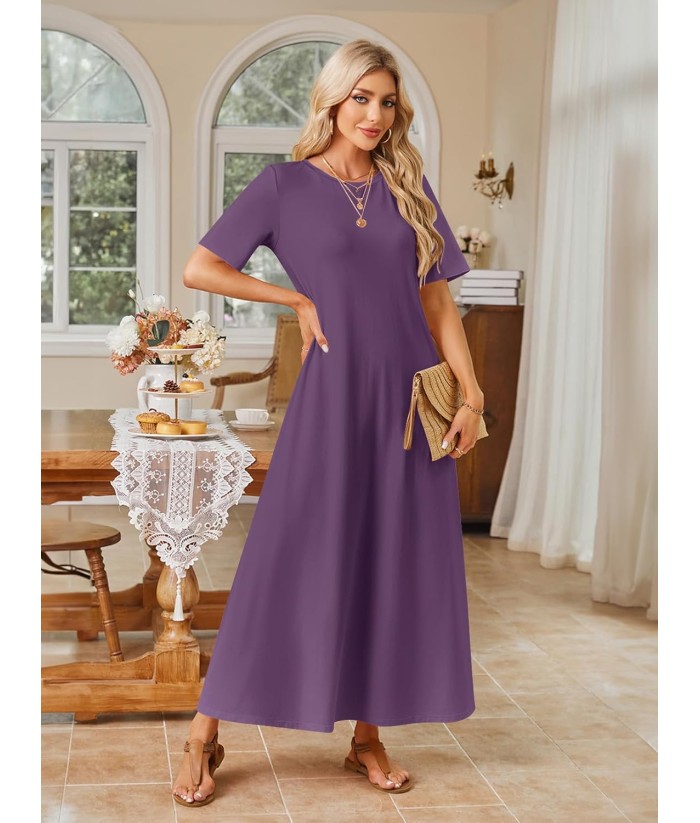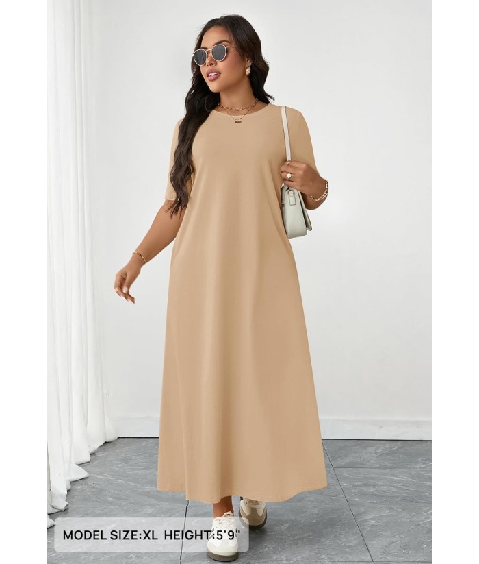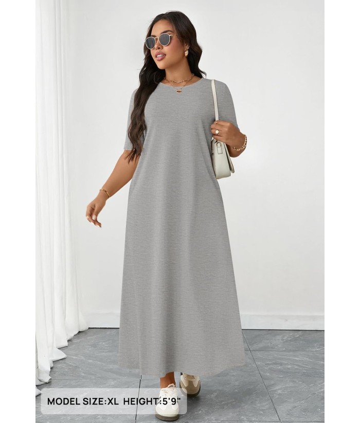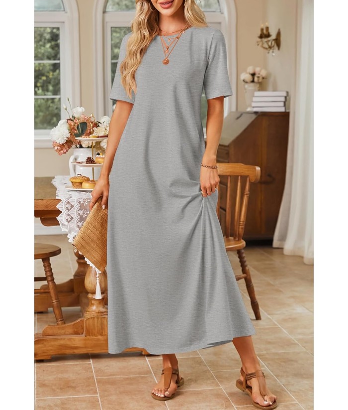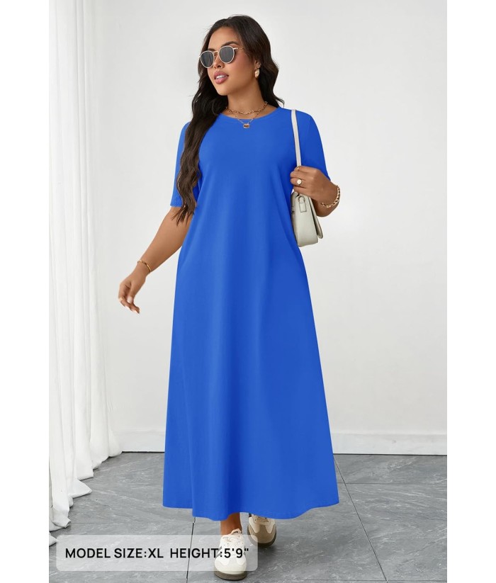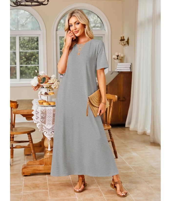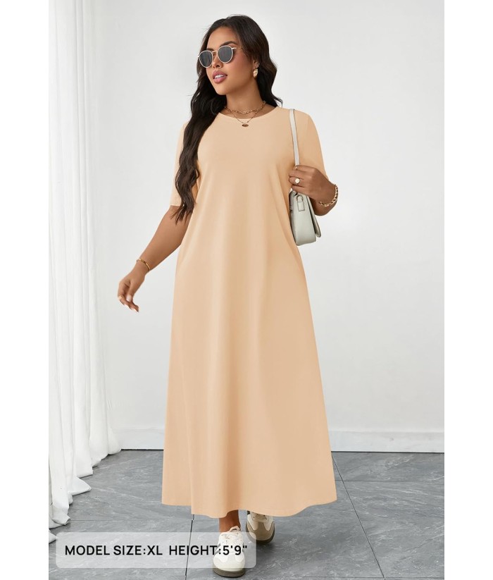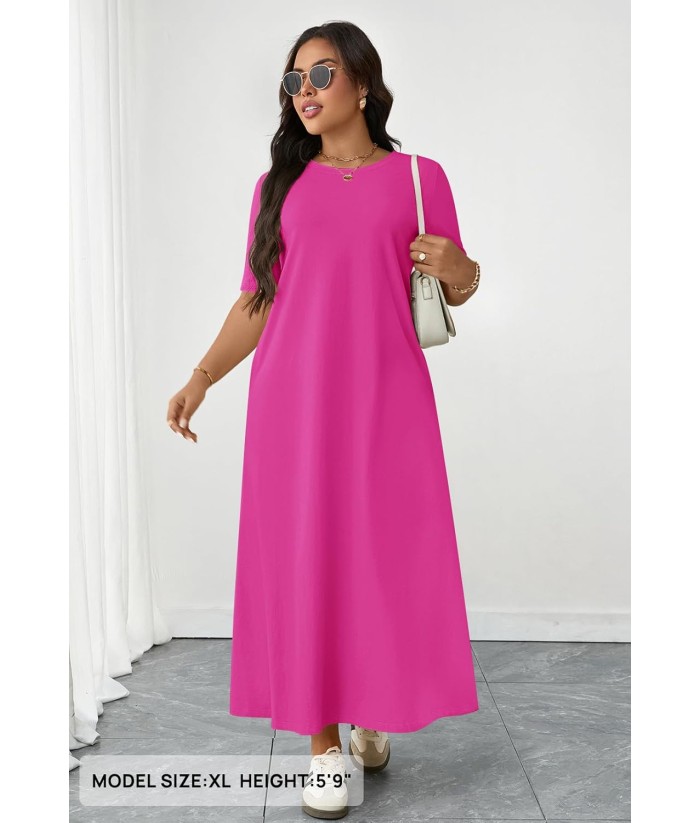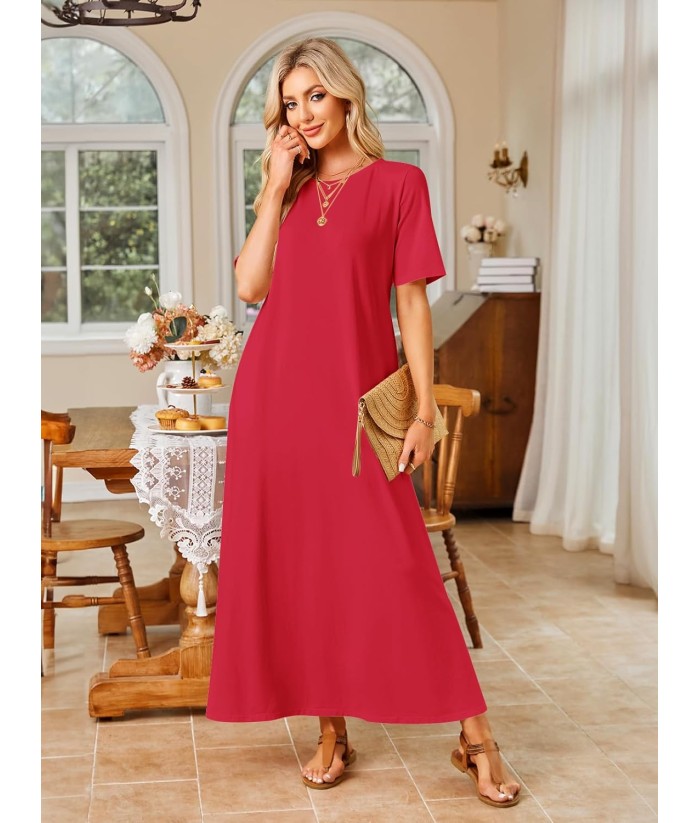 MEROKEETY Women's 2025 Summer Maxi Dress Casual Short Sleeve Beach Vacation Crewneck Basic Long T Shirt Dresses