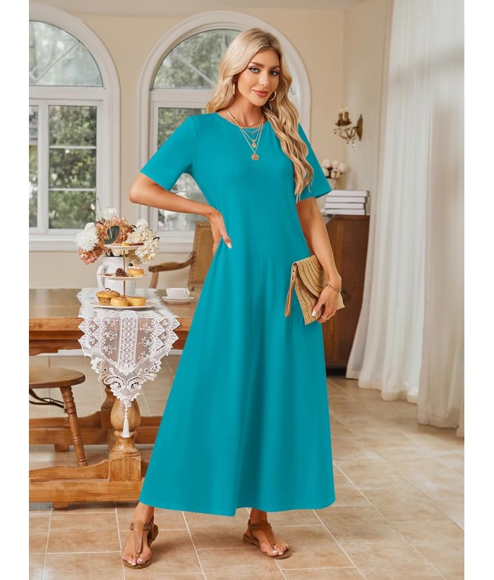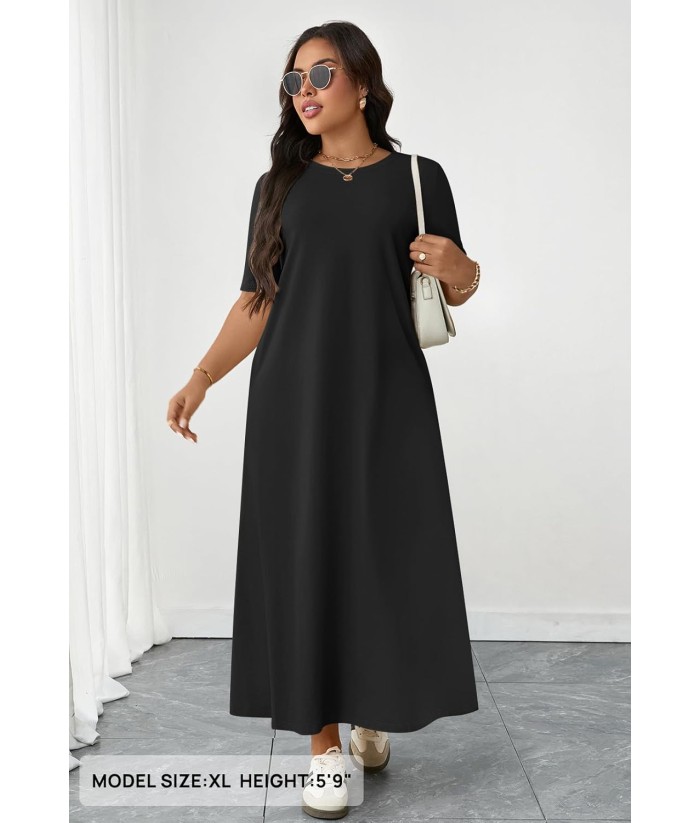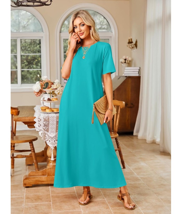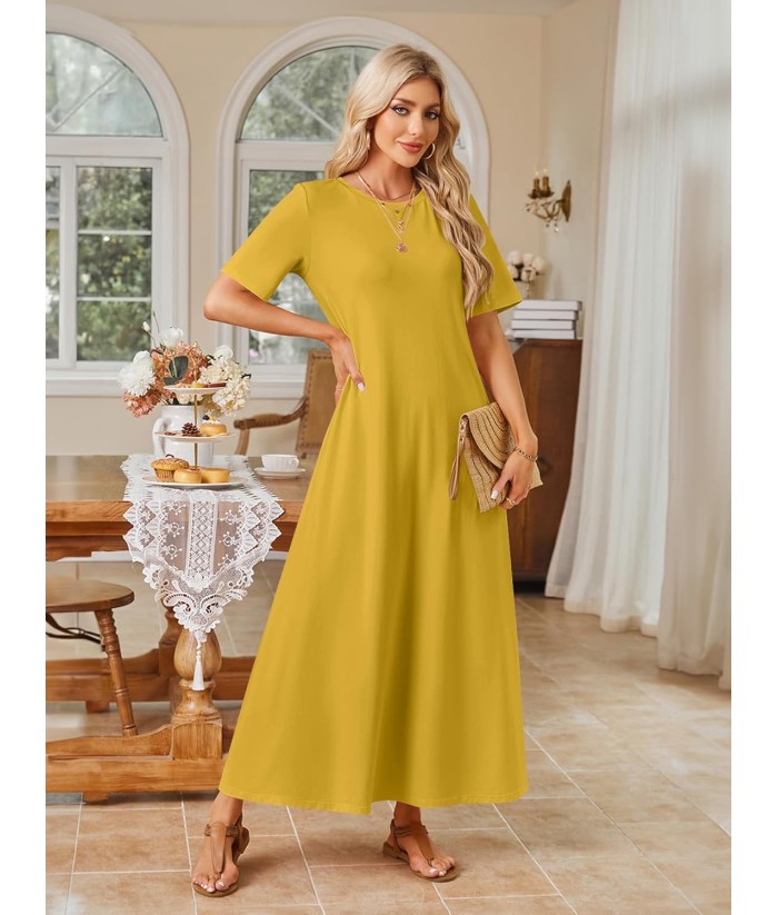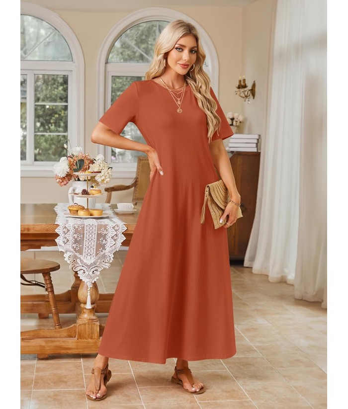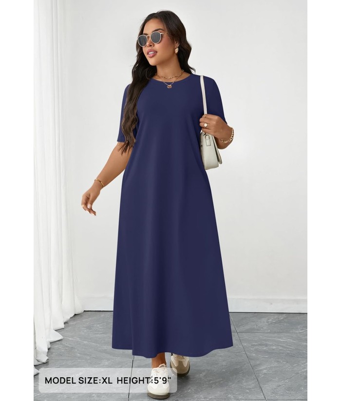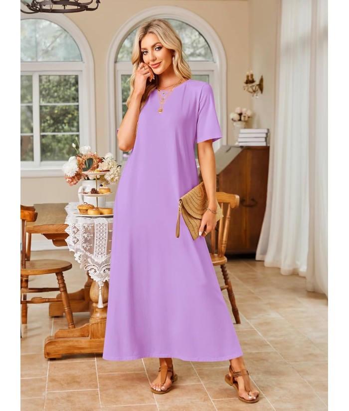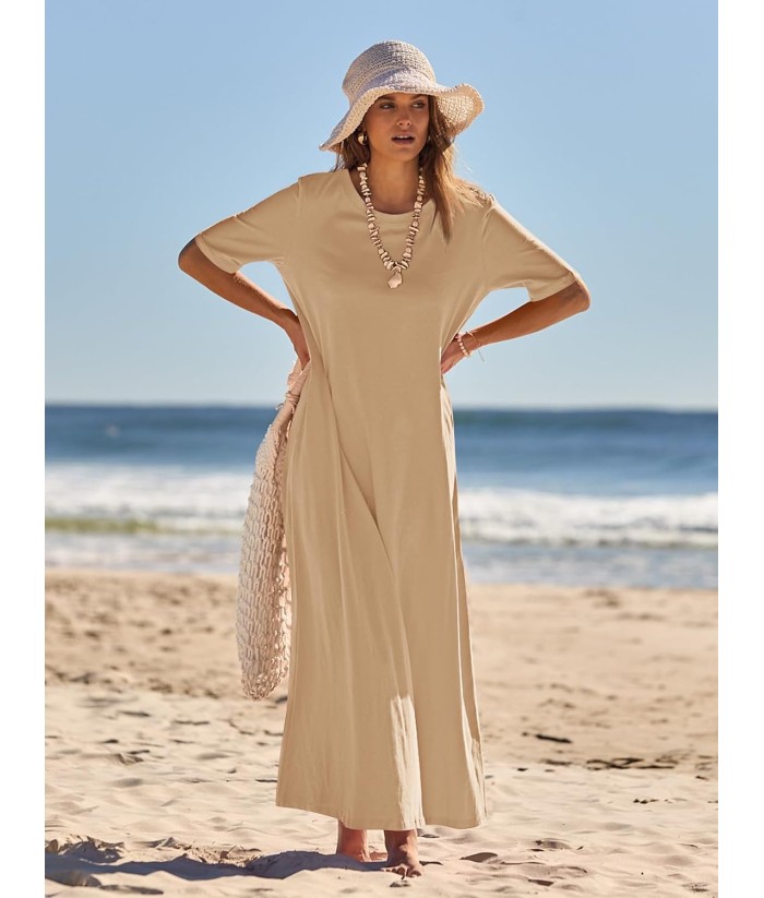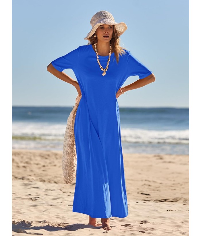 MEROKEETY Women's 2025 Summer Maxi Dress Casual Short Sleeve Beach Vacation Crewneck Basic Long T Shirt Dresses