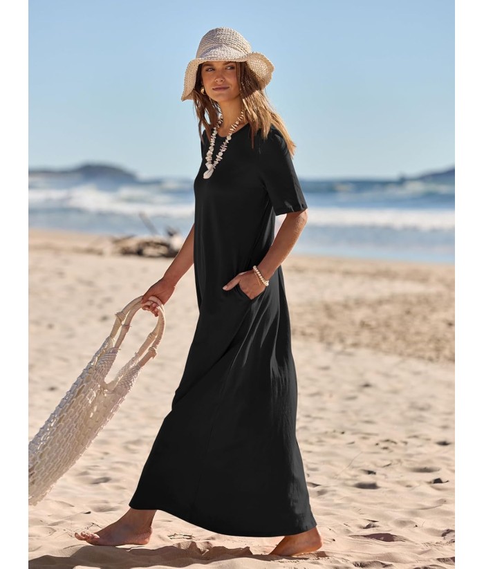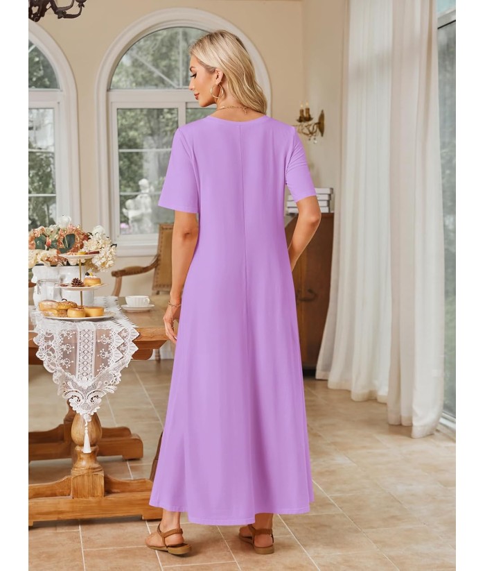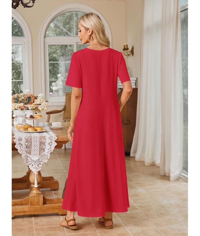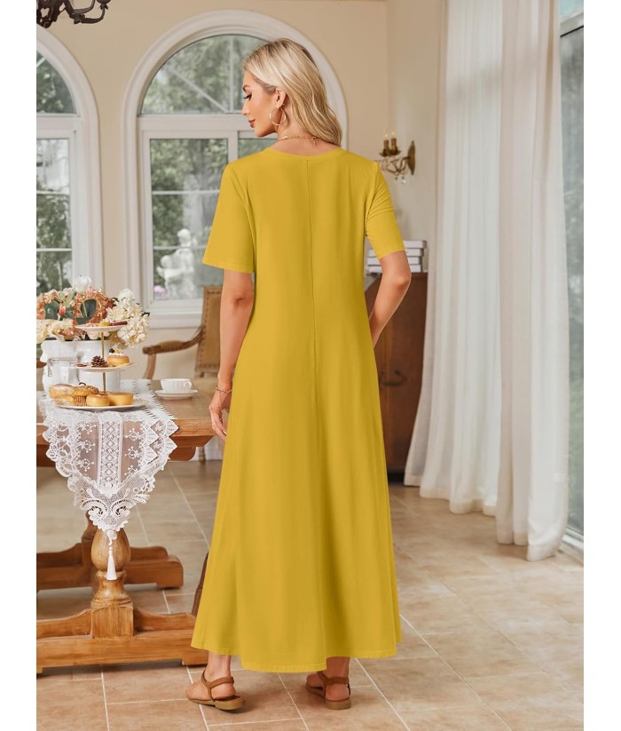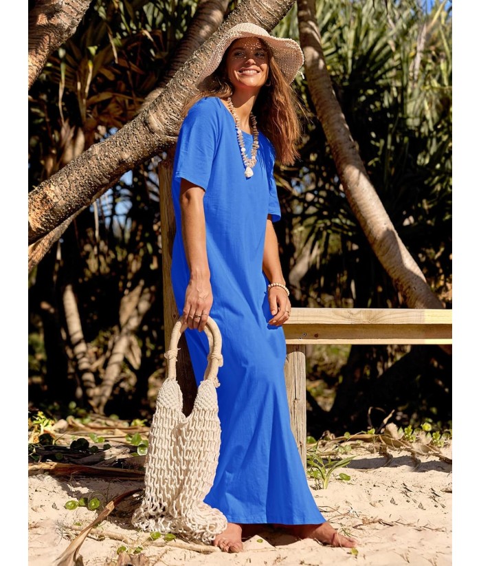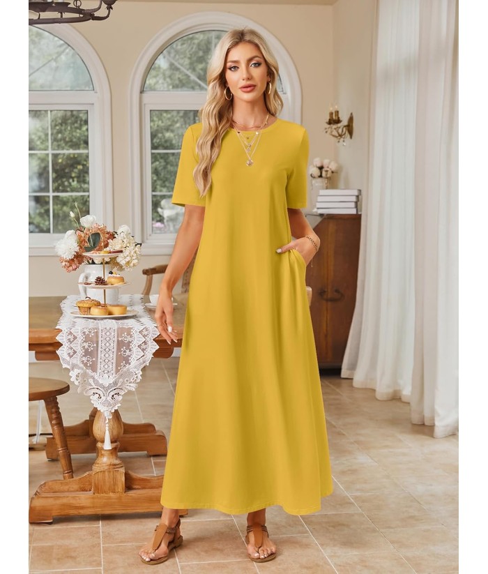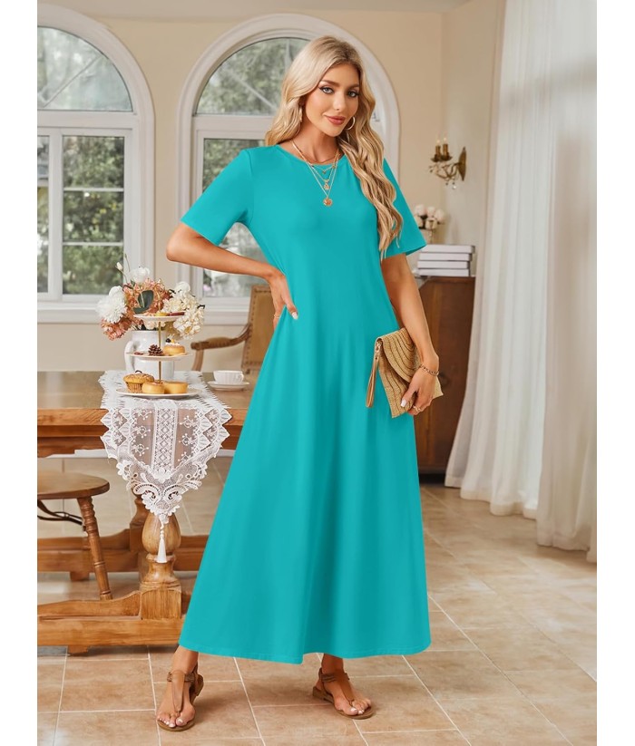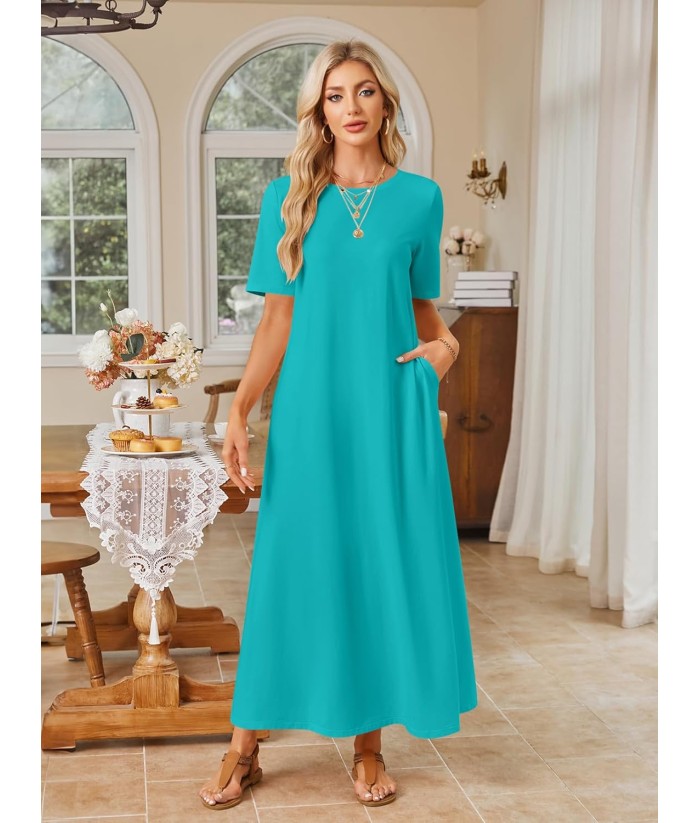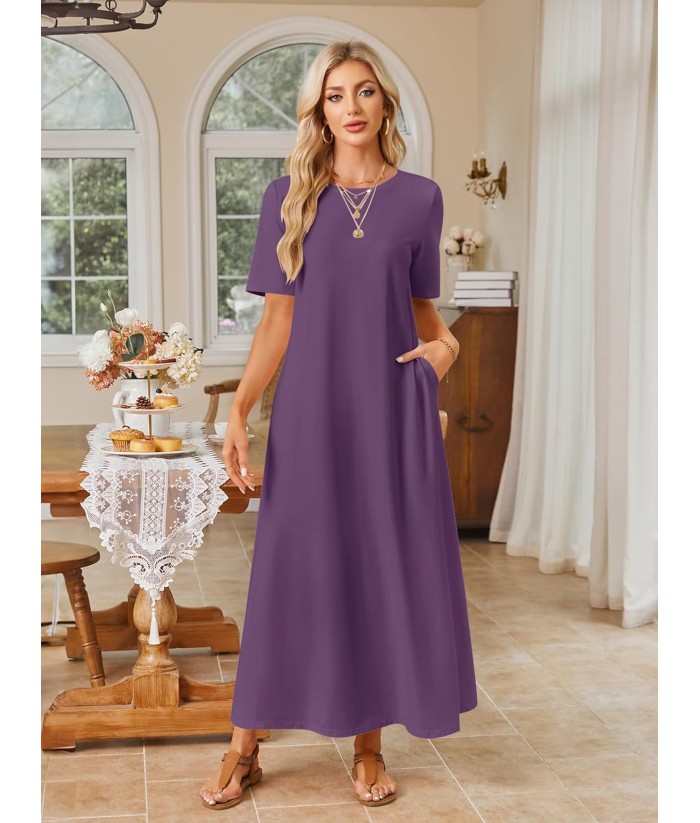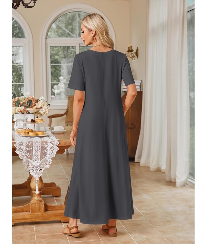 MEROKEETY Women's 2025 Summer Maxi Dress Casual Short Sleeve Beach Vacation Crewneck Basic Long T Shirt Dresses