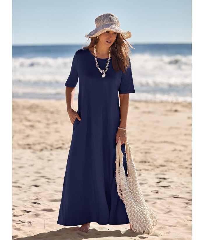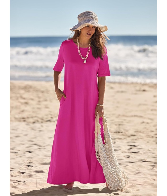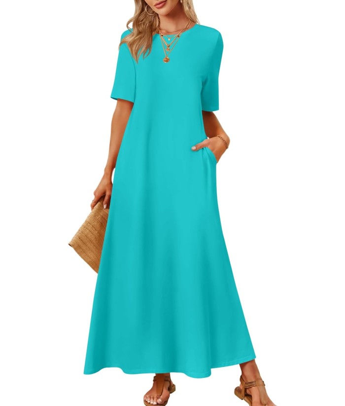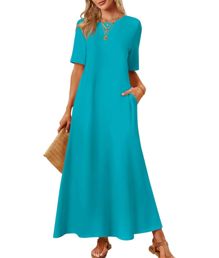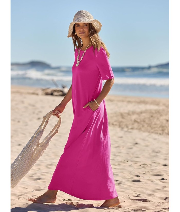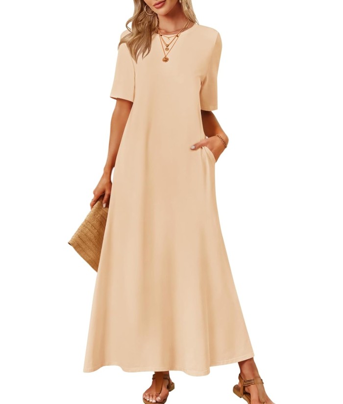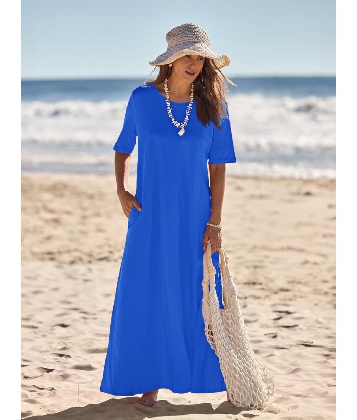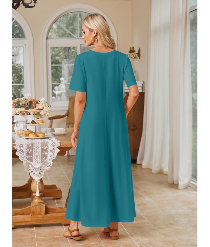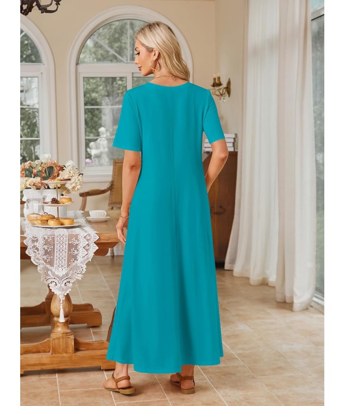 MEROKEETY Women's 2025 Summer Maxi Dress Casual Short Sleeve Beach Vacation Crewneck Basic Long T Shirt Dresses