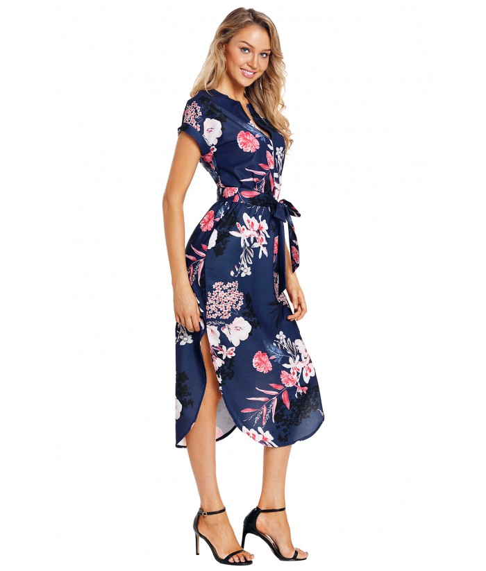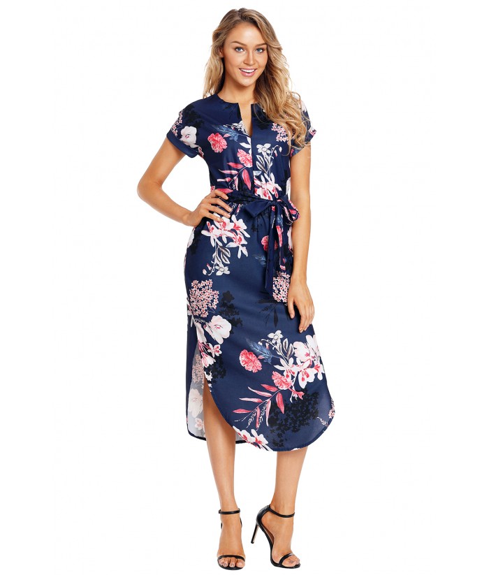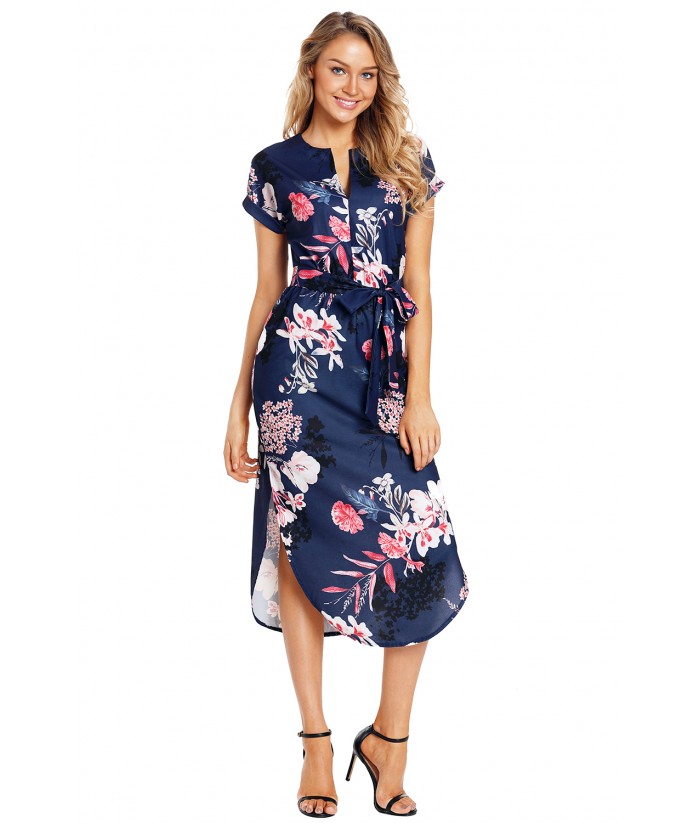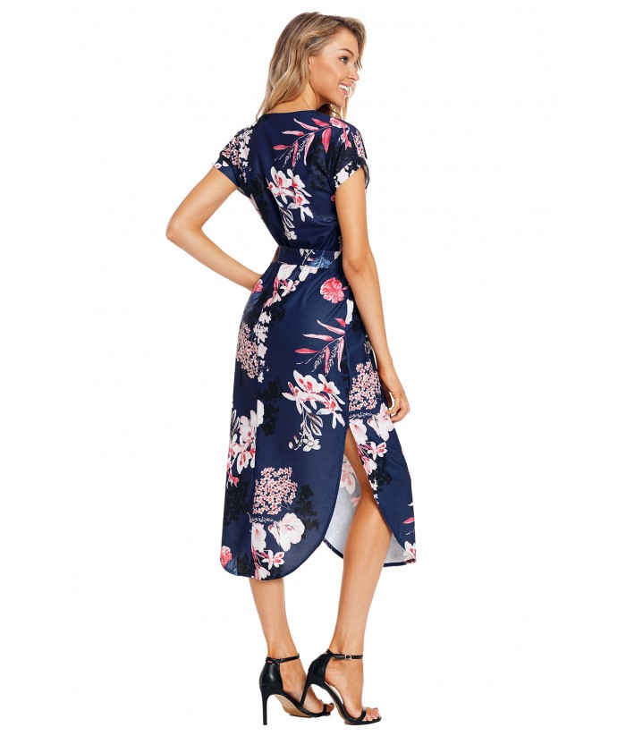 Product Name | Navy Pink Floral Print Pencil Dress |