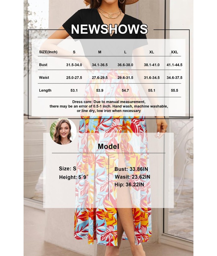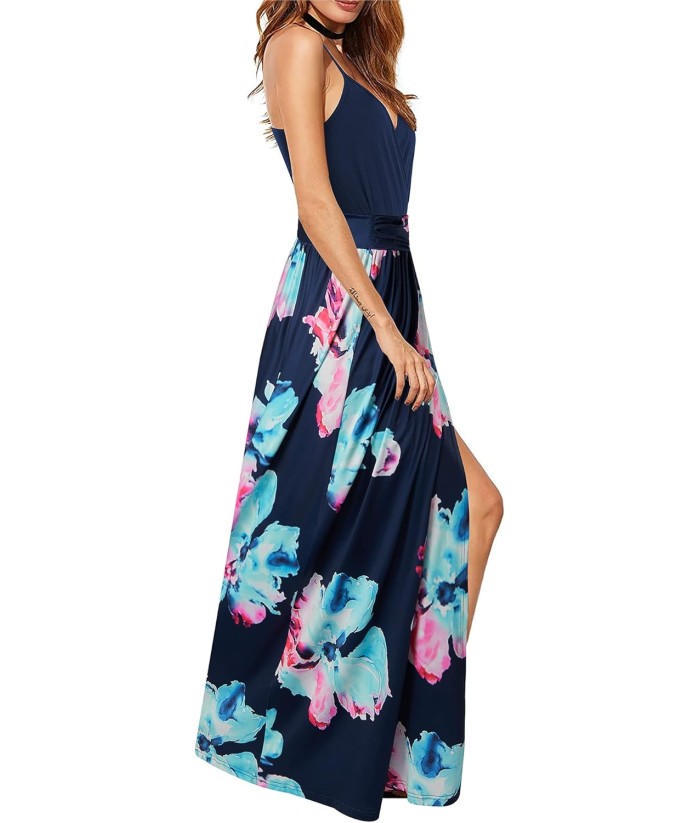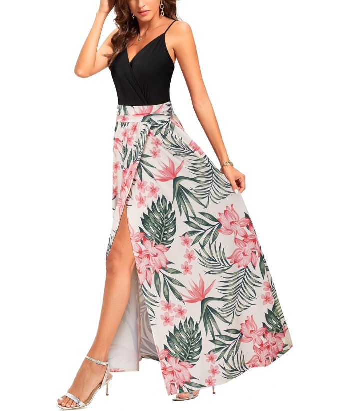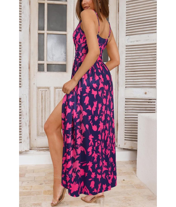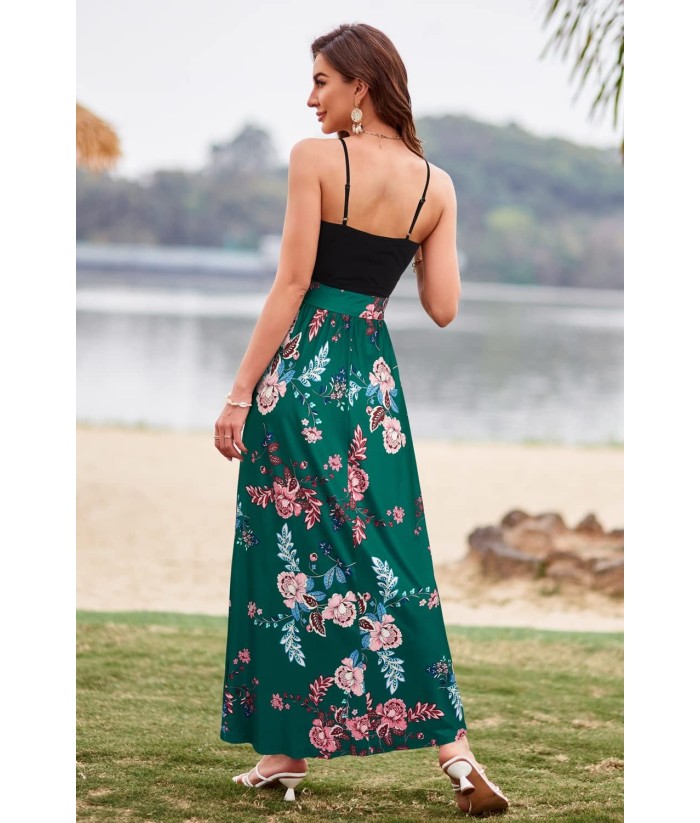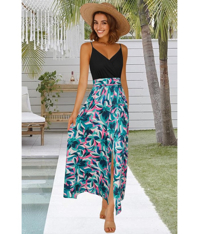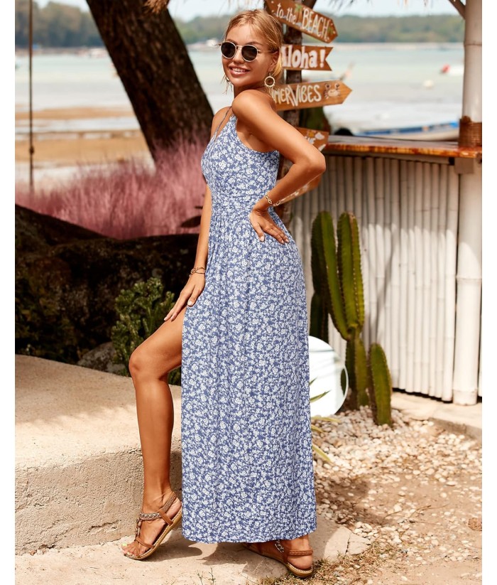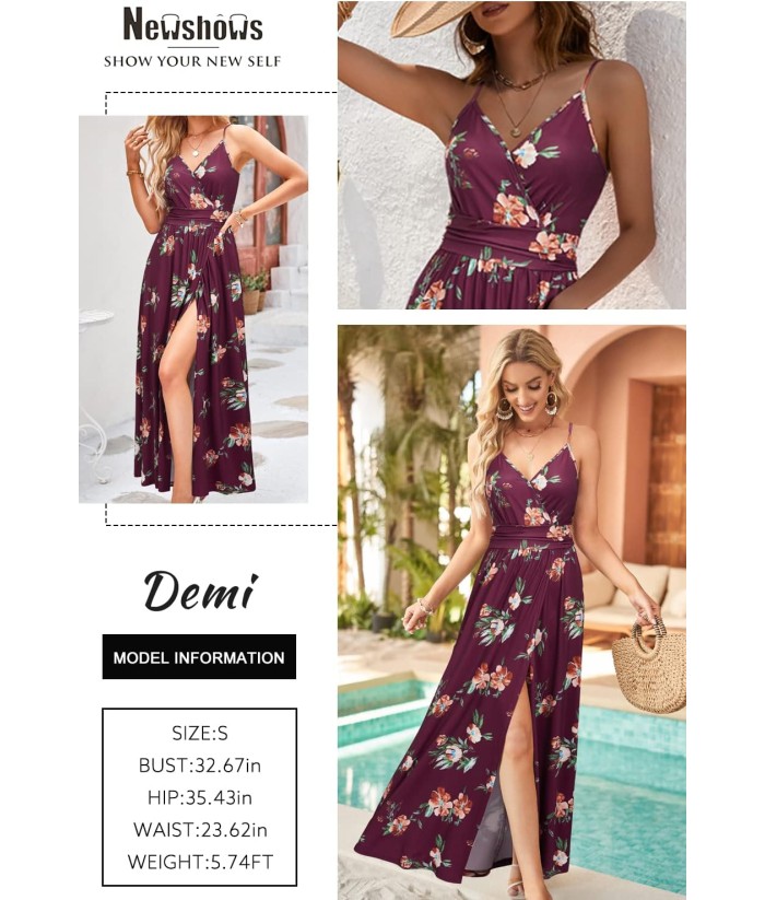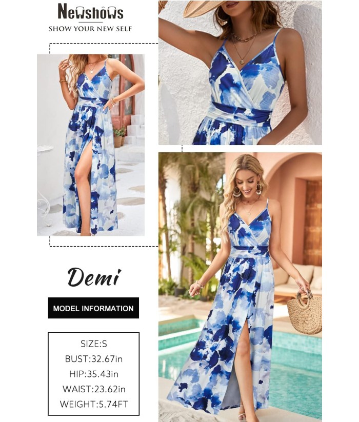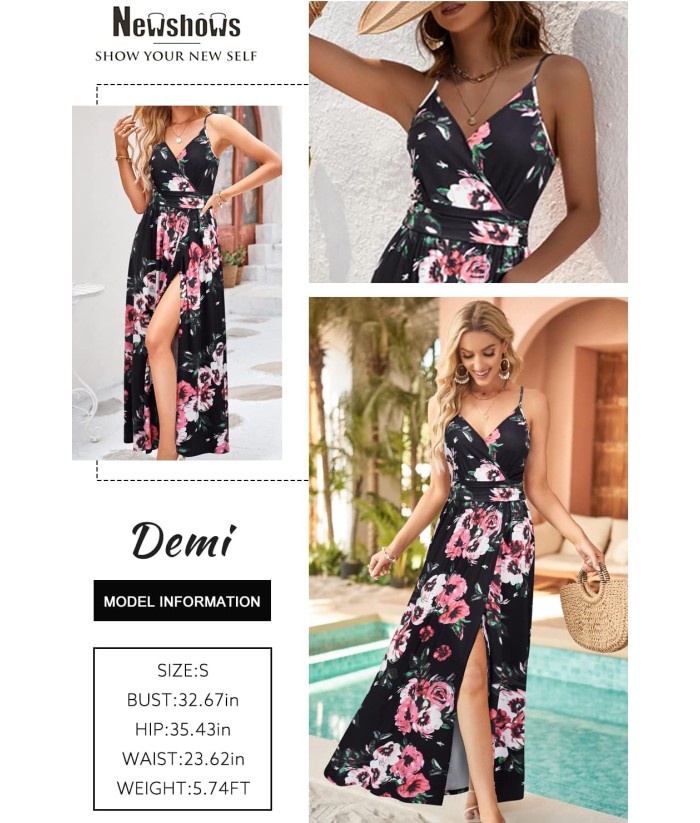 Newshows Women Summer 2025 Maxi Dress Vacation Floral Spaghetti Strap Spring Casual Boho Split Beach Long Flowy Sundress