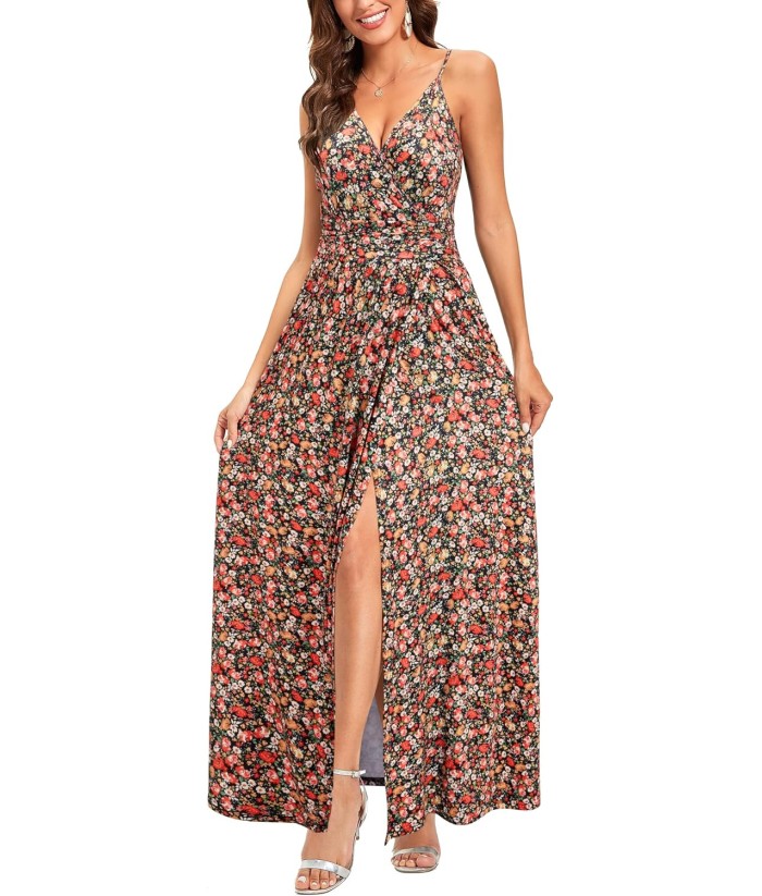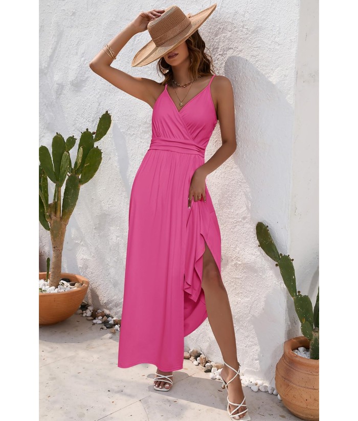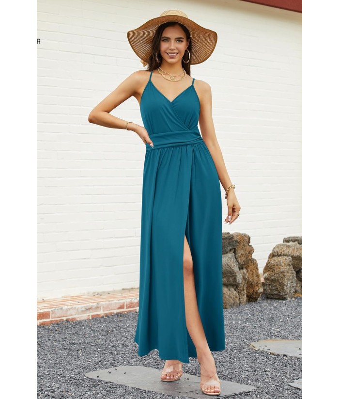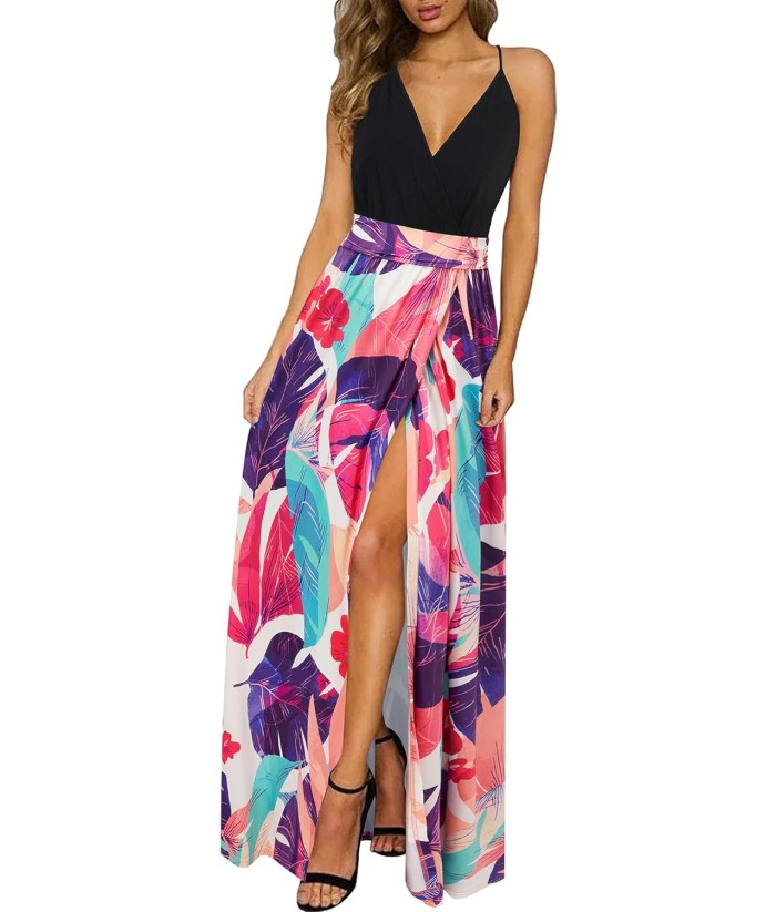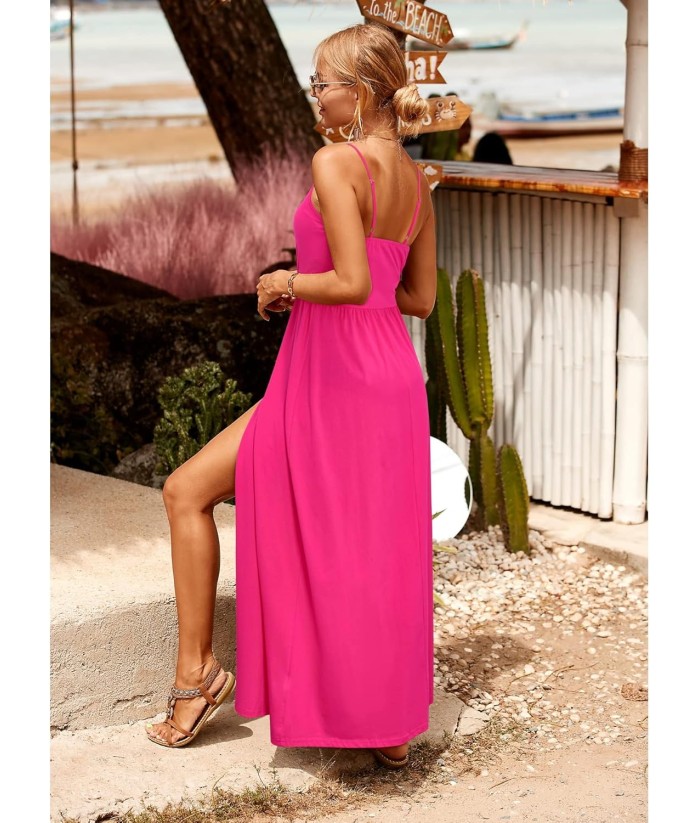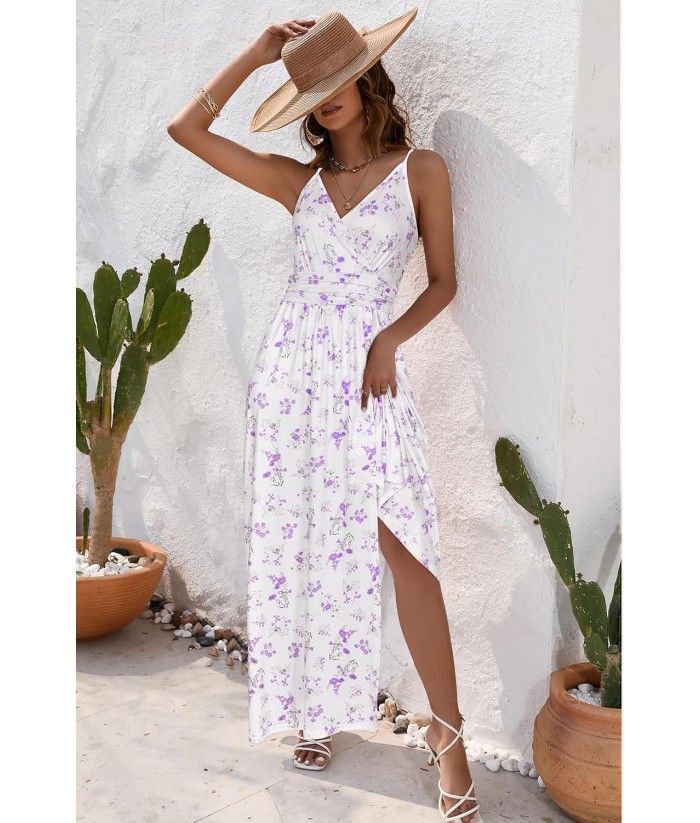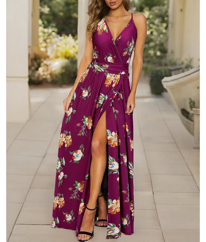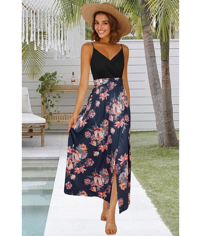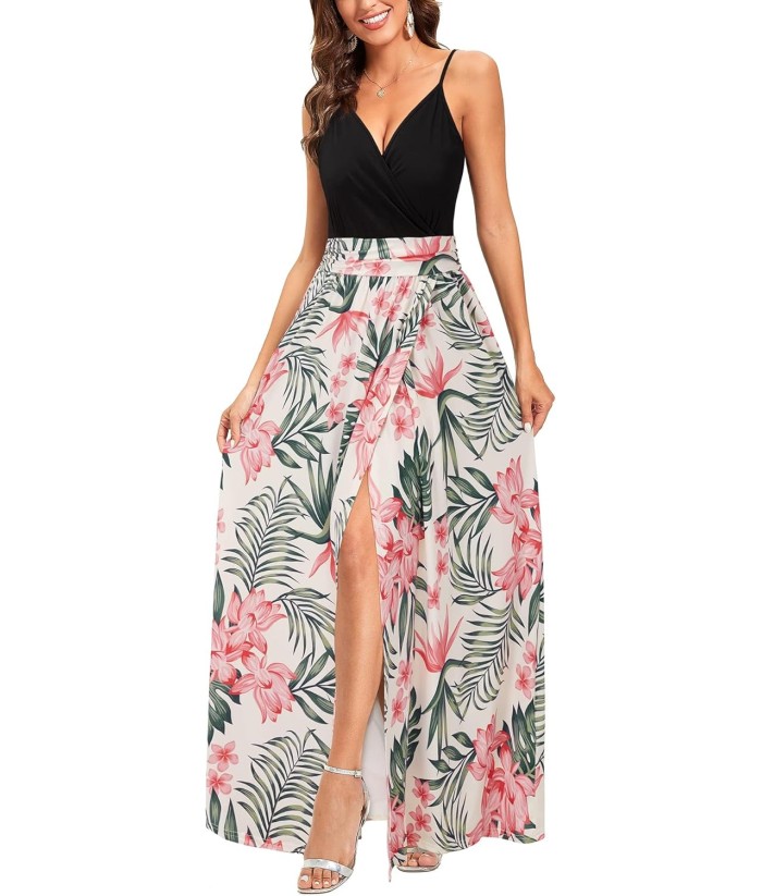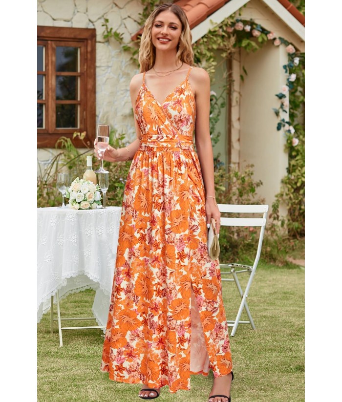 Newshows Women Summer 2025 Maxi Dress Vacation Floral Spaghetti Strap Spring Casual Boho Split Beach Long Flowy Sundress