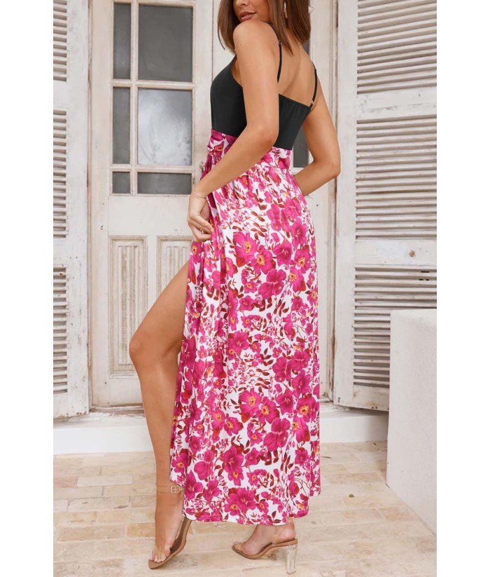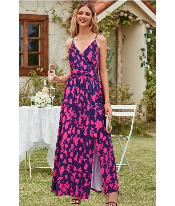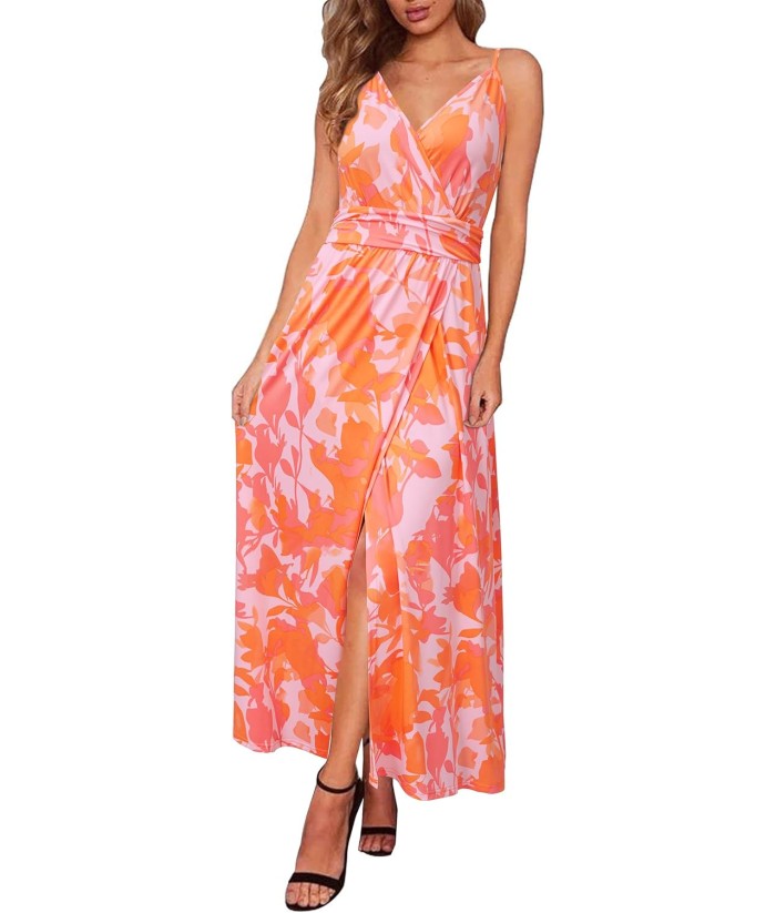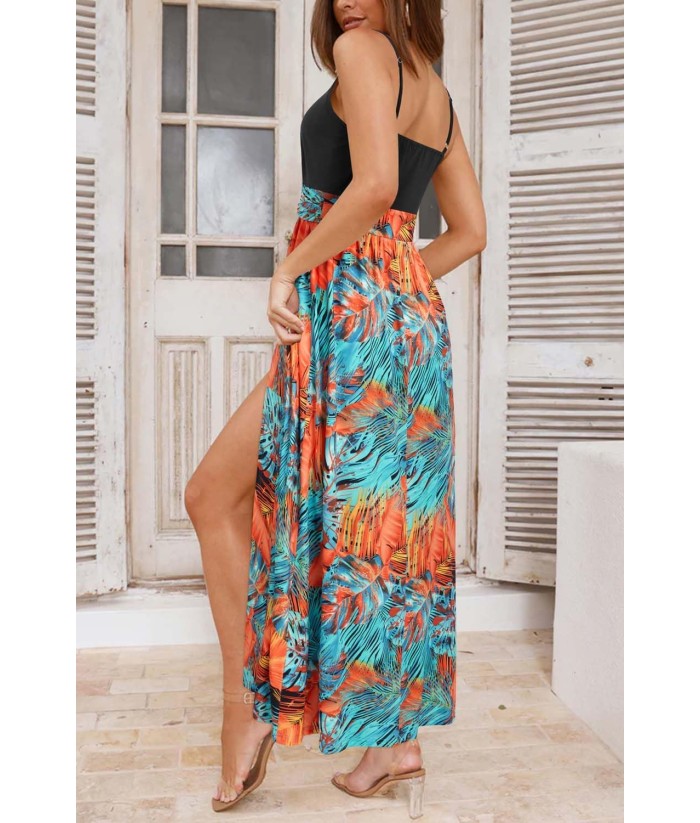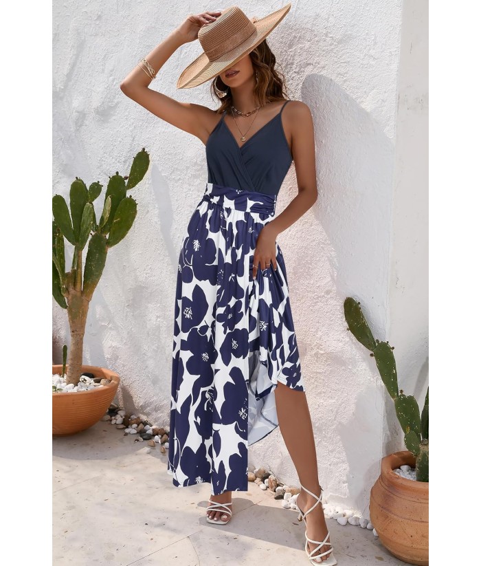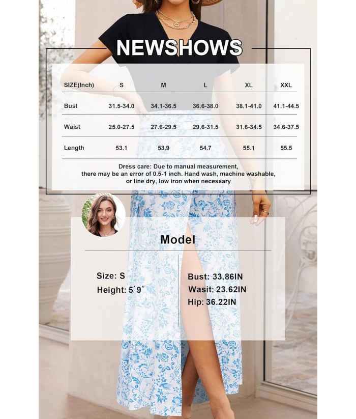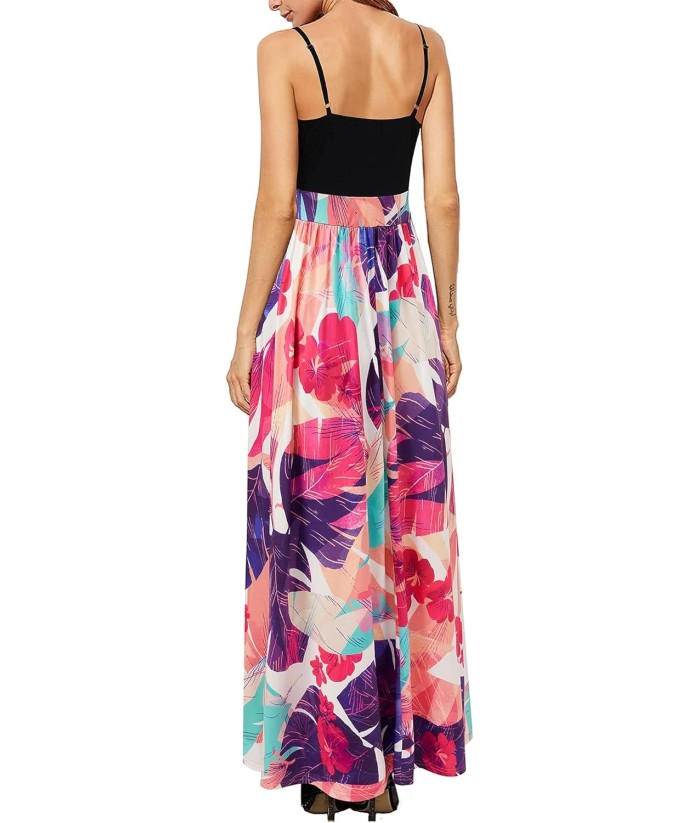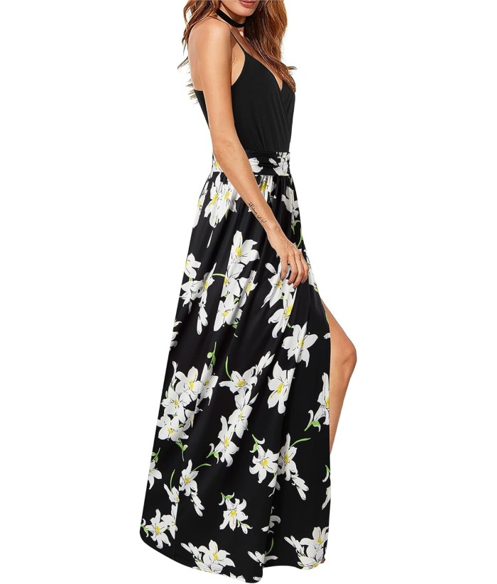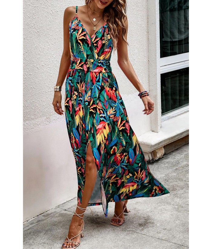 Newshows Women Summer 2025 Maxi Dress Vacation Floral Spaghetti Strap Spring Casual Boho Split Beach Long Flowy Sundress