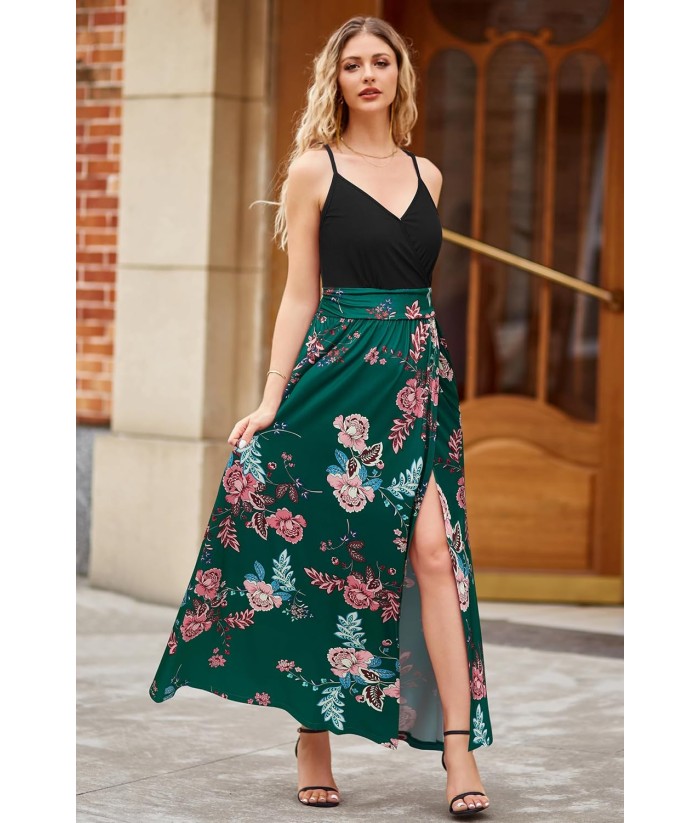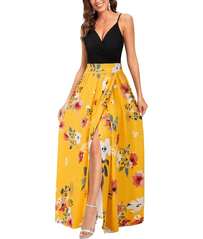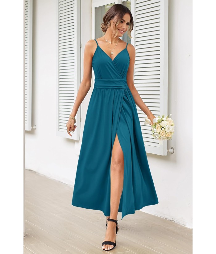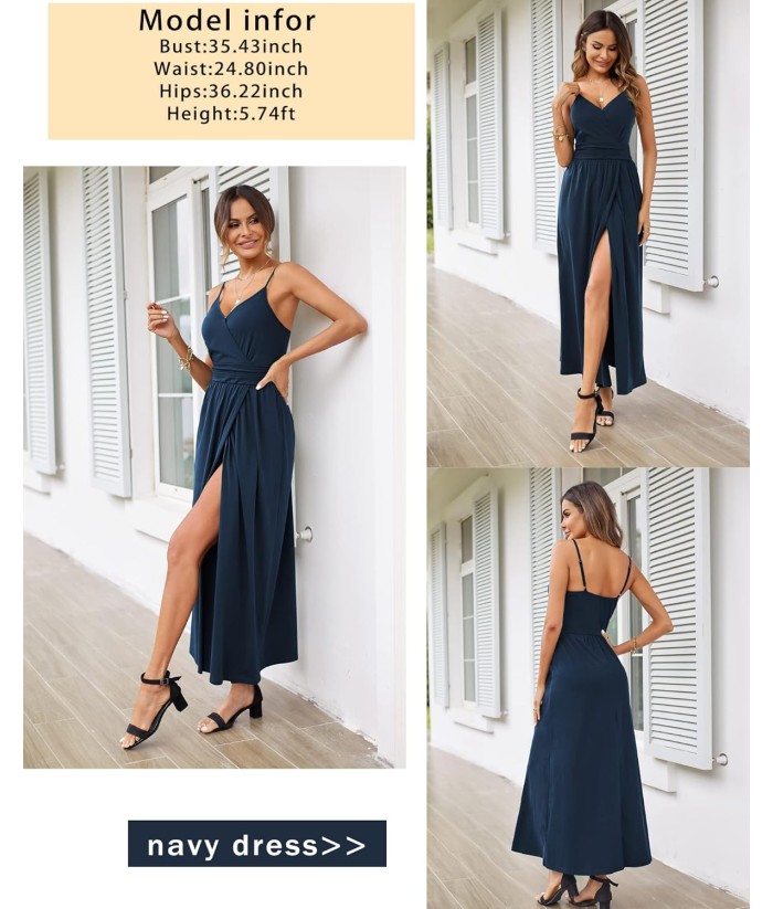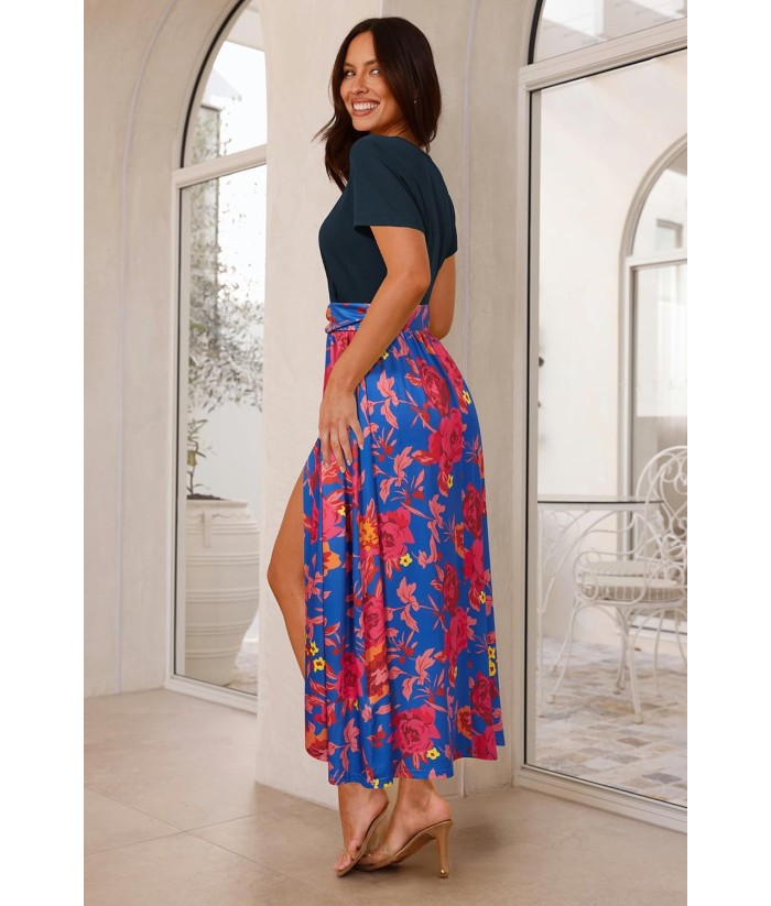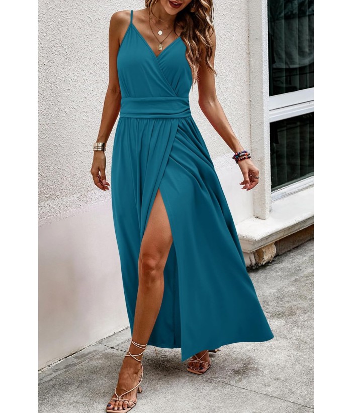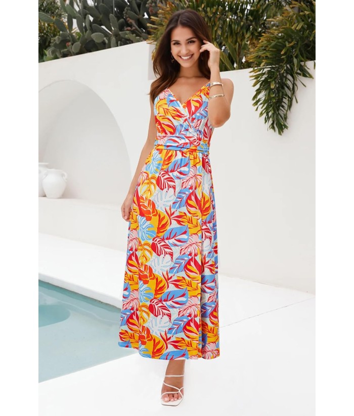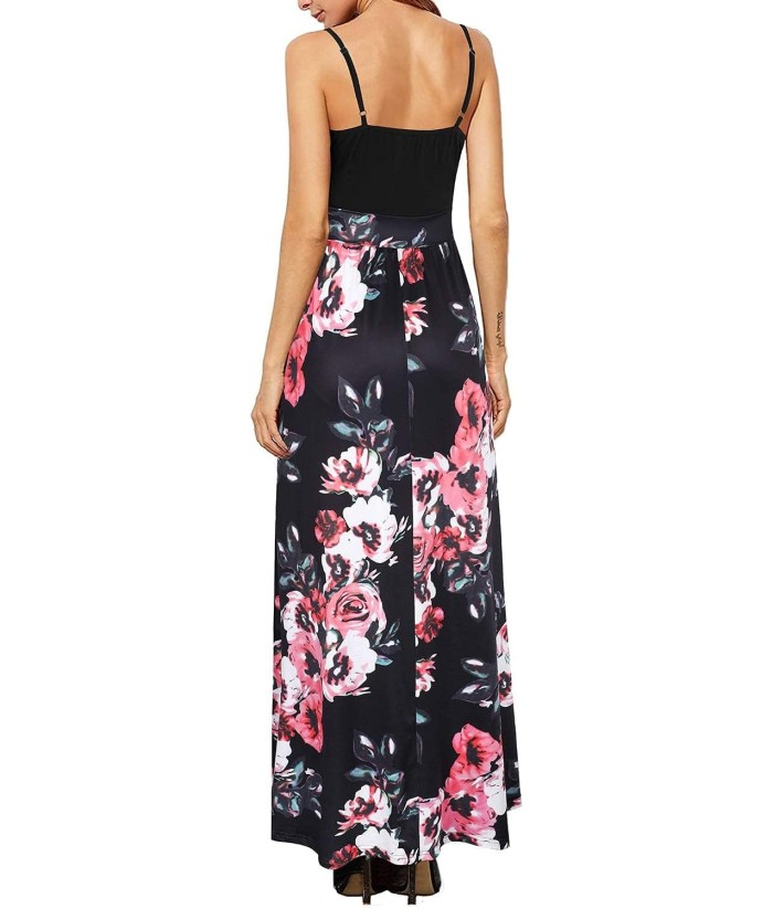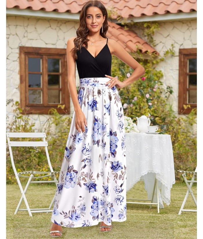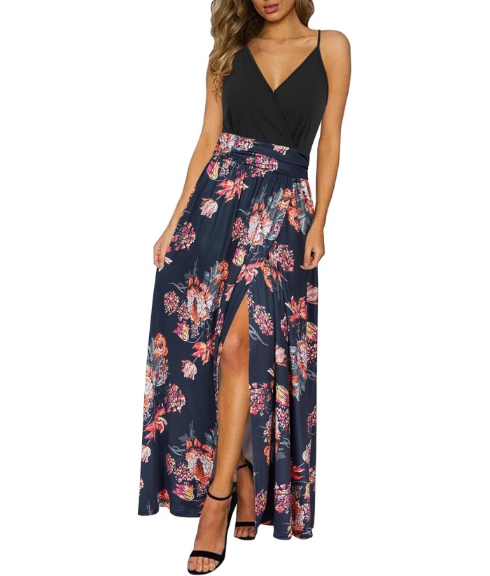 Newshows Women Summer 2025 Maxi Dress Vacation Floral Spaghetti Strap Spring Casual Boho Split Beach Long Flowy Sundress