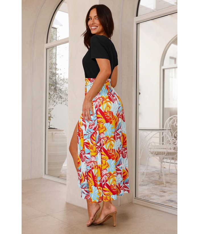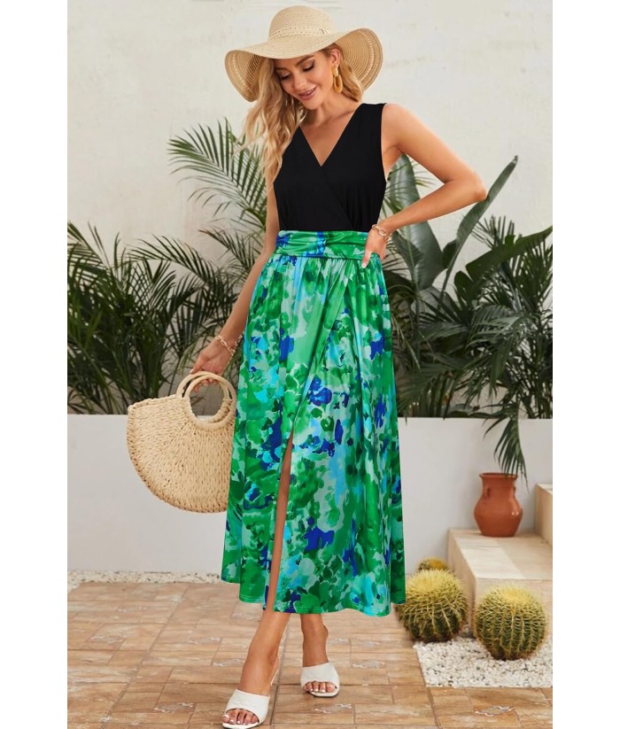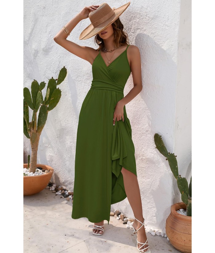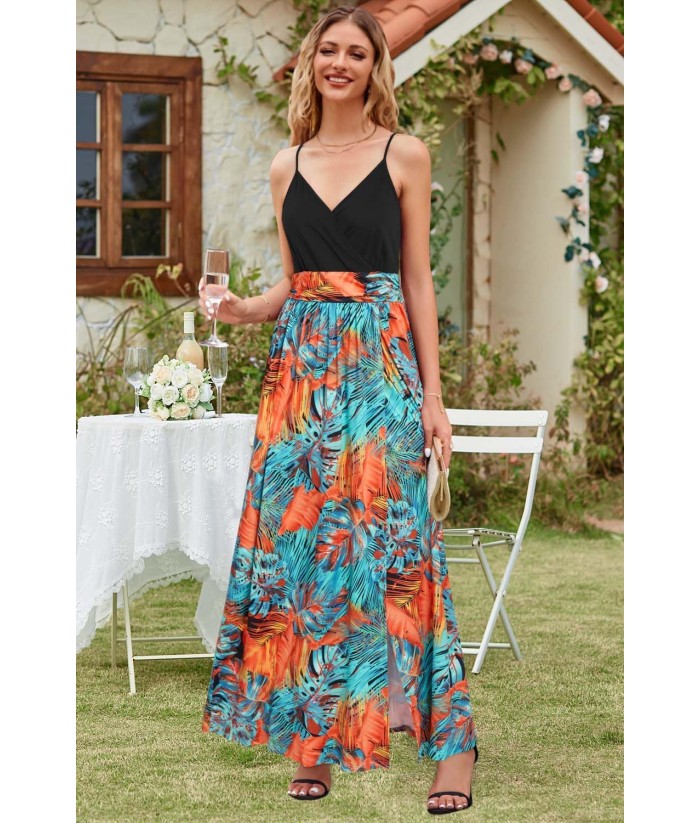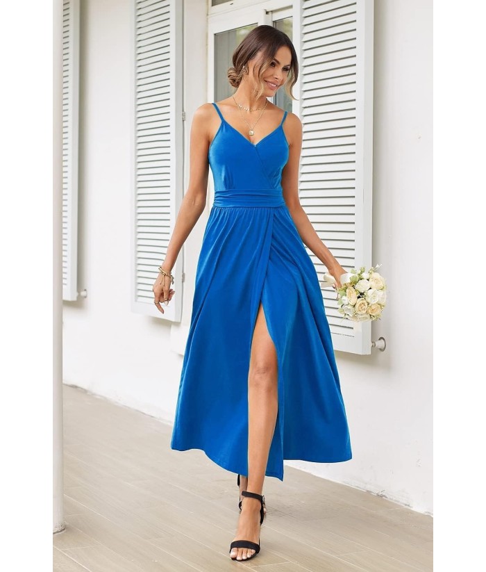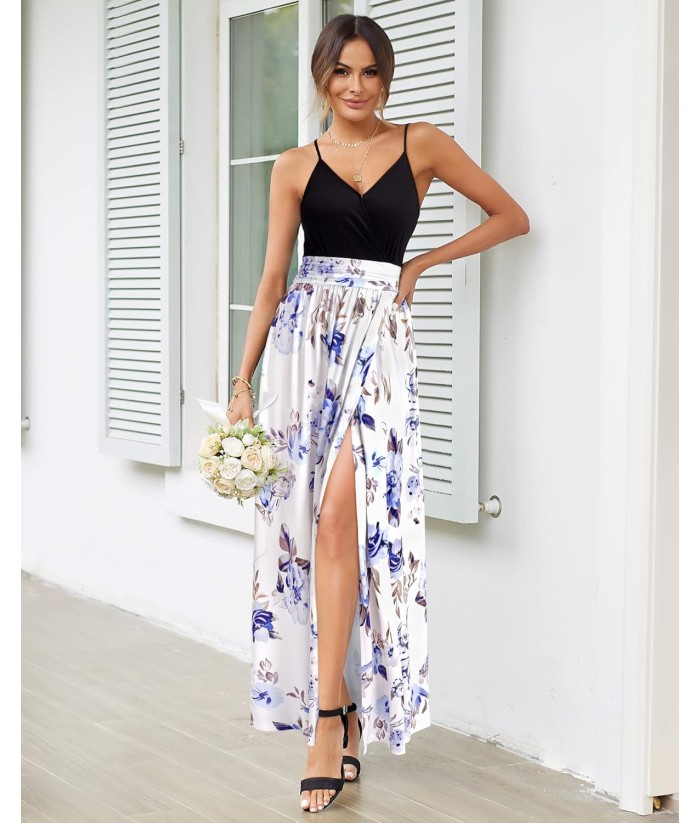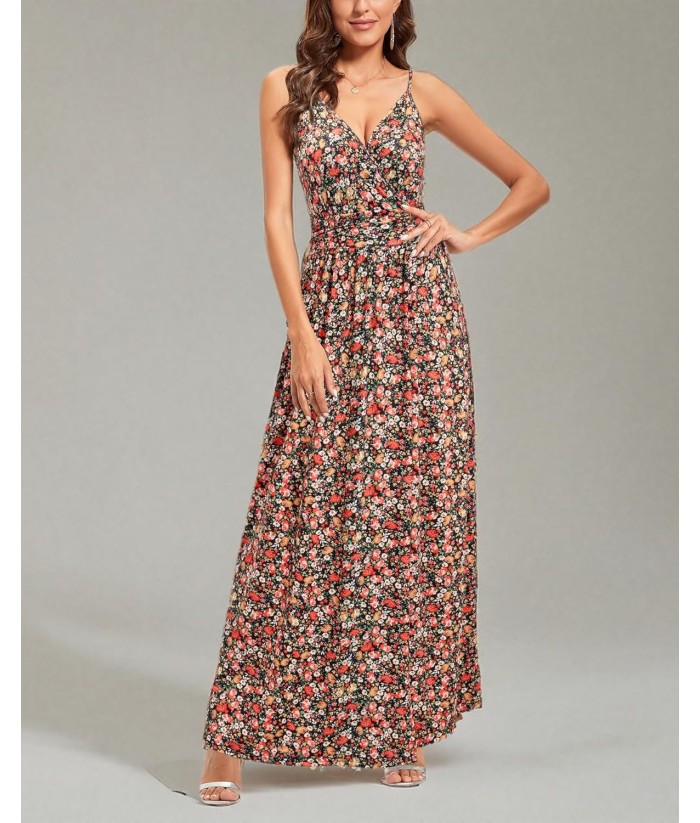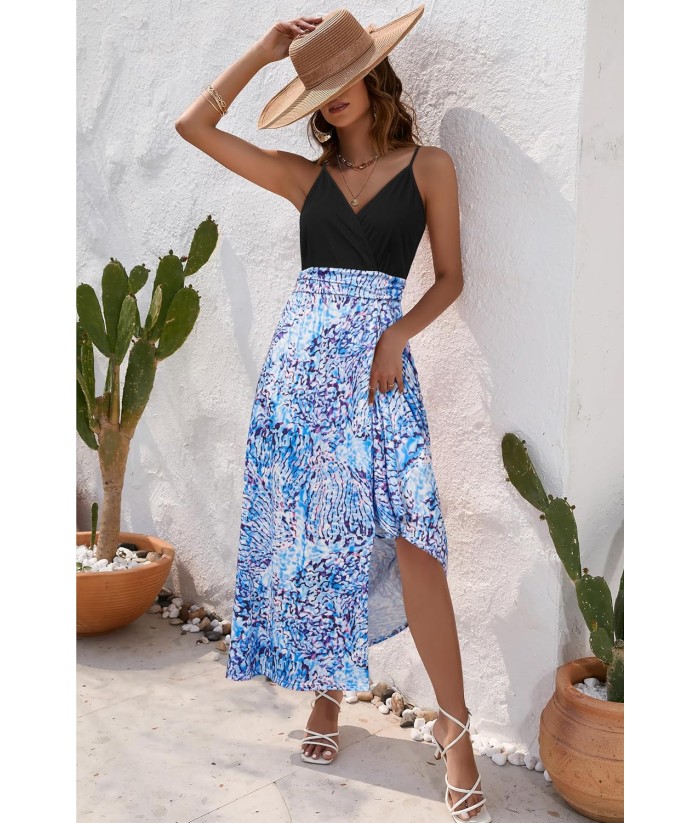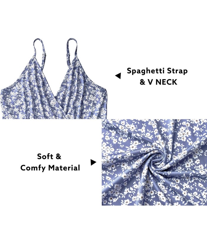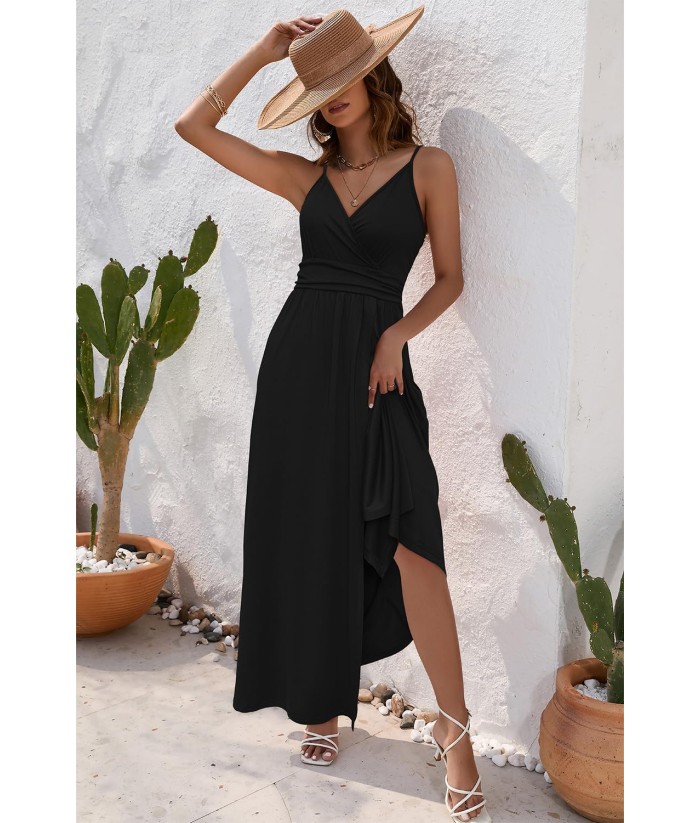 Newshows Women Summer 2025 Maxi Dress Vacation Floral Spaghetti Strap Spring Casual Boho Split Beach Long Flowy Sundress
